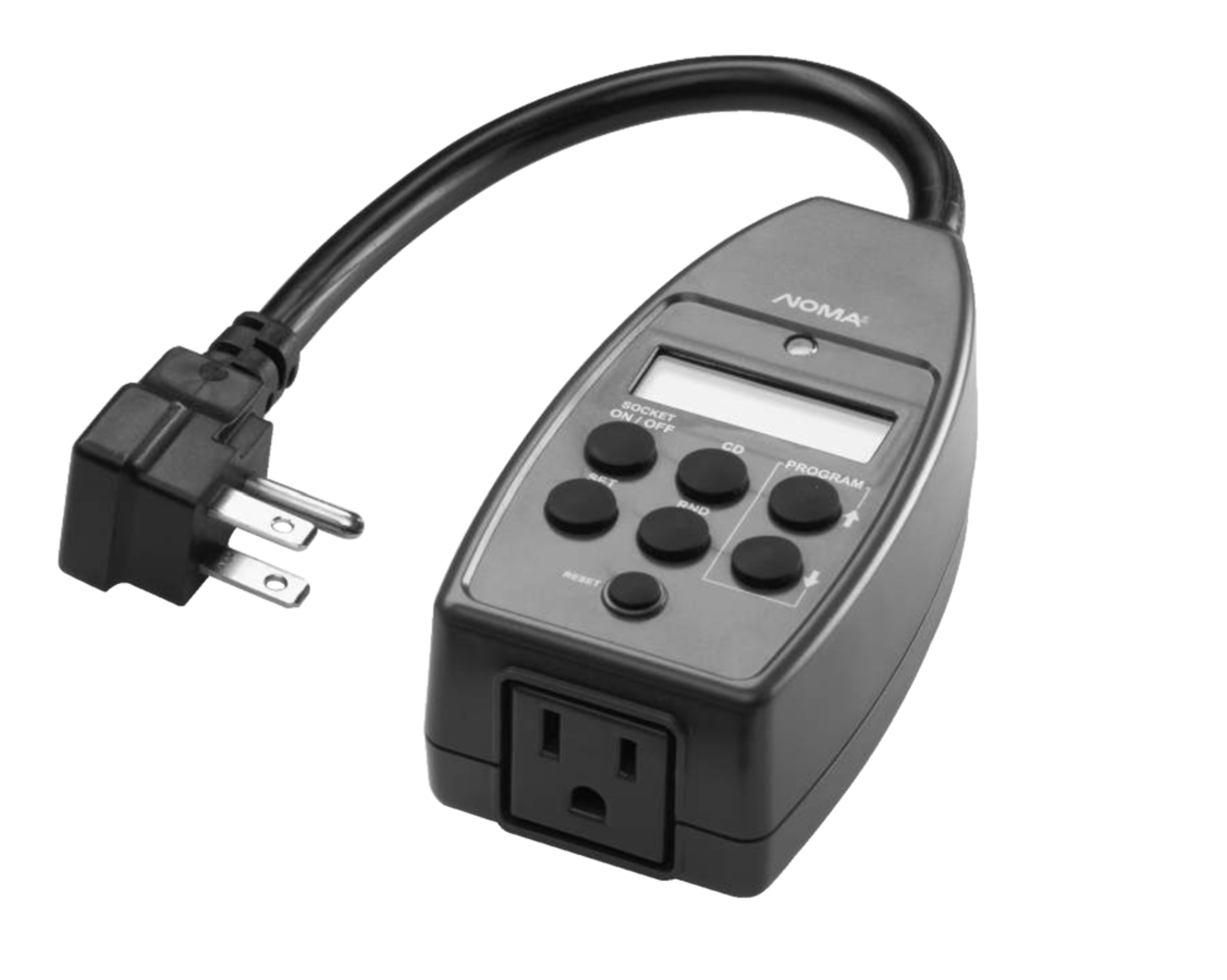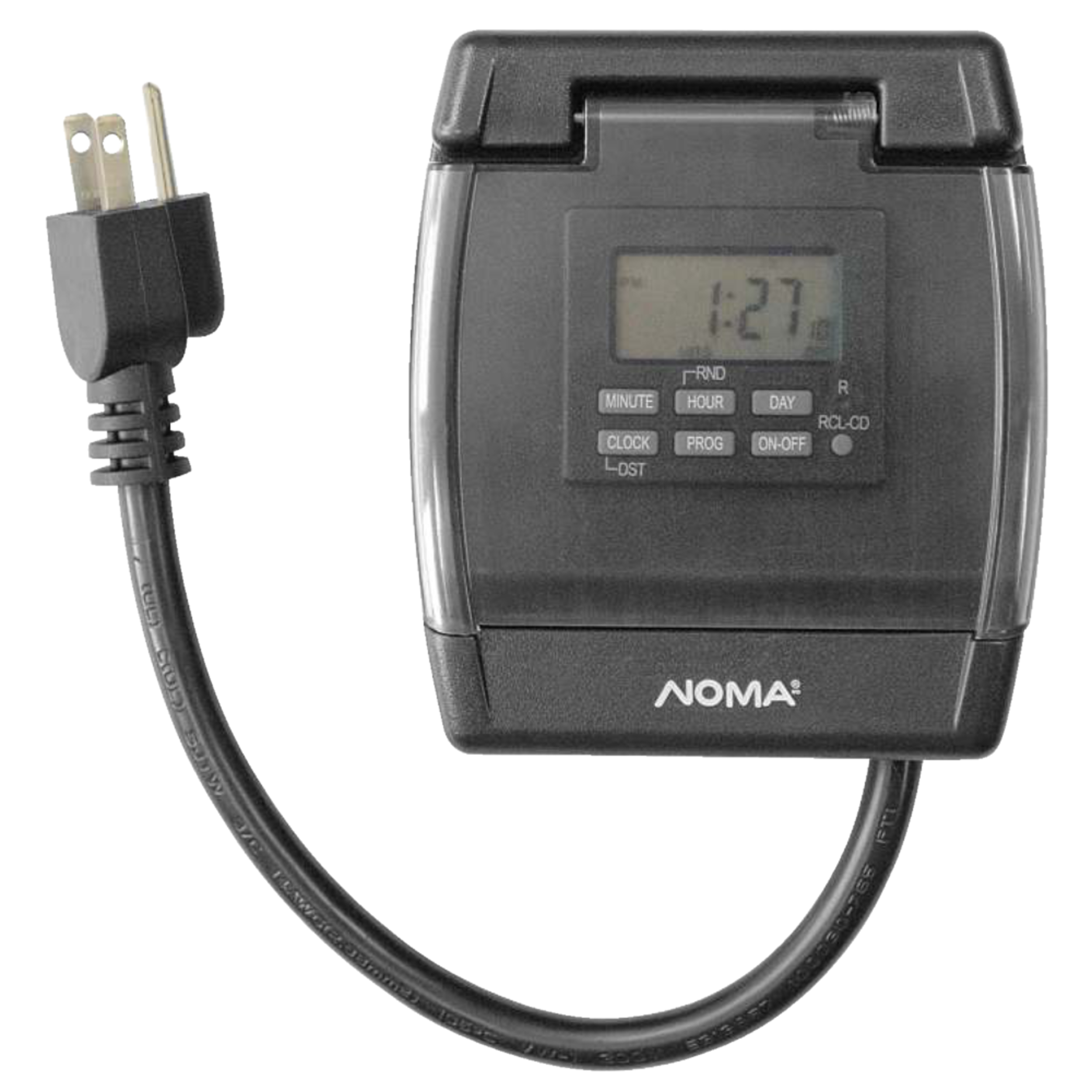The NOMA Outdoor Heavy Duty Timer automatically controls lights and appliances to help you save money on energy bills and improve home security. This outdoor timer features two grounded outlets with the ability to customize up to 20 programs and 140 on/off settings per week to suit your schedule. Program outdoor water features and holiday lighting to operate only when needed. The two-outlet heavy duty timer features a battery backup and manual override for safe use.