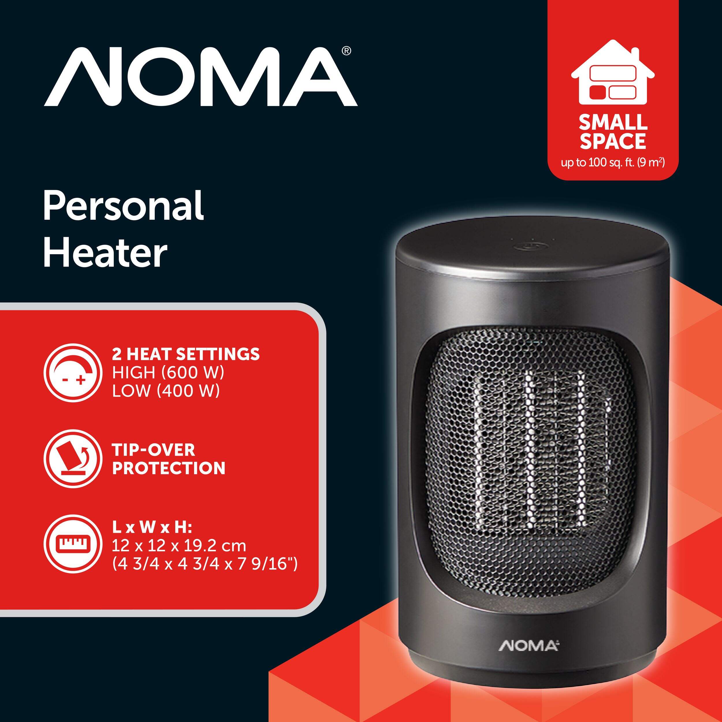 The NOMA Personal Heater provides efficient, portable heating for small spaces, making it ideal for bedrooms, offices, and other compact areas. With its compact design and easy portability, this heater is perfect for providing extra warmth when and where you need it. Multiple heat settings allow you to adjust the temperature to your comfort level, while built-in safety features such as overheat protection and tip-over auto shut-off ensure peace of mind.