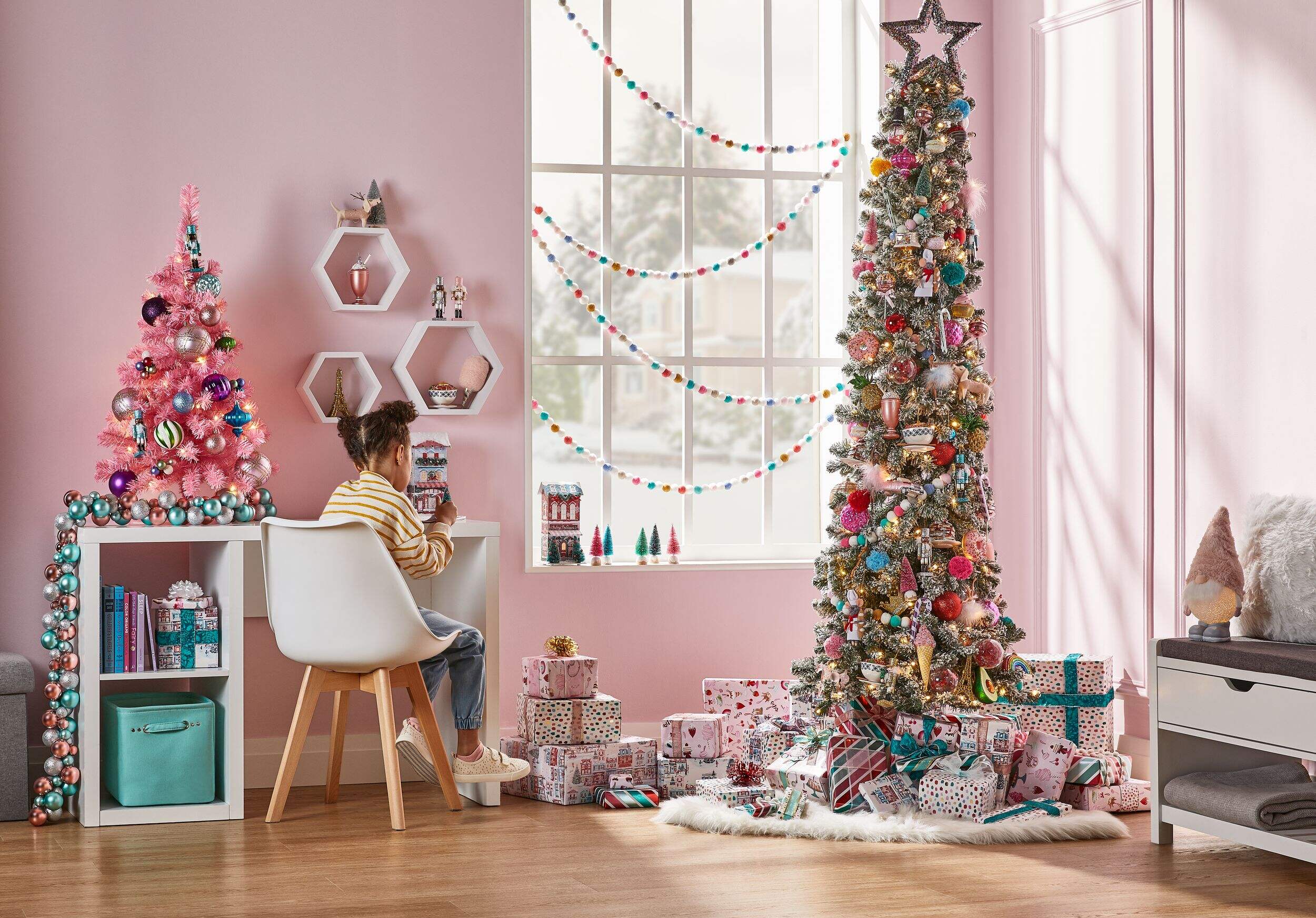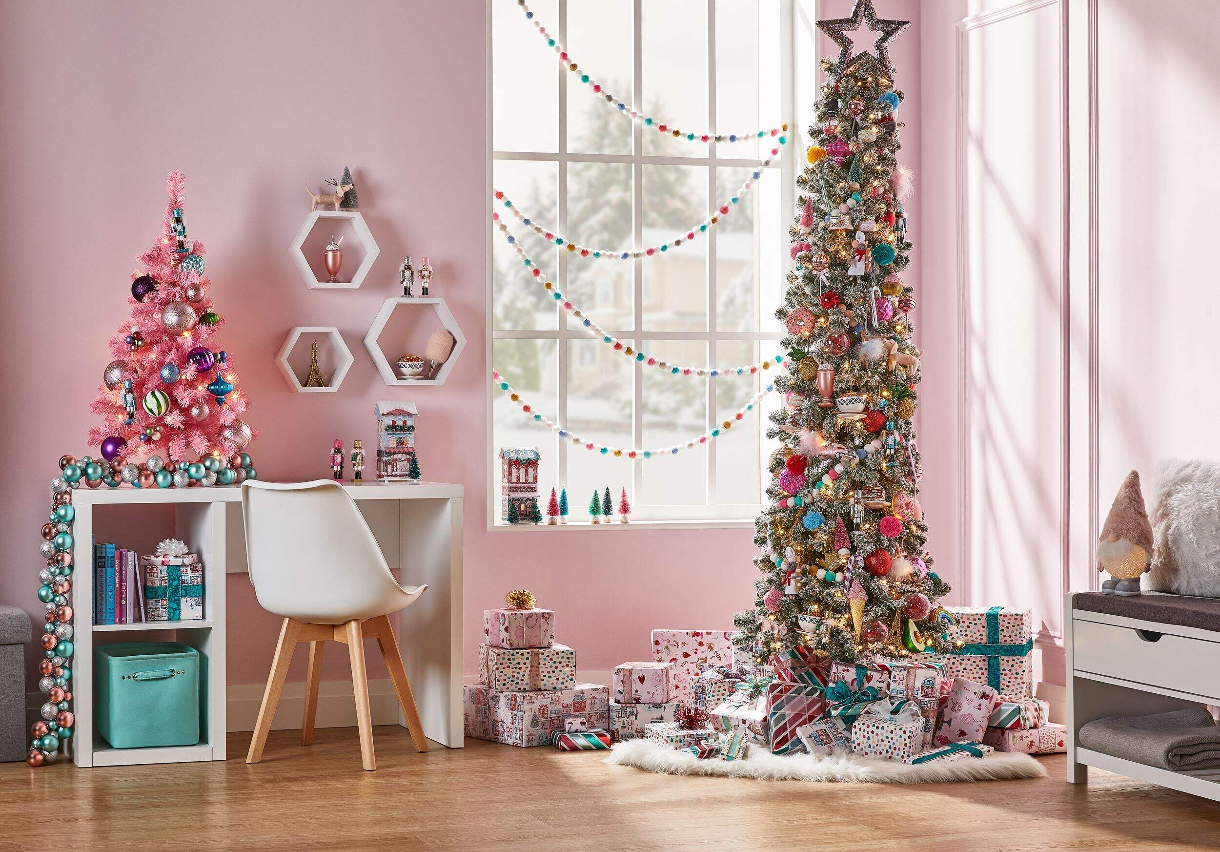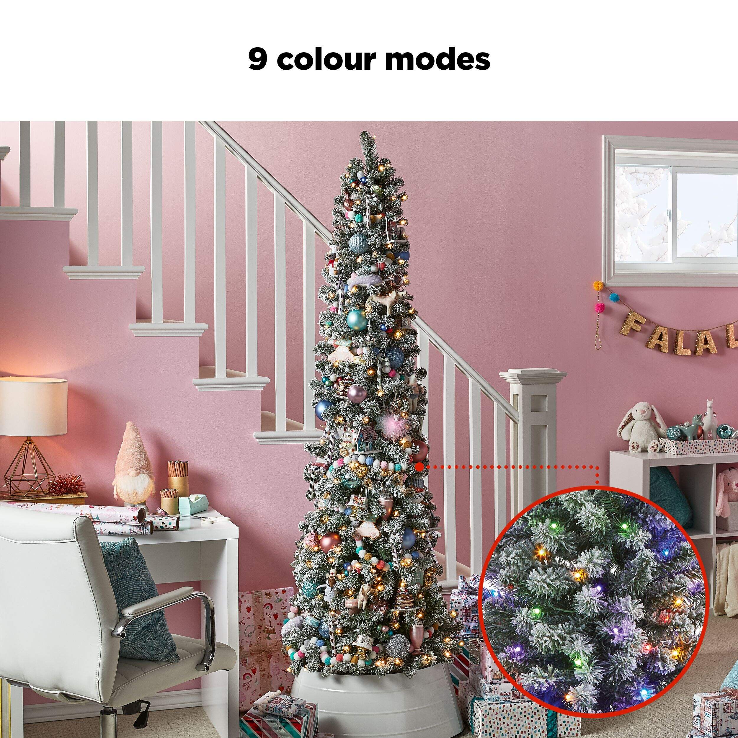 Slim and versatile, the NOMA Colour-Changing LED Bennet Pencil Tree is a great choice for small spaces like apartments or bedrooms, or as a partner tree for families who already own a larger tree. Featuring 200 energy-efficient, multi-colour LED bulbs, the Bennet’s lights can be programmed to change colour or cast a consistently warm white glow.