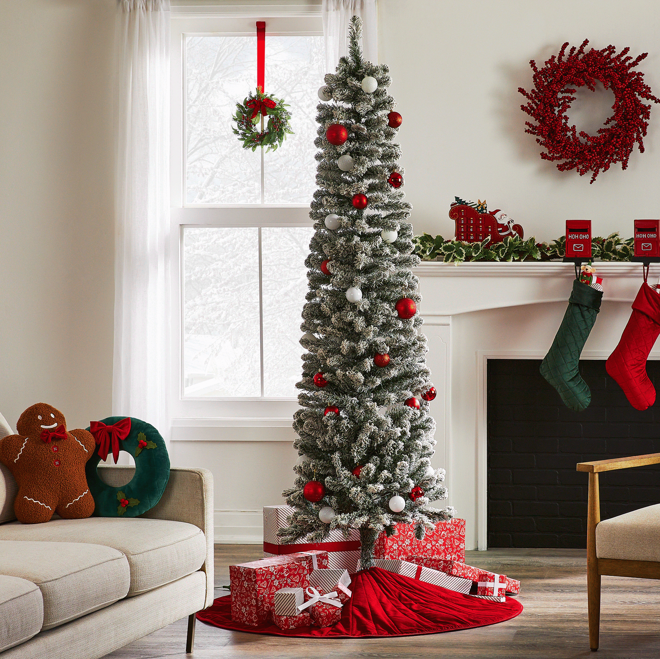 This 7' Christmas tree is a narrow tree that features a festive look you'll love