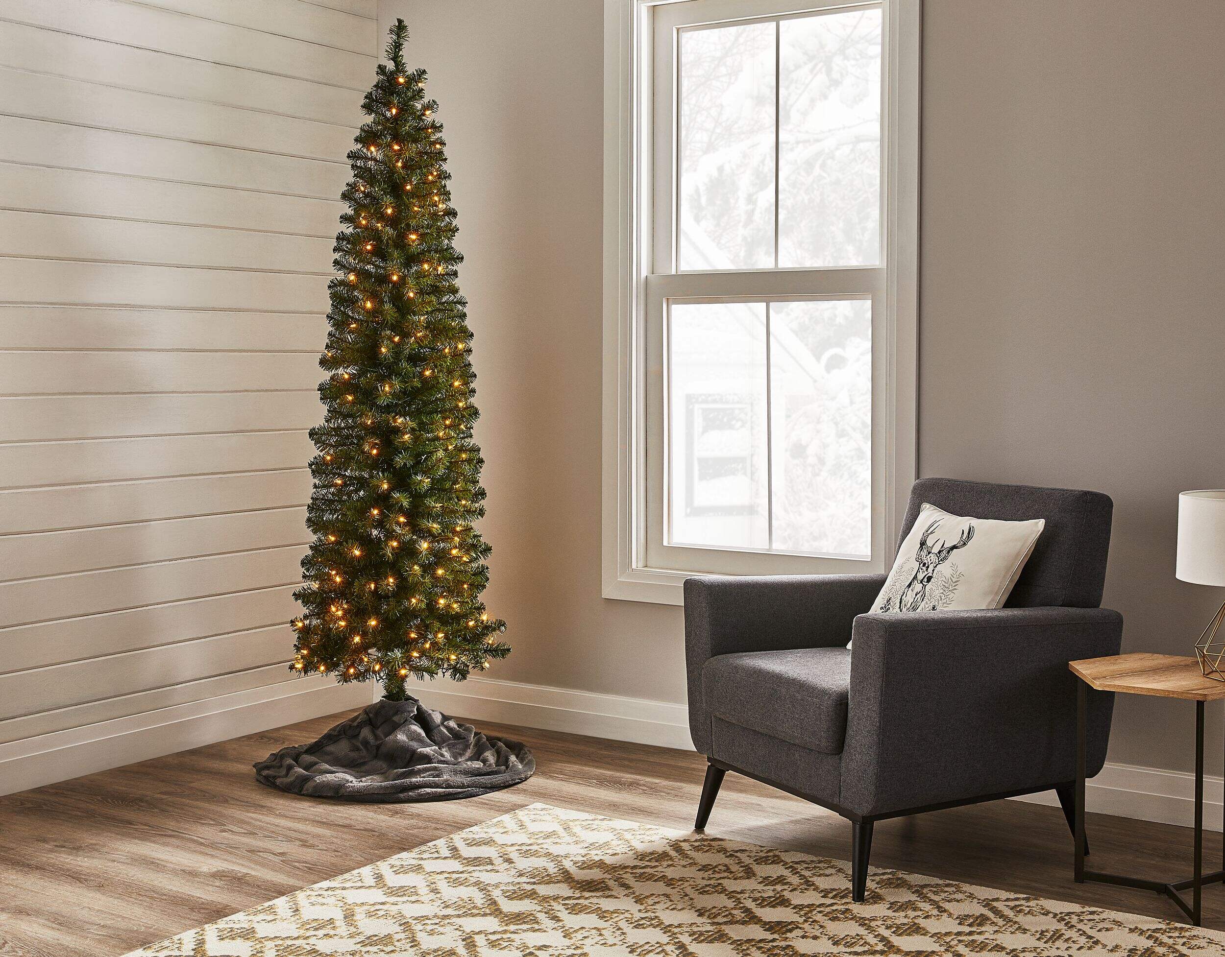 The NOMA Pre-Lit Boulevard Pencil Tree is a stylish take on a Christmas classic, all without the mess of pine needles and spilled water. This sleek artificial Christmas tree owns every room it's in. With a sturdy metal stand and 408 PVC branch tips, this tree offers plenty of space for hanging all of your favourite ornaments.