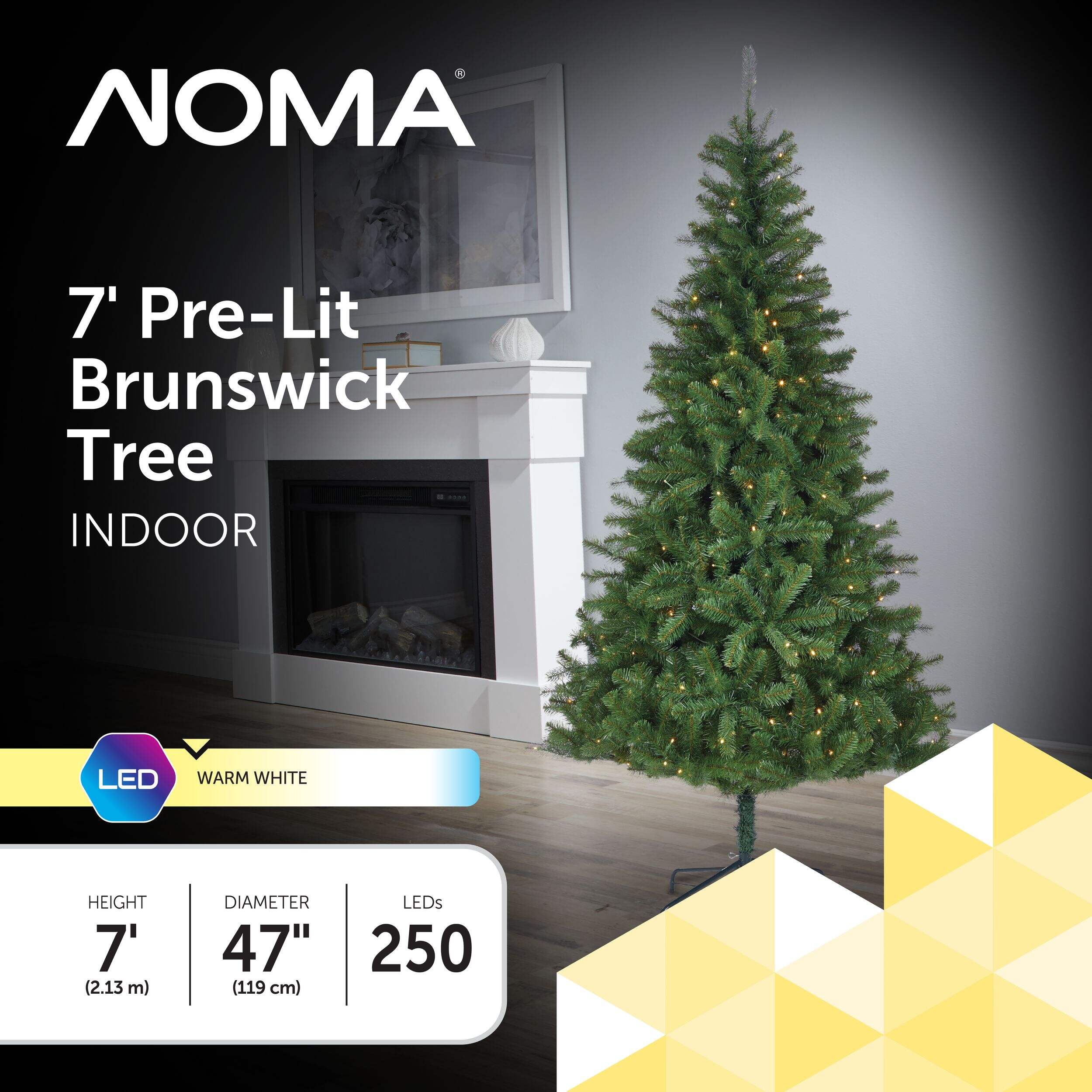 Bring holiday charm to your home with the NOMA Pre-Lit Brunswick Christmas Tree. This stunning tree combines a classic, natural look with warm white LED lights, creating a cozy glow for festive gatherings. Its realistic PVC tips offer ample space for hanging cherished ornaments, while the sturdy metal stand keeps it secure. Skip the hassle of pine needles and watering—this tree offers beauty, convenience, and lasting holiday memories.