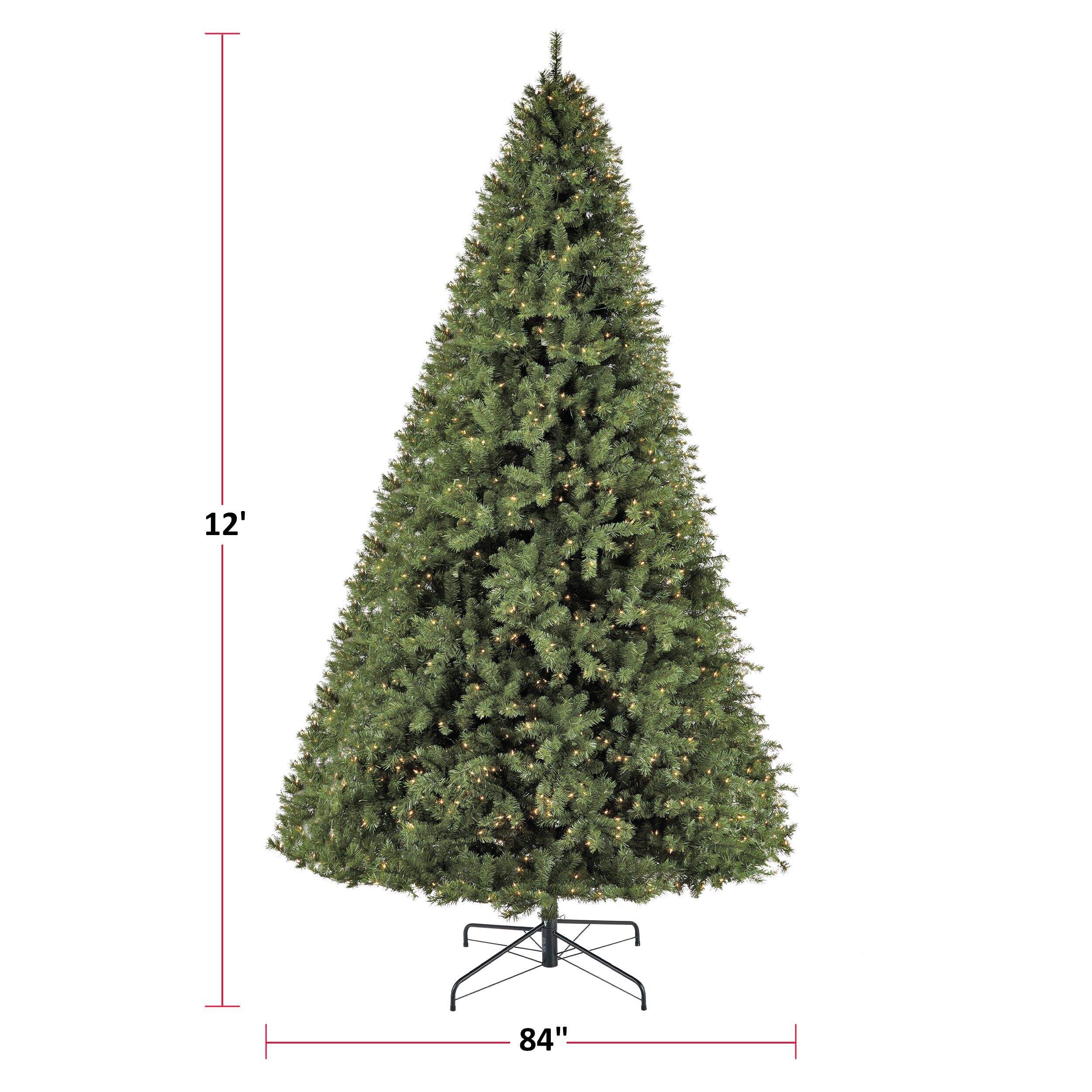 The NOMA Pre-Lit Incandescent Yukon Pine Christmas Tree is 12' (3.6 m) tall and features a traditional festive look