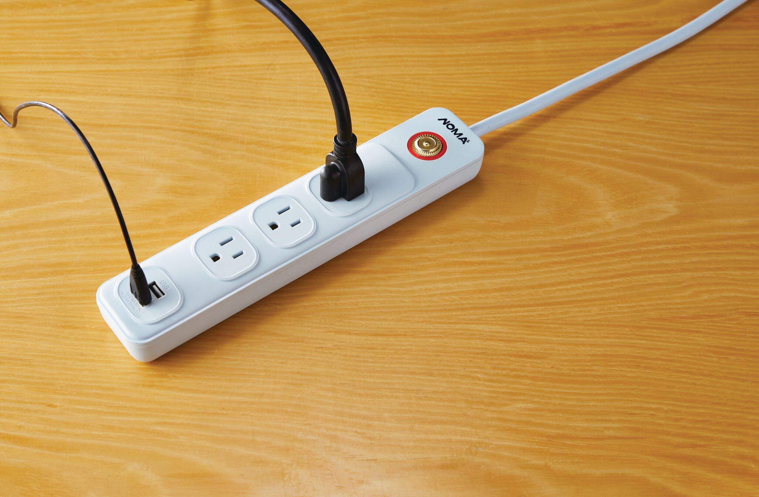 Experience the perfect blend of style and functionality with the NOMA Retro 3-Outlet Power Bar with 2 USB-A Charging Ports. With three grounded outlets and two USB-A ports, you can easily charge multiple devices without sacrificing style. The flat plug design allows for snug placement behind furniture, making it both practical and visually appealing. Whether you’re powering devices or adding charm to your retro-themed room, the NOMA power bar is the ideal solution.
