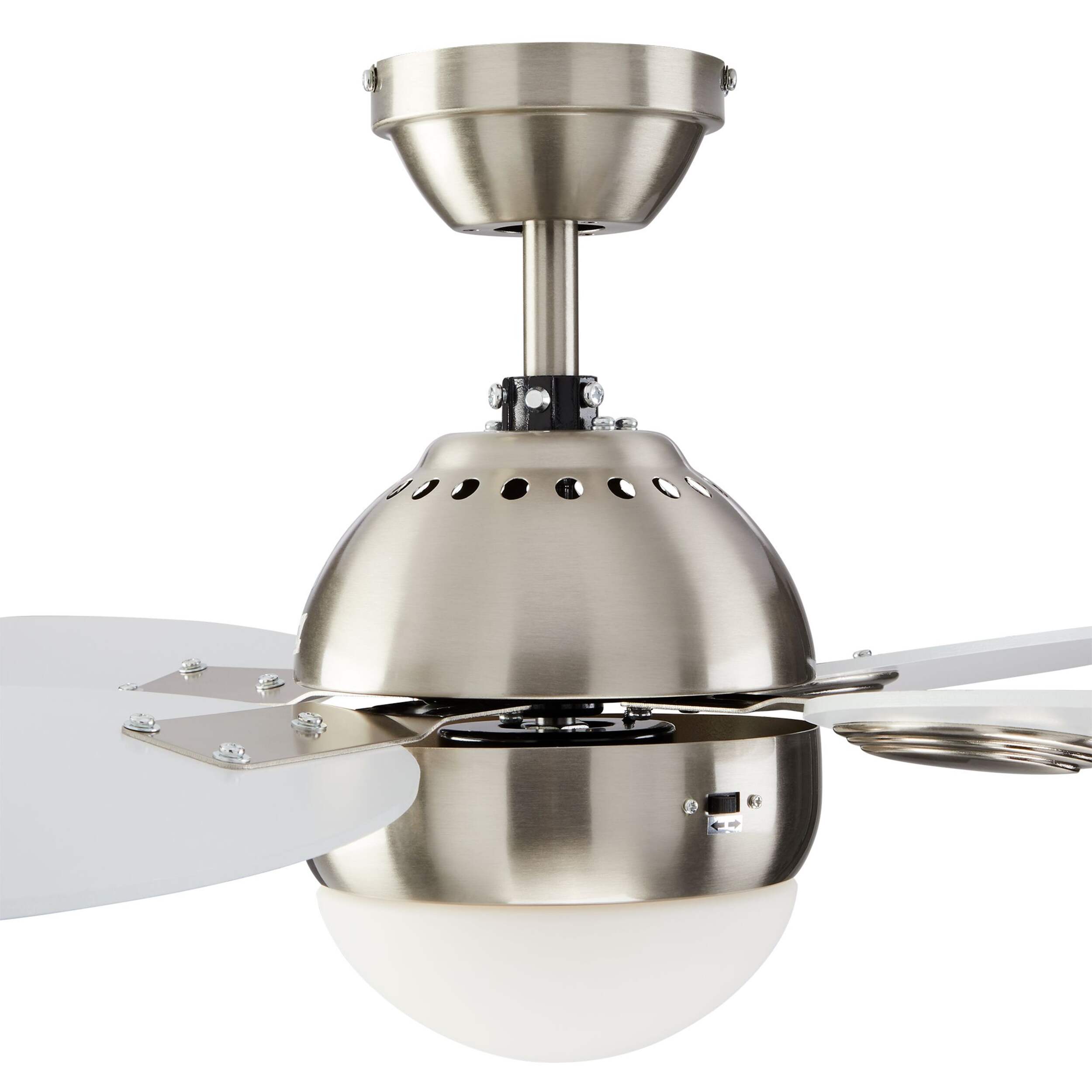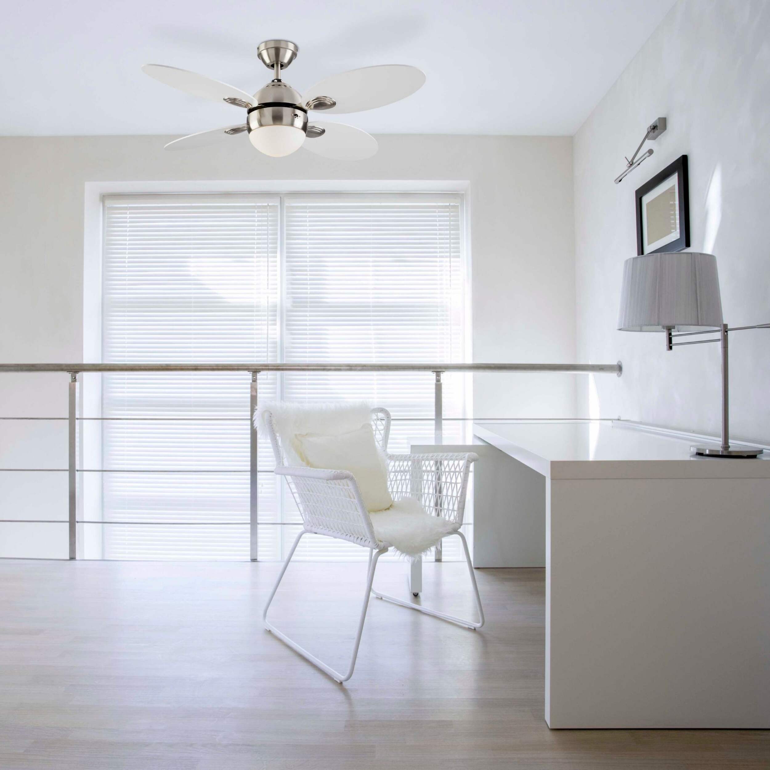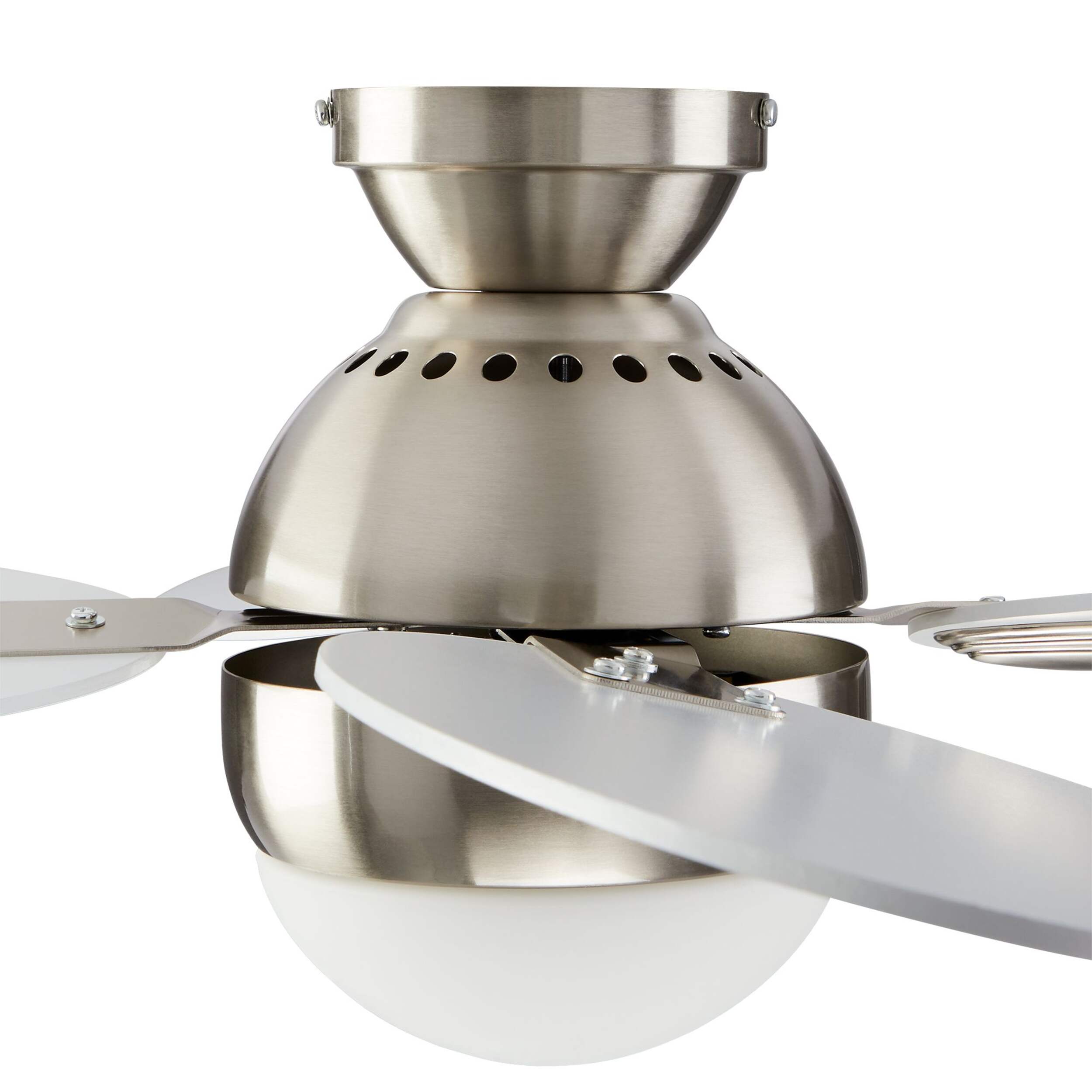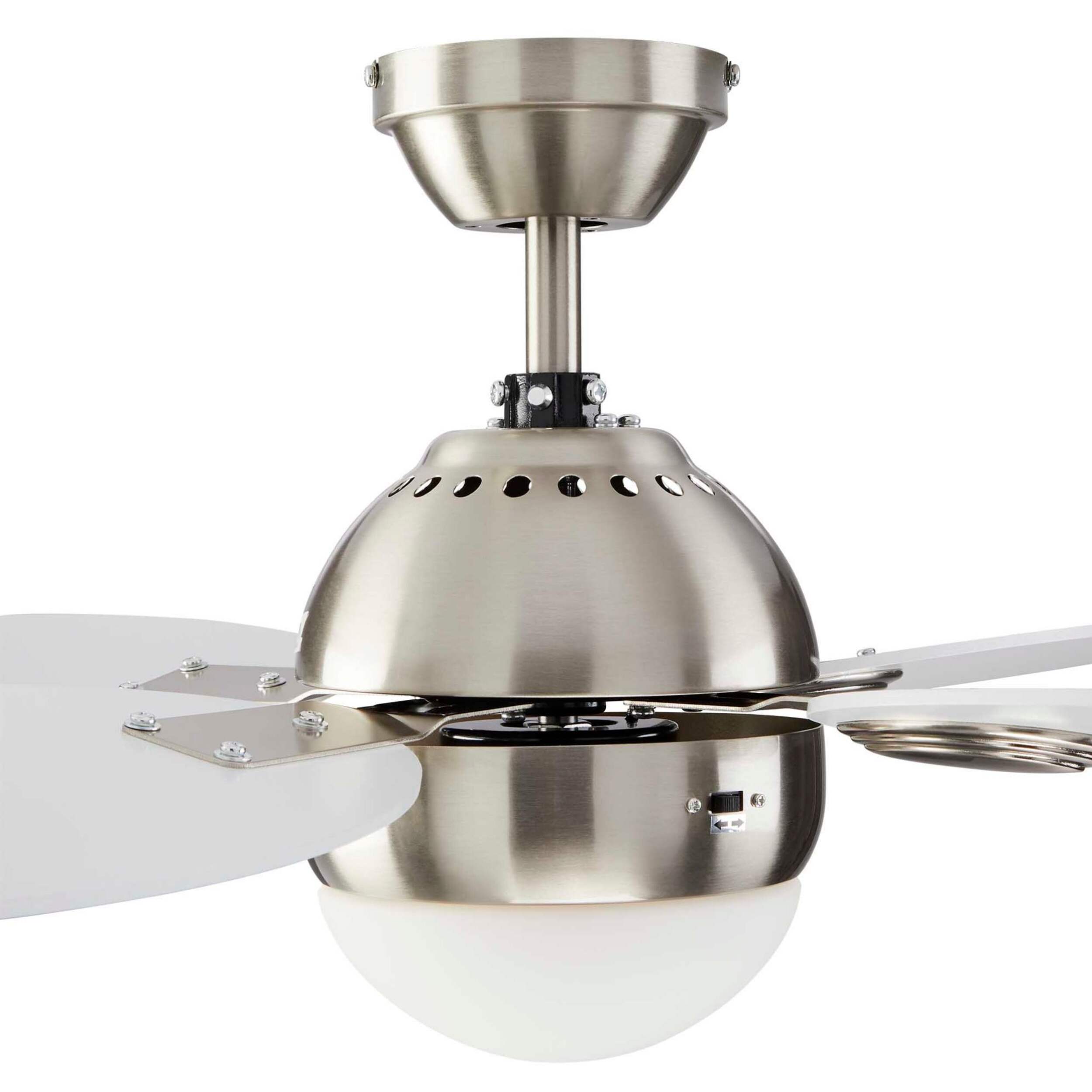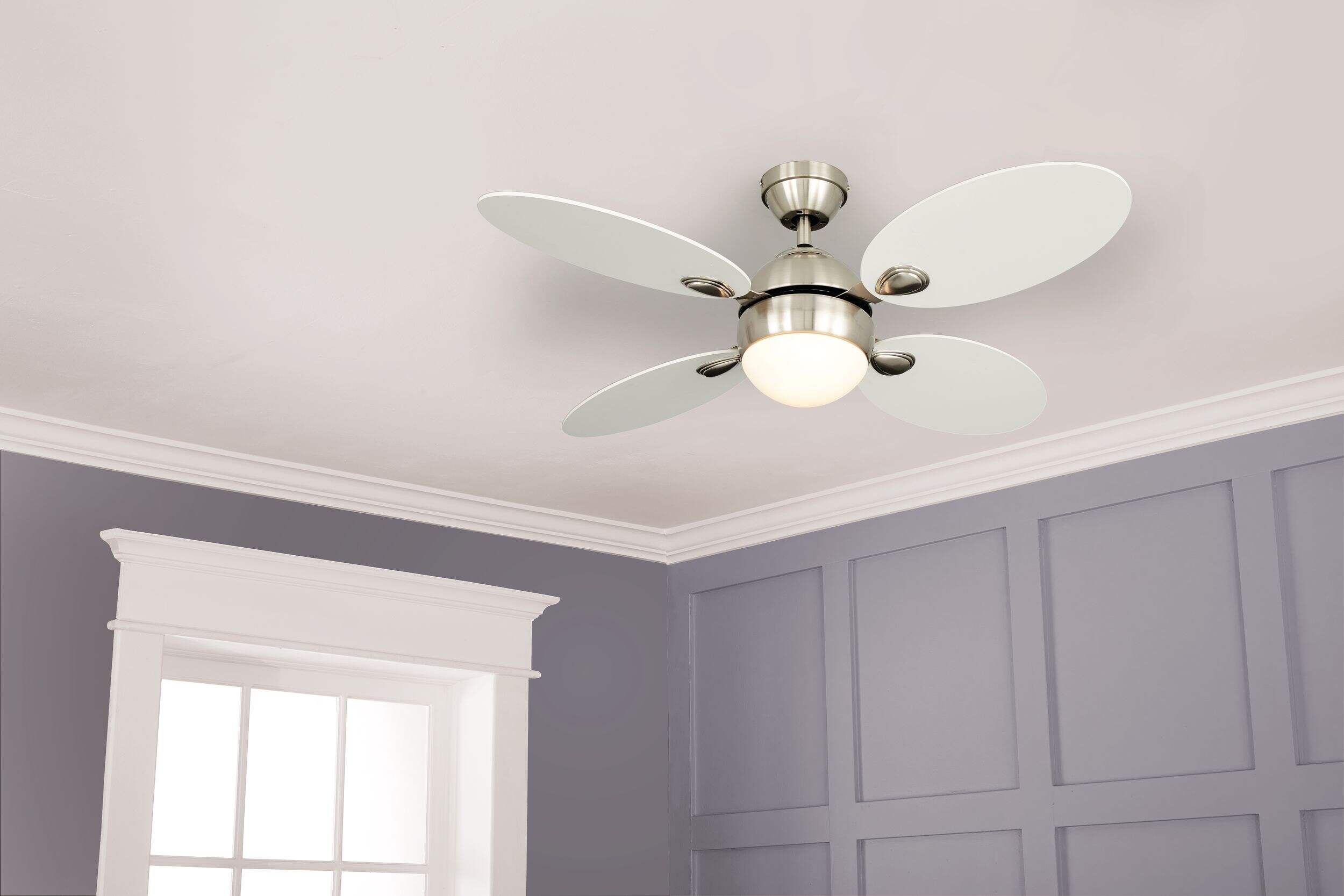 The NOMA Scandinavian White Ceiling Fan features a brushed nickel finish and four white blades to complement any home décor