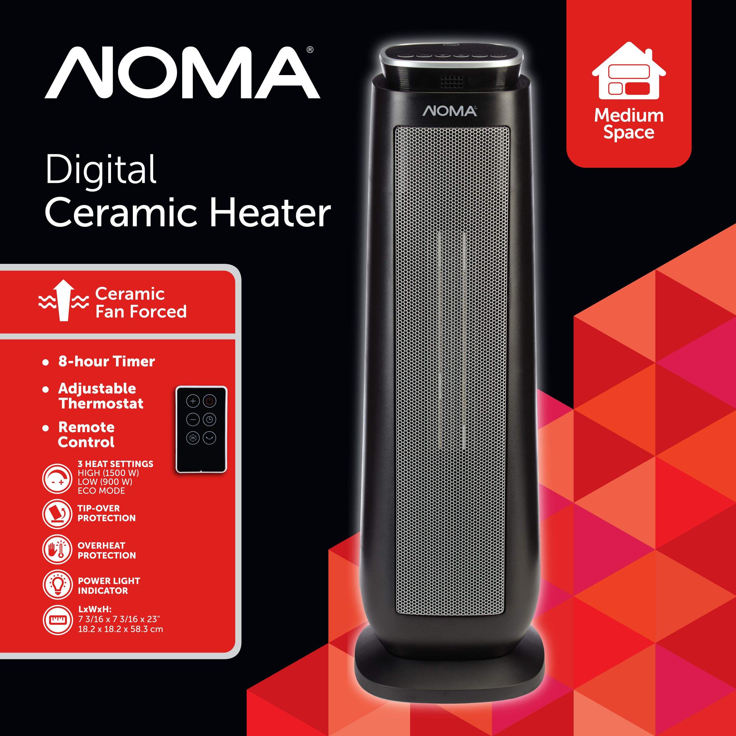 Keep your home toasty warm all winter long with this NOMA Tower Ceramic Space Fan Heater with Remote Control. This versatile heater can function as a standalone system when combined with other space heaters, or can be used to add a little extra warmth to your bedroom or living space when the furnace isn't enough. With a lightweight design, this portable heater can conveniently be moved from room to room. You can feel secure knowing this sleek and stylish room heater is equipped with built-in safety features that automatically turn it off if it gets too hot or tips over.