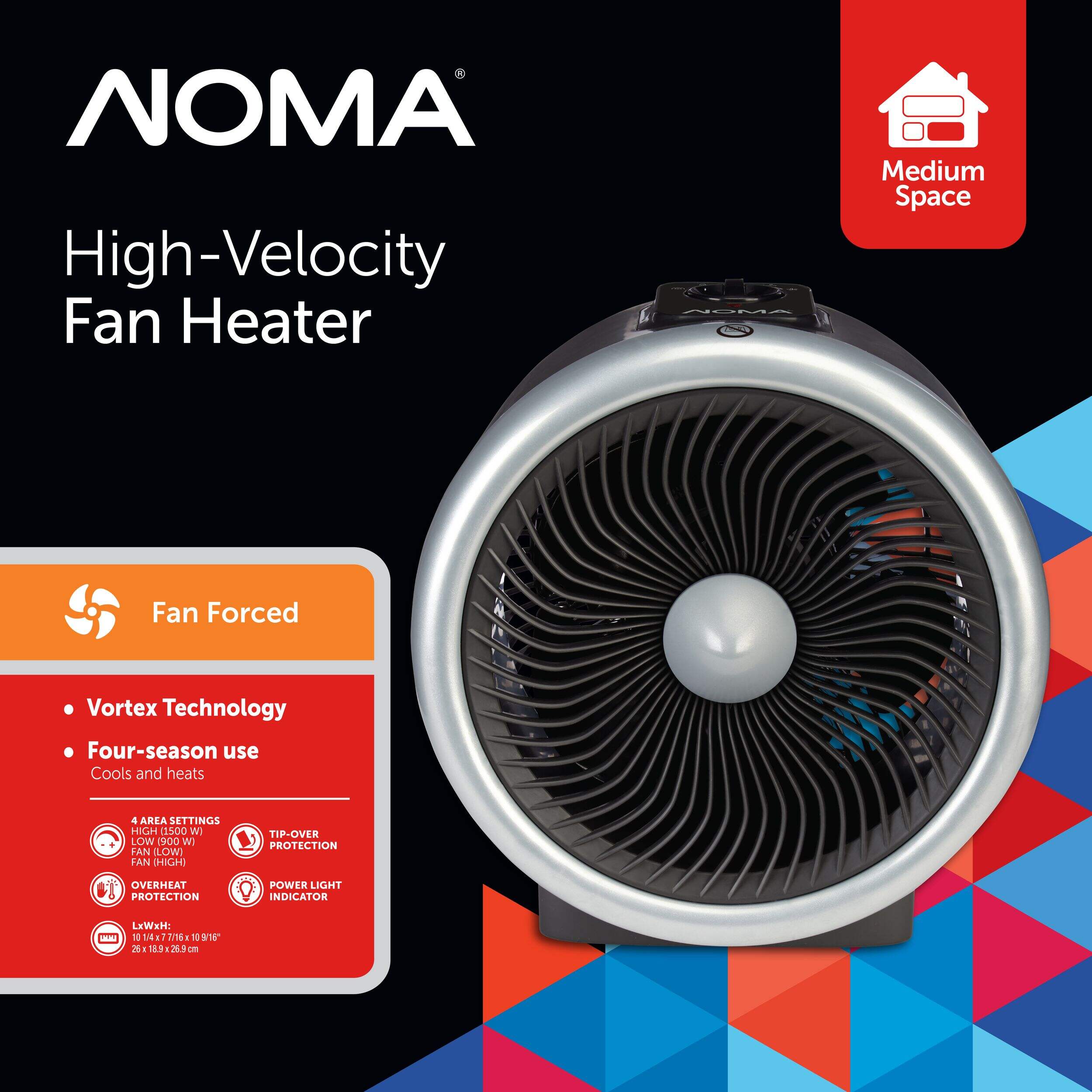 The NOMA Turbo Space Fan Heater provides both cooling and heating functions, so you can get versatile, all-season use out of a single unit. Designed for small to medium-sized spaces, this heater fan features variable heat and fan settings, making it easier to warm or cool your space as needed. Use this portable heater fan at home or in the office for personal or family comfort whether you're at work or play.