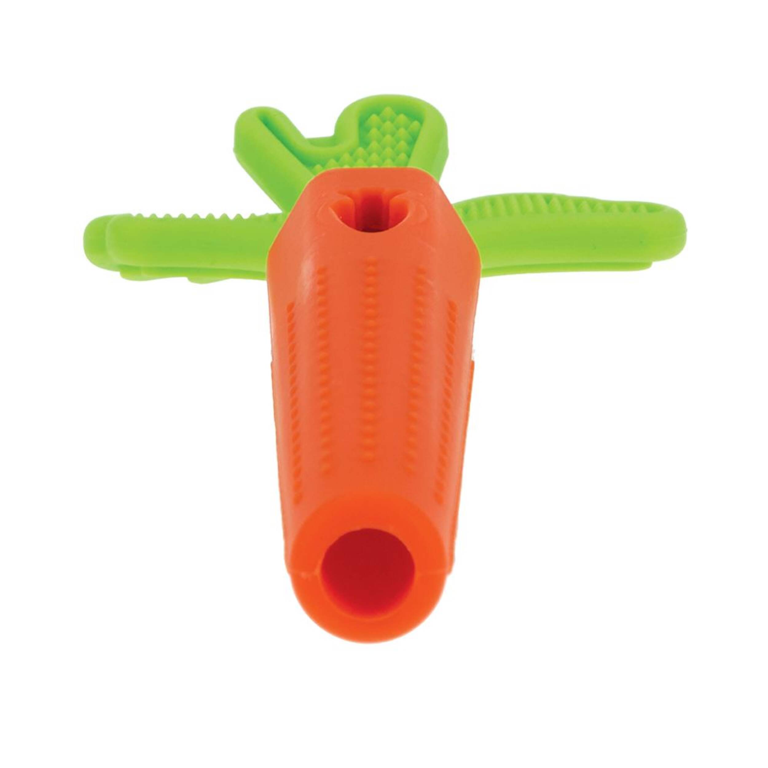 The Nuby Silicone Hollow Sensory Carrot Teething Tube is the perfect solution for soothing your baby's sore gums. Its unique design not only helps with cutting molars but is also easy for little hands to grasp. Made from soft, flexible silicone, this teething tube provides comfort and relief for your little one.