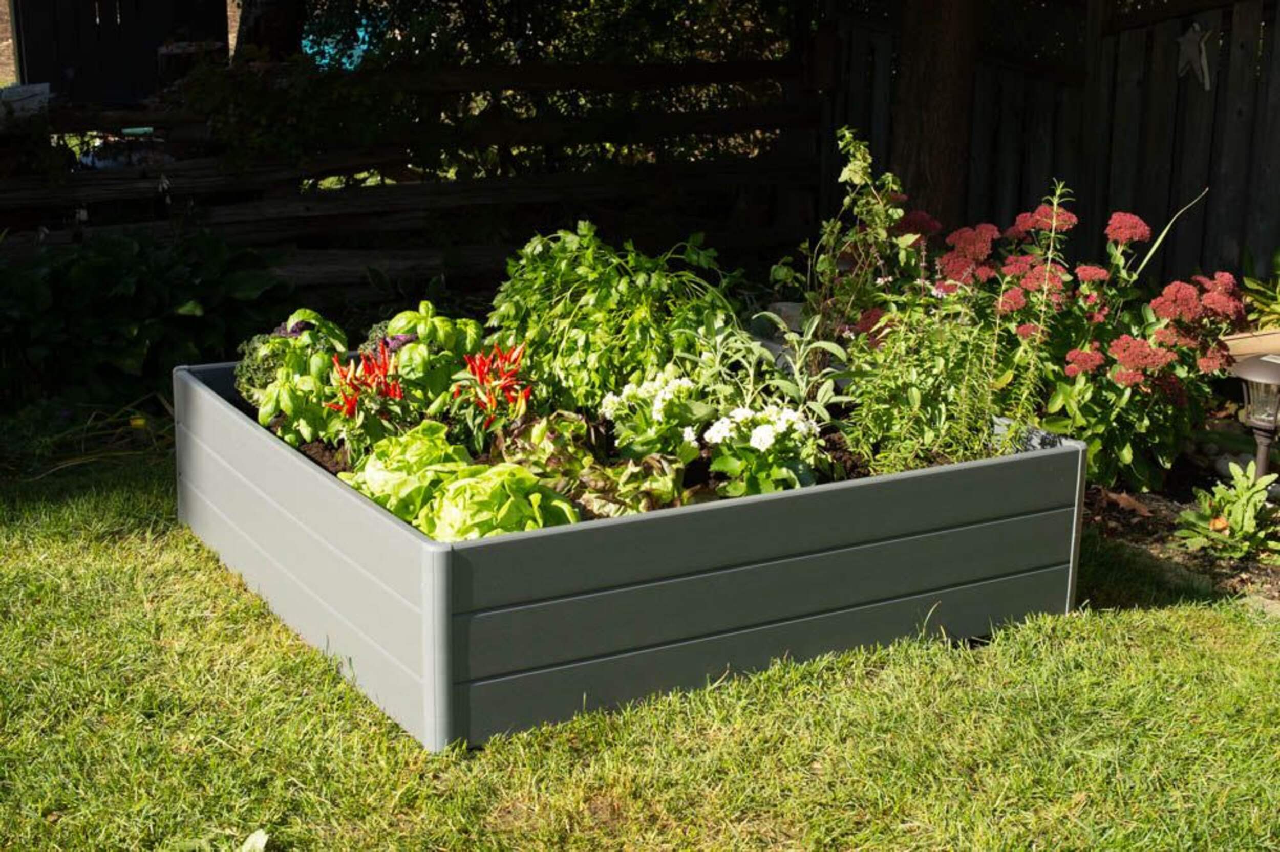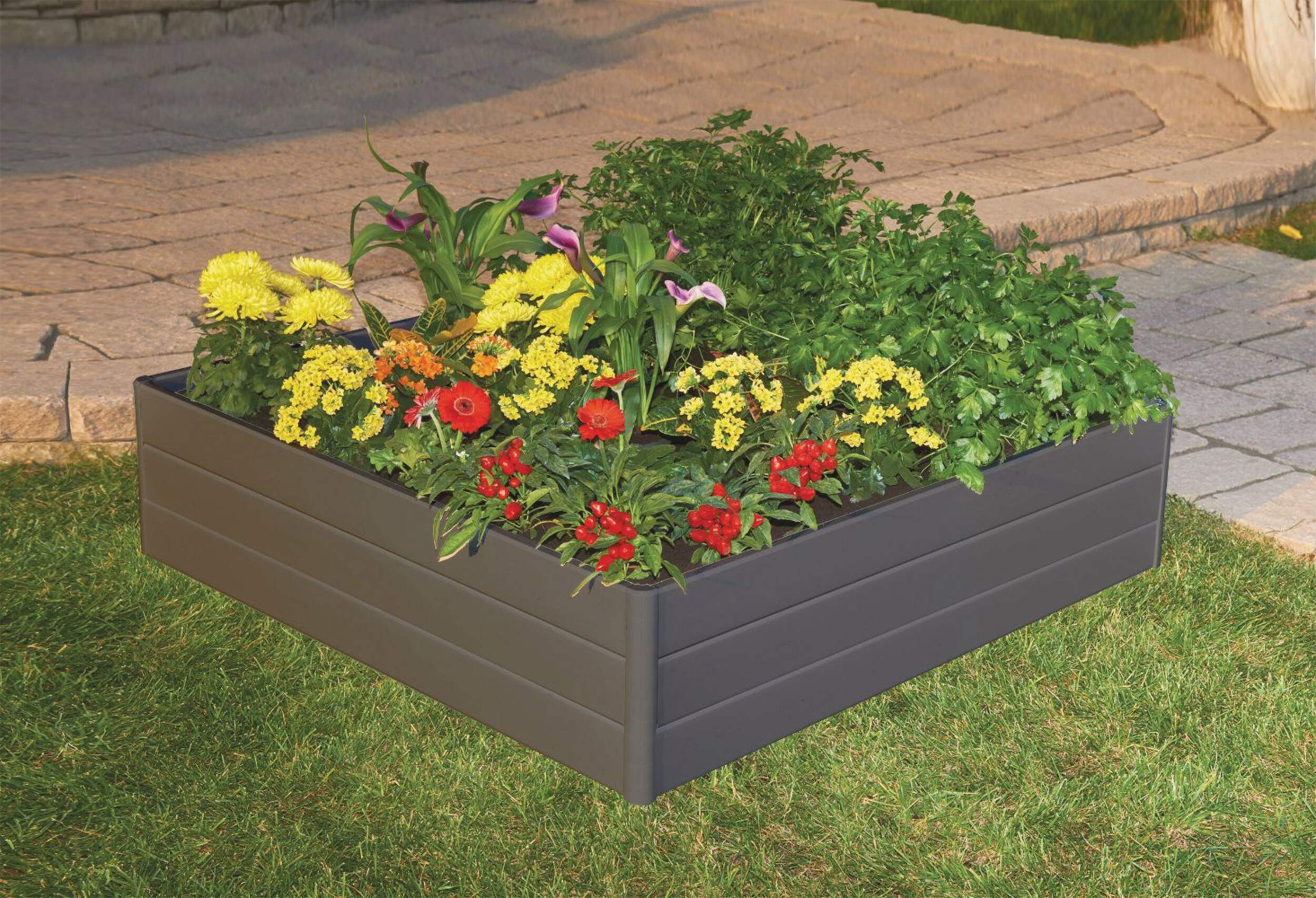 The NuVue Outdoor Slate Raised Garden Bed Planter offers an attractive way to grow plants, vegetables, herbs, flowers and fruits in any outdoor space. This durable raised garden bed planter features a weather-resistant polymer construction that will not rot, rust or discolour over time. Made to last season after season, this slate grey raised garden bed planter enables convenient gardening and adds beauty to patios, decks and yards.