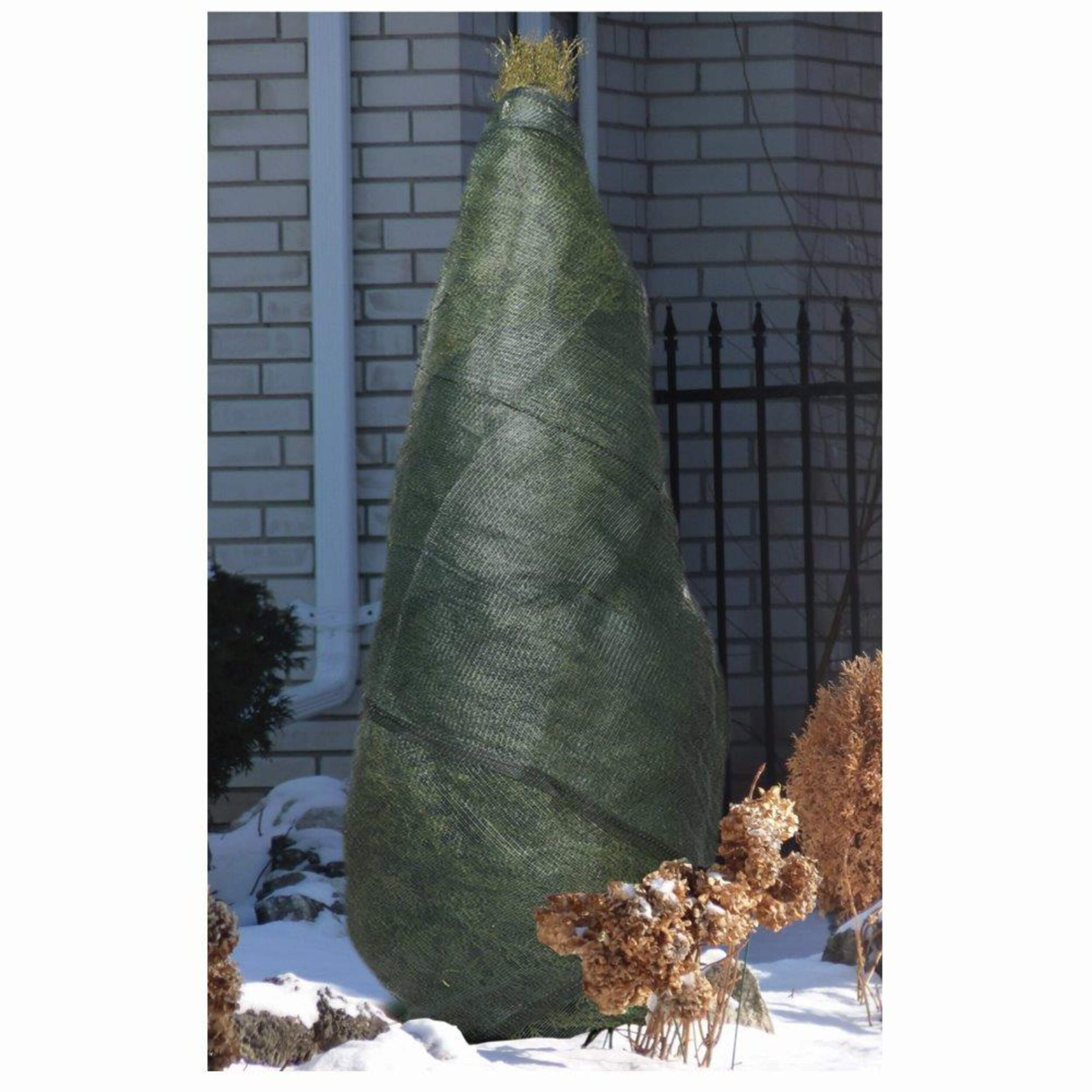 Better than burlap! High-tech synthetic weave cover protects plants, trees and shrubs from strong winds, road salt spray, winter burn and heavy snow damage.