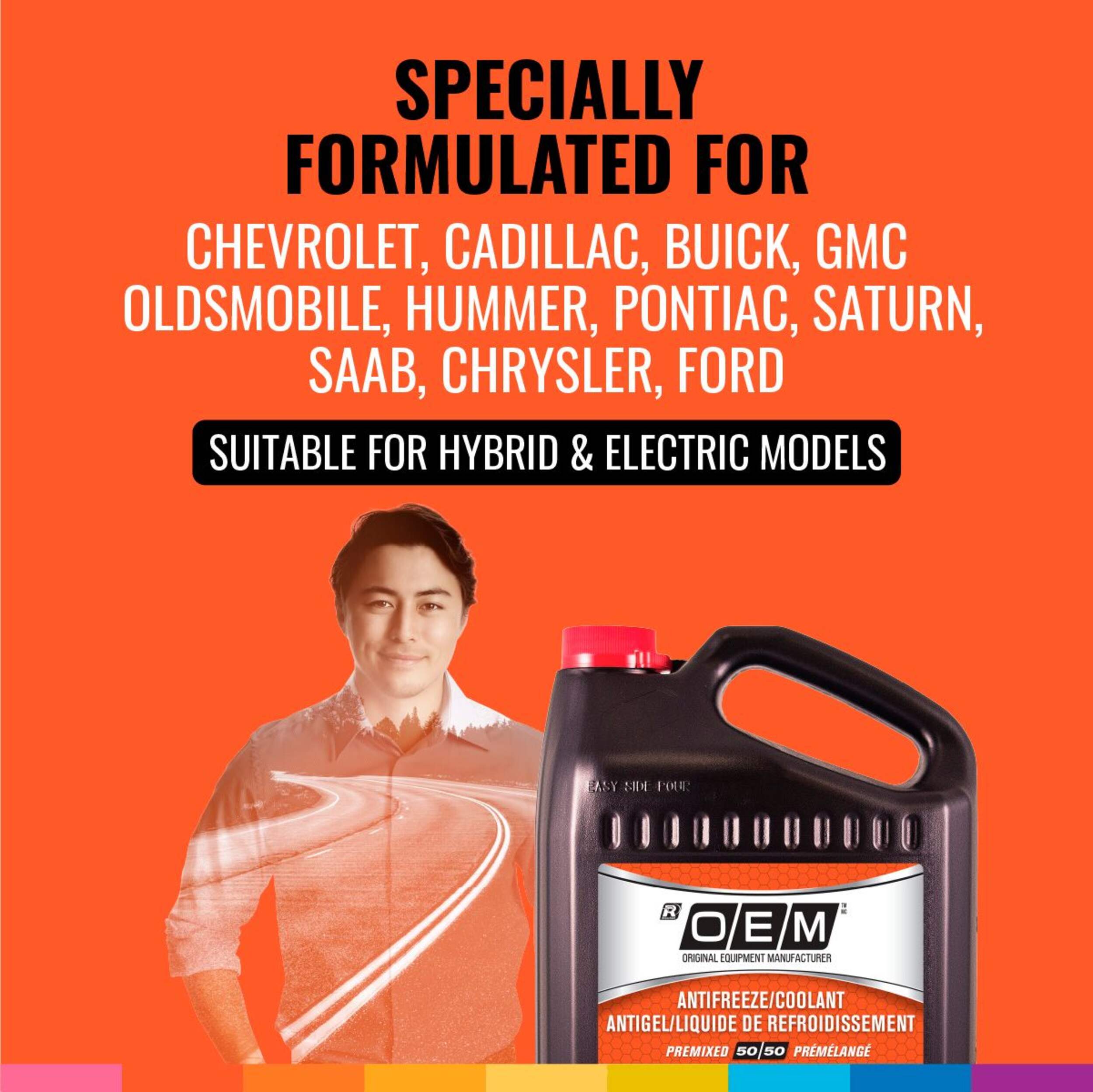 OEM Antifreeze Coolant - The right match for your vehicleWe're Matchmakers. OEM understands, you love your vehicle. OEM is dedicated to matching you to the right antifreeze/coolant for your vehicle. Your colour match indicates the right formulation for your vehicle, protecting your engine from extreme temperatures, start after start. Trust the experts at OEM.