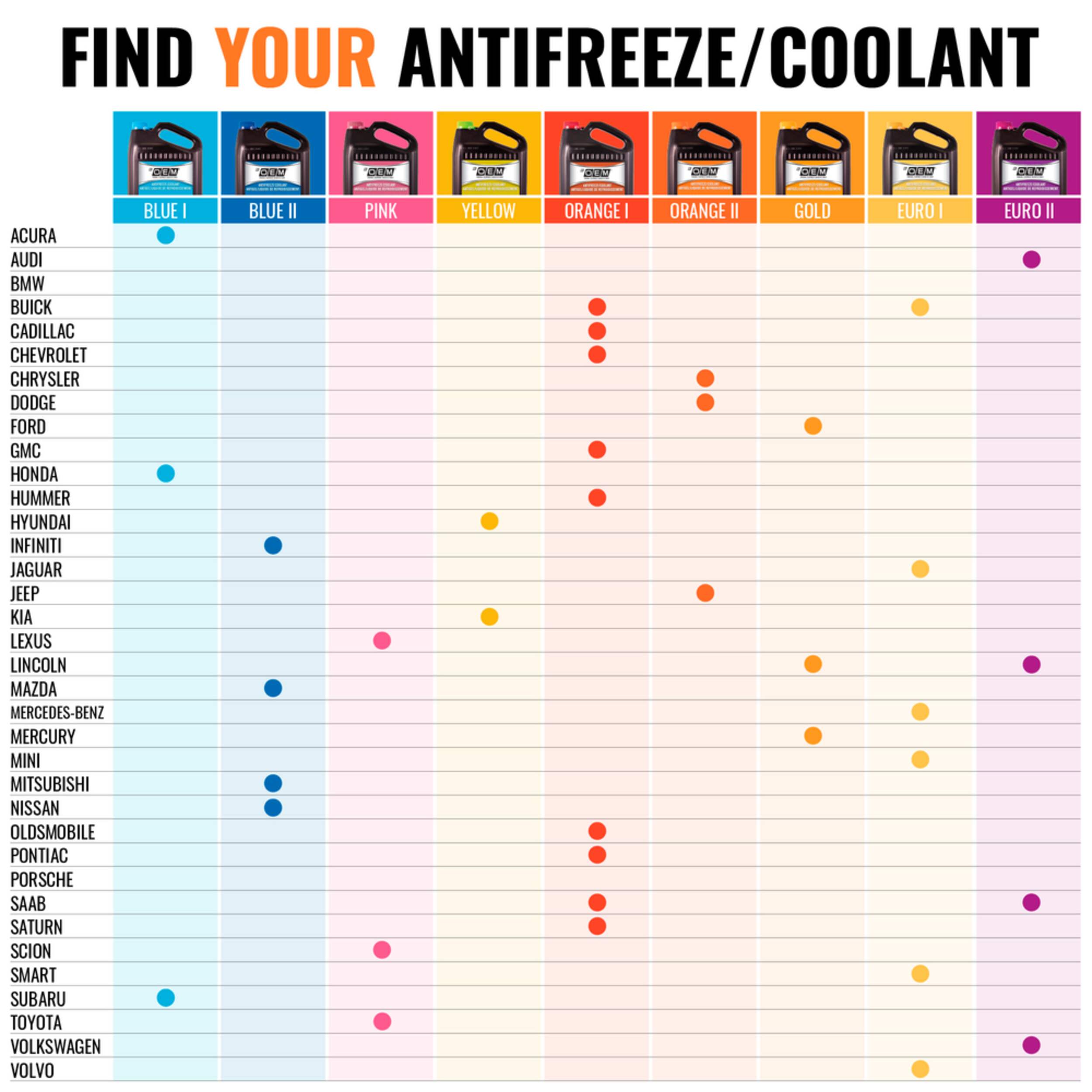 With 10 different formulations that match the factory fill specifications, find the right coolant/antifreeze specifically made for YOUR vehicle - Find YOUR match
