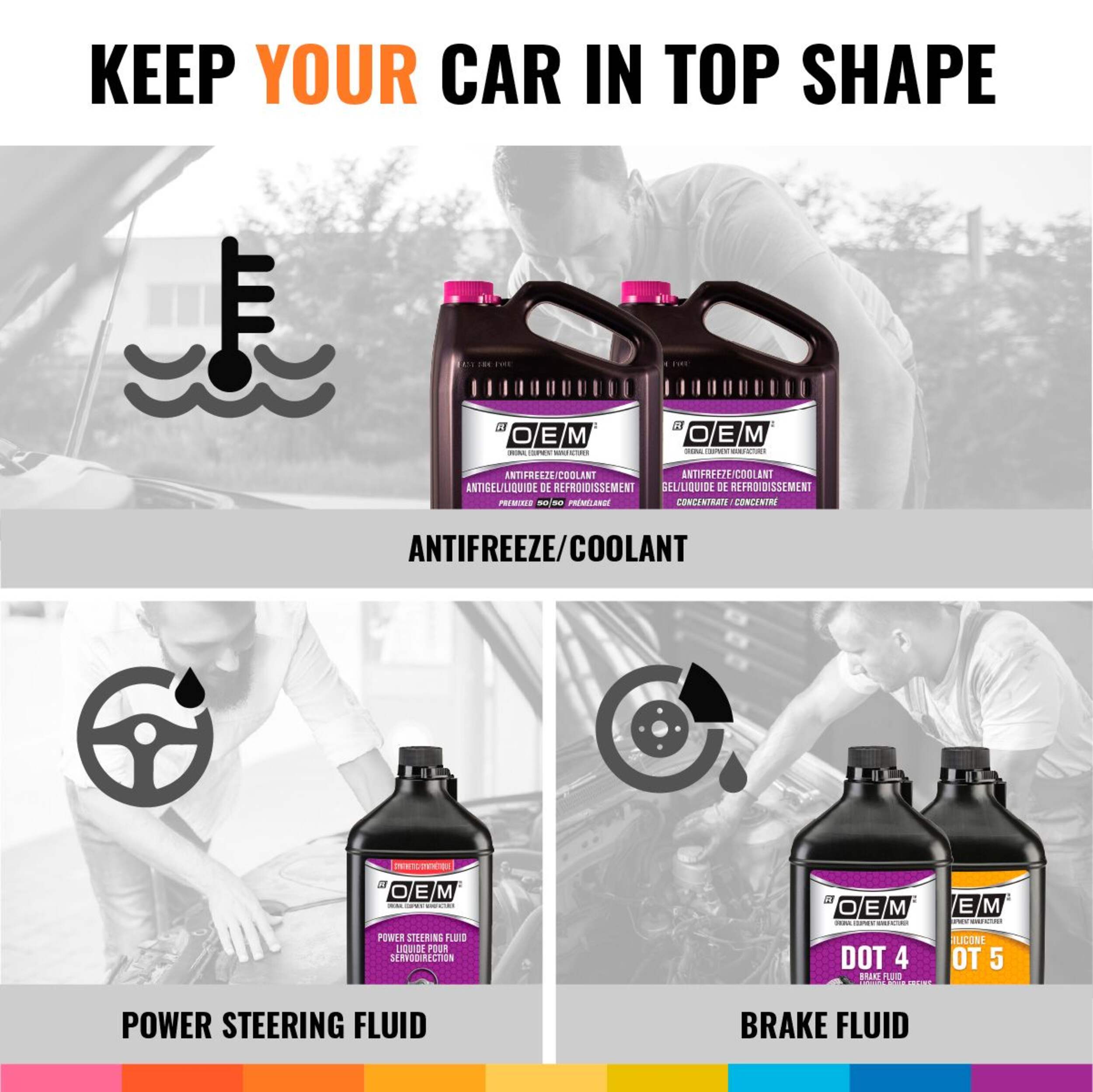 OEM Antifreeze Coolant - The right match for your vehicleWe're Matchmakers. OEM understands, you love your vehicle. OEM is dedicated to matching you to the right antifreeze/coolant for your vehicle. Your colour match indicates the right formulation for your vehicle, protecting your engine from extreme temperatures, start after start. Trust the experts at OEM.