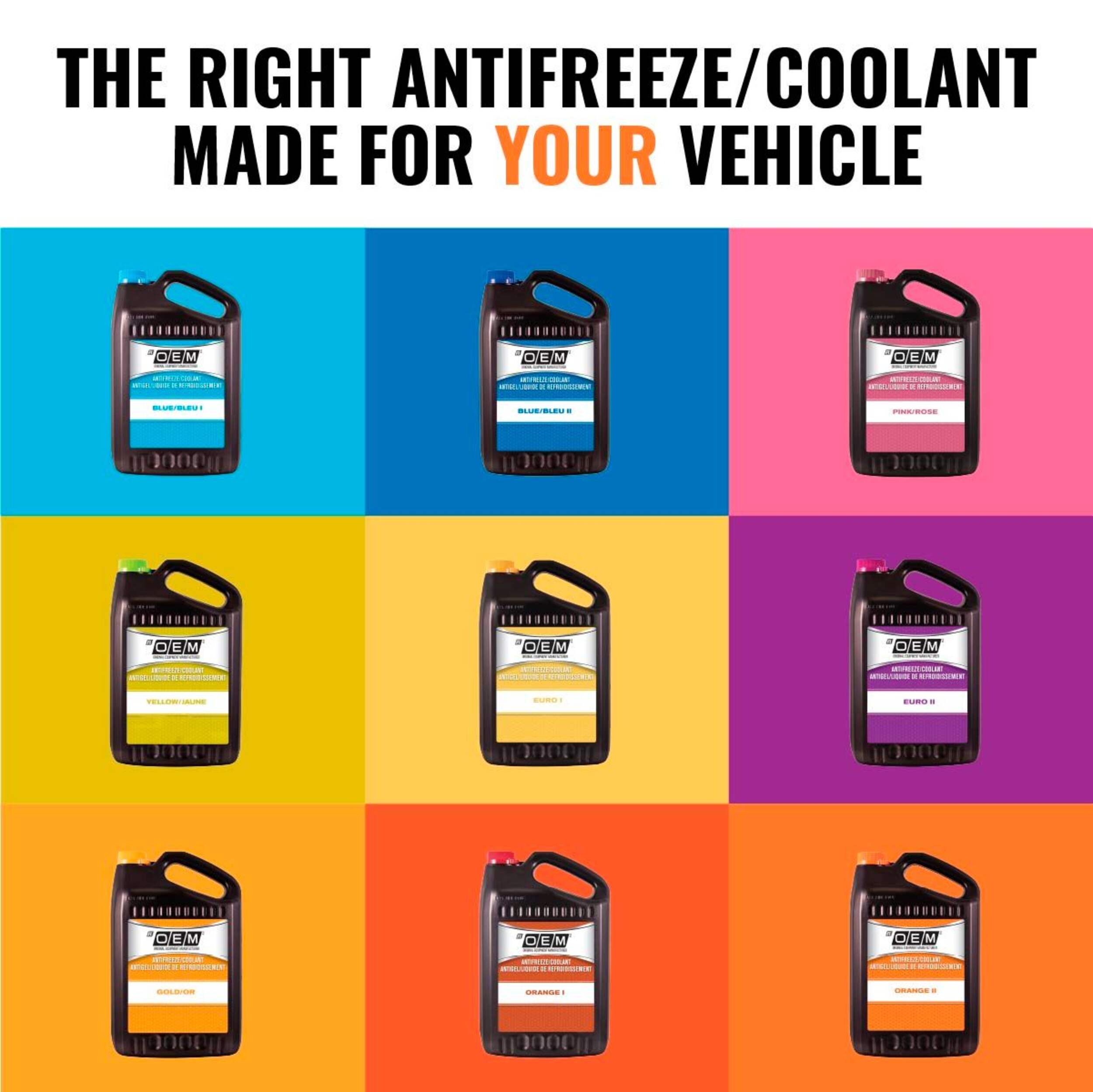 OEM Antifreeze Coolant - The right match for your vehicleWe're Matchmakers. OEM understands, you love your vehicle. OEM is dedicated to matching you to the right antifreeze/coolant for your vehicle. Your colour match indicates the right formulation for your vehicle, protecting your engine from extreme temperatures, start after start. Trust the experts at OEM.