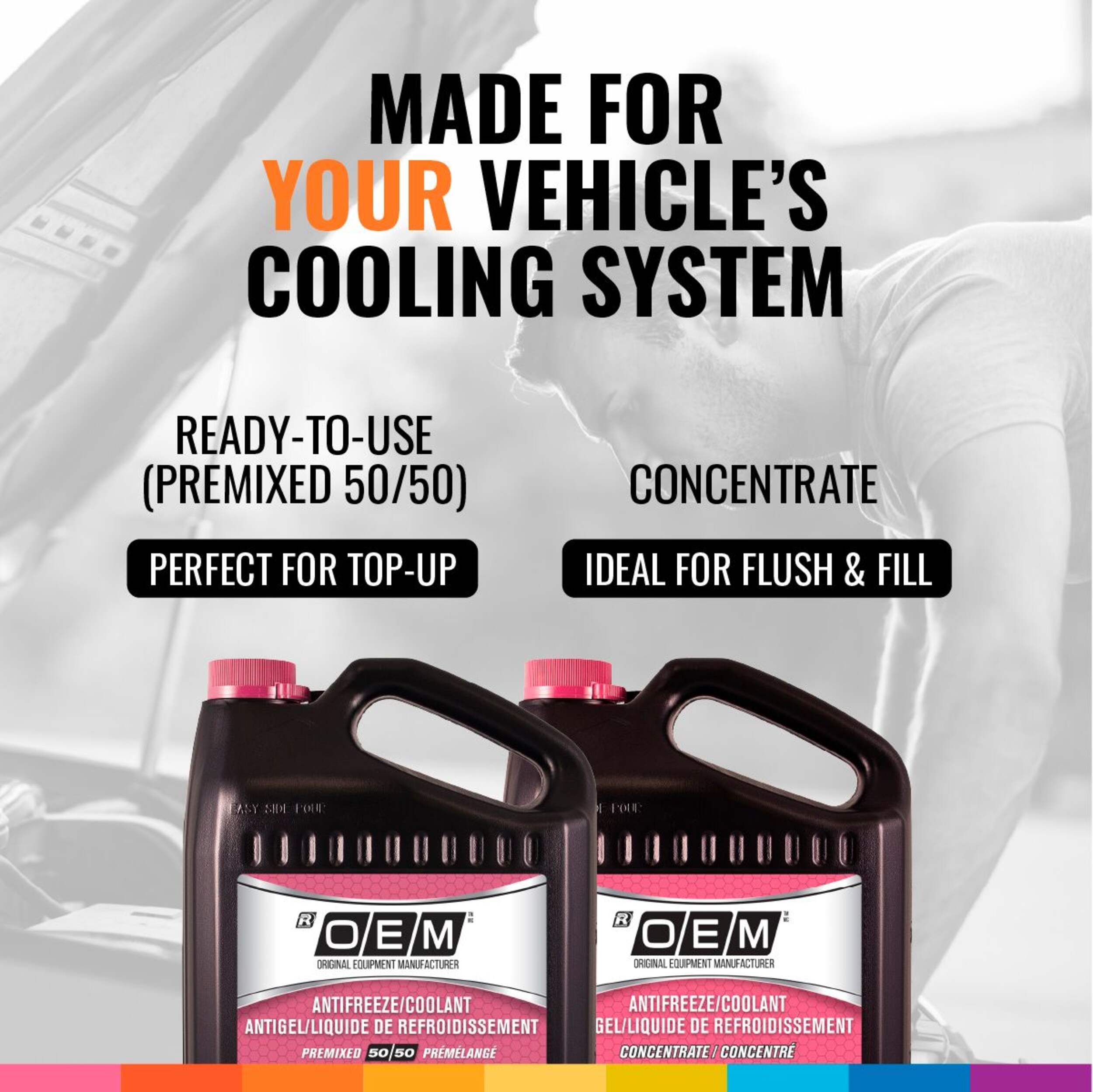 OEM Concentrate Extended Life Antifreeze/Coolant Pink is available in both Ready-to-Use (premixed 50/50) and concentrate formula. With 10 different formulations that match the factory fill specifications, find the right coolant/antifreeze specifically made for YOUR vehicle - Find YOUR match.