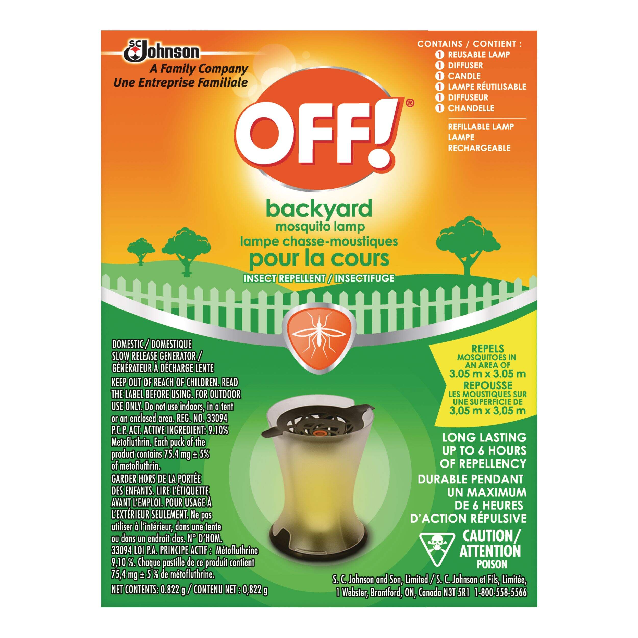 Protect your outdoor parties or other festivities with the OFF! Backyard 6-Hour Insect Repellent/ Mosquito Killer Lamp. This heated pad releases an insecticide that effectively repels mosquitoes while maintaining the ambiance of your outdoor space. Simply activate the diffuser by lighting the candle, sit back, and relax.