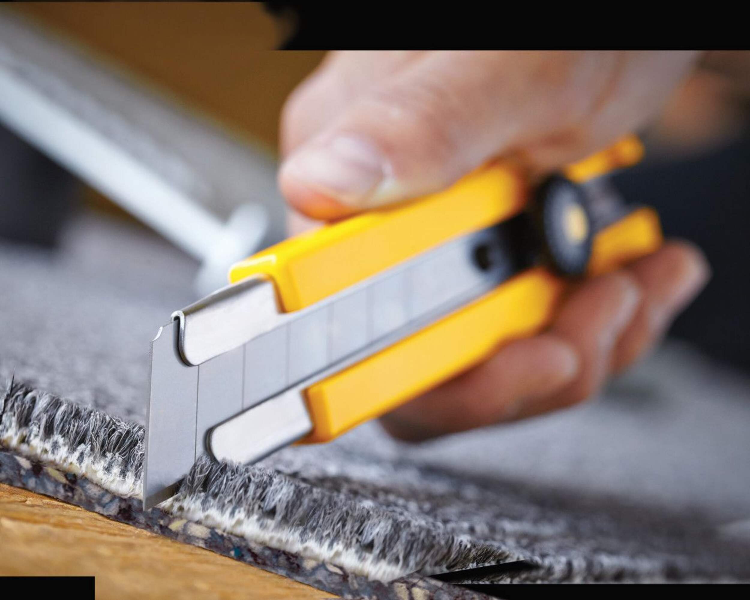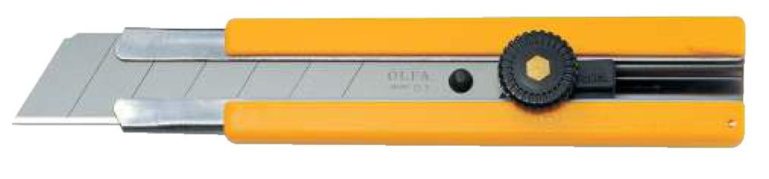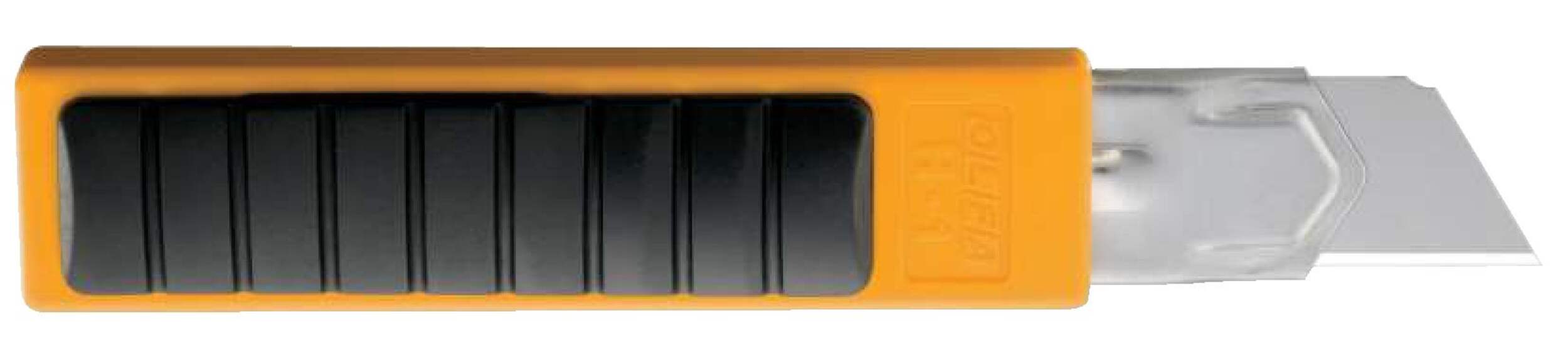 Designed to perform, the OLFA 25 mm H-1 Classic Extra Heavy-Duty Utility Knife with Rubber Grip Inset is up to the task. The robust ABS plastic handle offers added leverage. The stainless-steel blade channel supports the blade for a cutter made to last. Working in damp or humid conditions? The anti-slip rubber insert in the handle ensures grip and adds comfort. Use the ratchet-lock blade actuator to adjust the blade to any cutting depth needed. Preloaded with a tough HB Extra Heavy-Duty Silver Snap Blade for use out of the package. Each blade offers seven segments for volume cutting with a quick snap of the blade. No extra tools are ever needed to keep your blade sharp. To change the blade, loosen the ratchet wheel and slide the blade from the back of the tool. Insert a fresh blade, tighten the wheel and return to work.