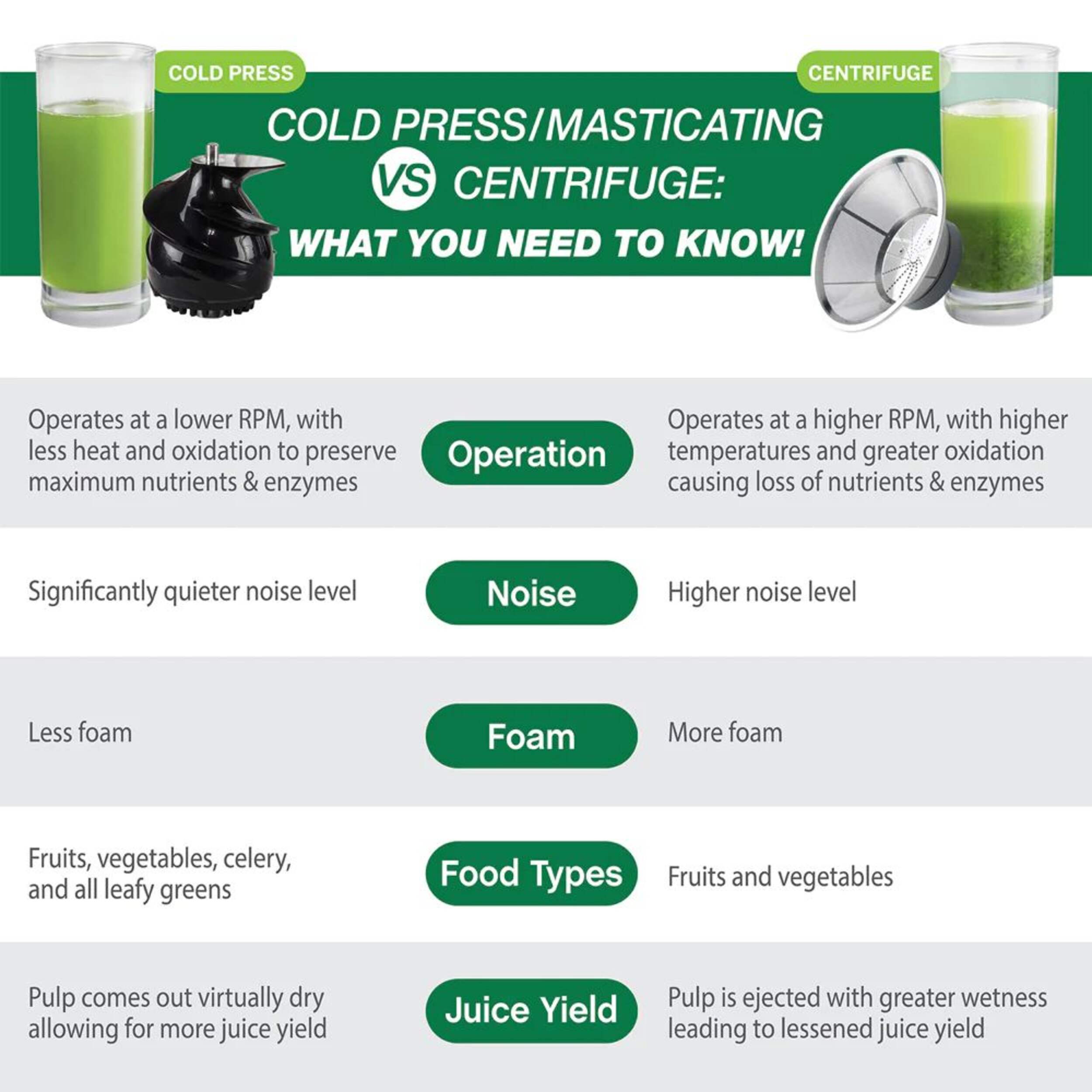 Low-speed motor gently extracts juice, preserving natural enzymes and minimizing heat buildup for fresher, longer-lasting juice