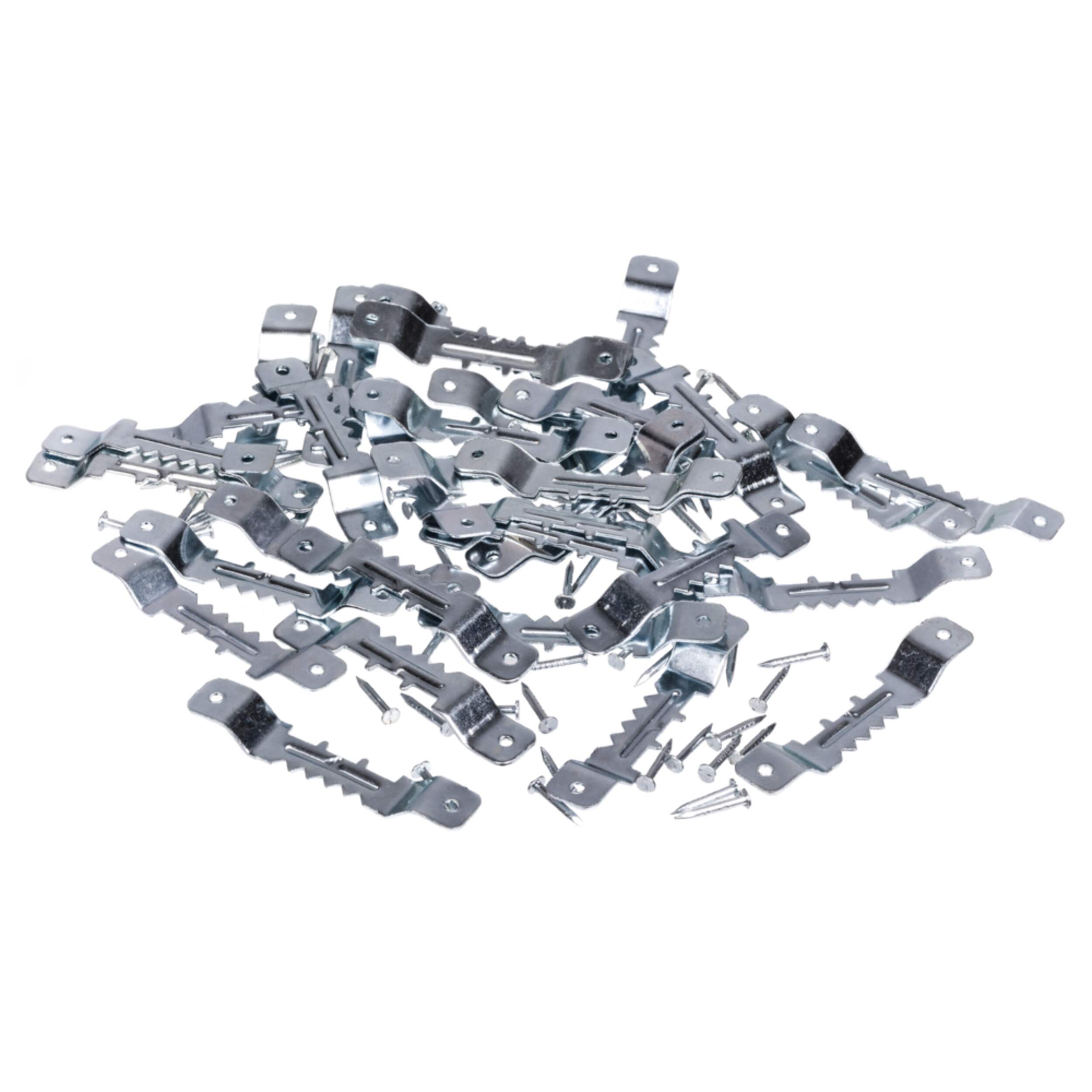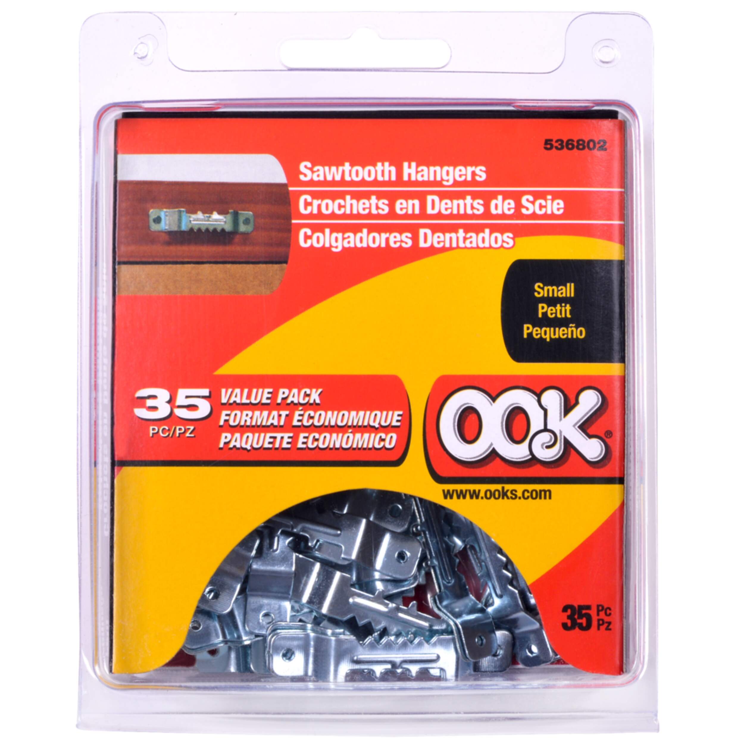 OOK Sawtooth Hangers are perfect for organising your home gallery walls. The 35 pack of self-leveling hangers easily install onto wood picture frames for quick, hassle-free hanging. Simply place the zinc-plated hanger onto the frame's back and gently hammer until secure. No need for measuring or levelling - the hangers automatically align themselves to ensure your artwork is perfectly spaced. Perfect for quick and simple decorating updates that make your walls come to life.