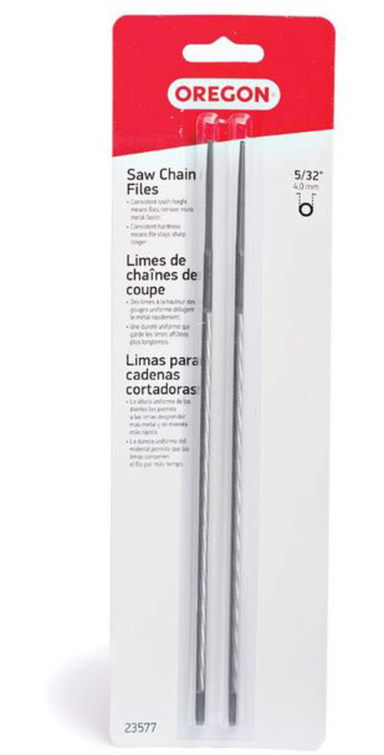 Oregon® Chainsaw Sharpening File Kit includes two 5/32" (4.0 mm) diameter saw chain files