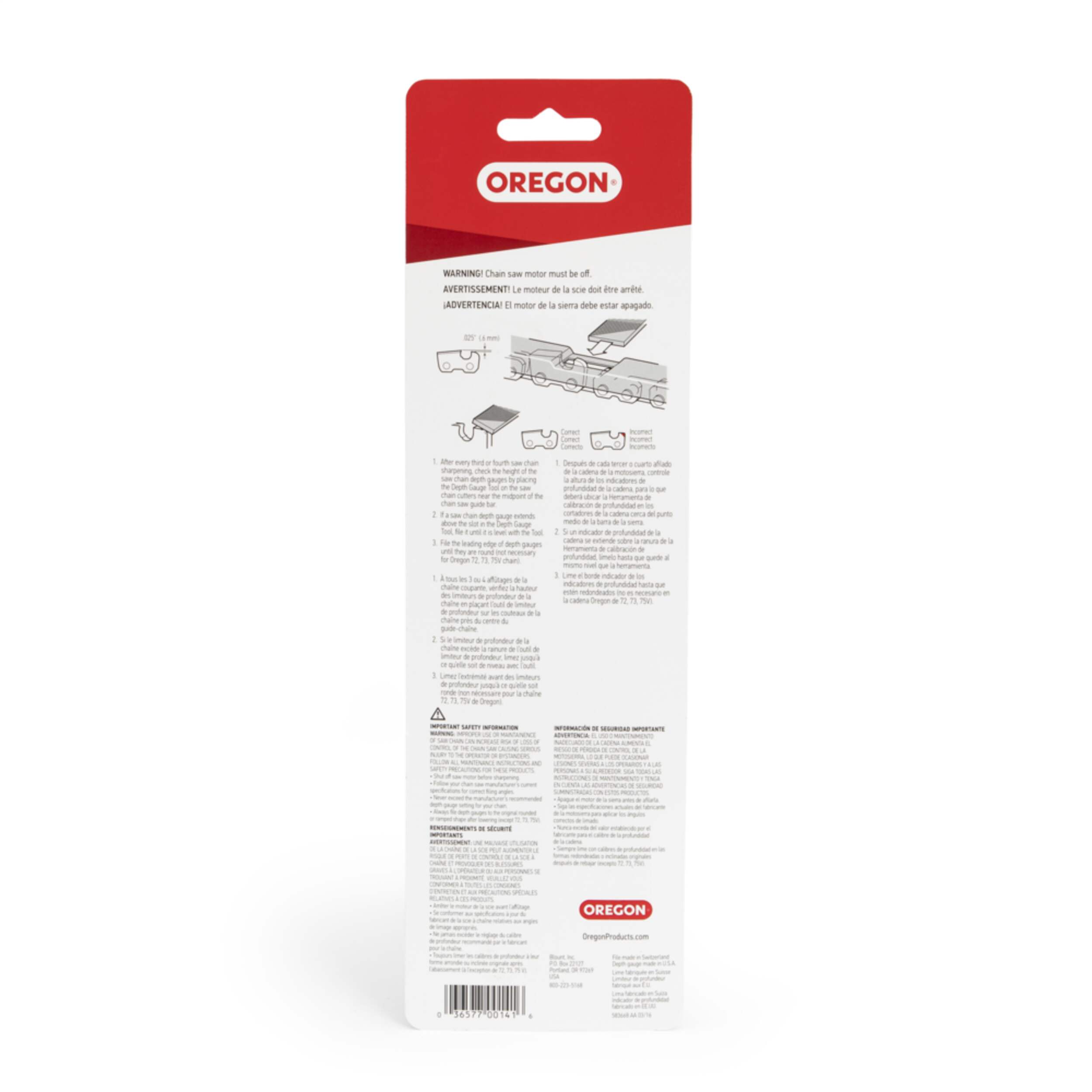Oregon .025 in Drop-Center Depth Gauge Tool and Flat File for Saw Chain. Depth gauge setting being a major factor affecting any saw chain's level of safety and performance, this depth gauge filing kit including .025" drop-center depth gauge tool and flat file helps the setting easily.
