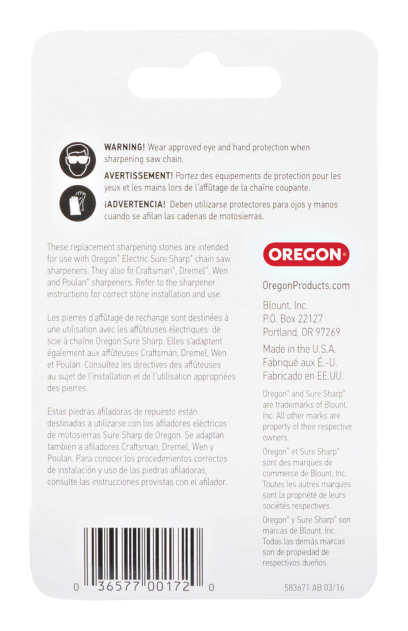 Oregon 5/32 in. Sharpening Stones for Suresharp Handled Grinder. Includes 3 Stones for sharpening 3/8 in. Low Profile and 1/4 in. saw chain. Used with Oregon Electric Sure Sharp handheld grinder to easily sharpen your saw chain.