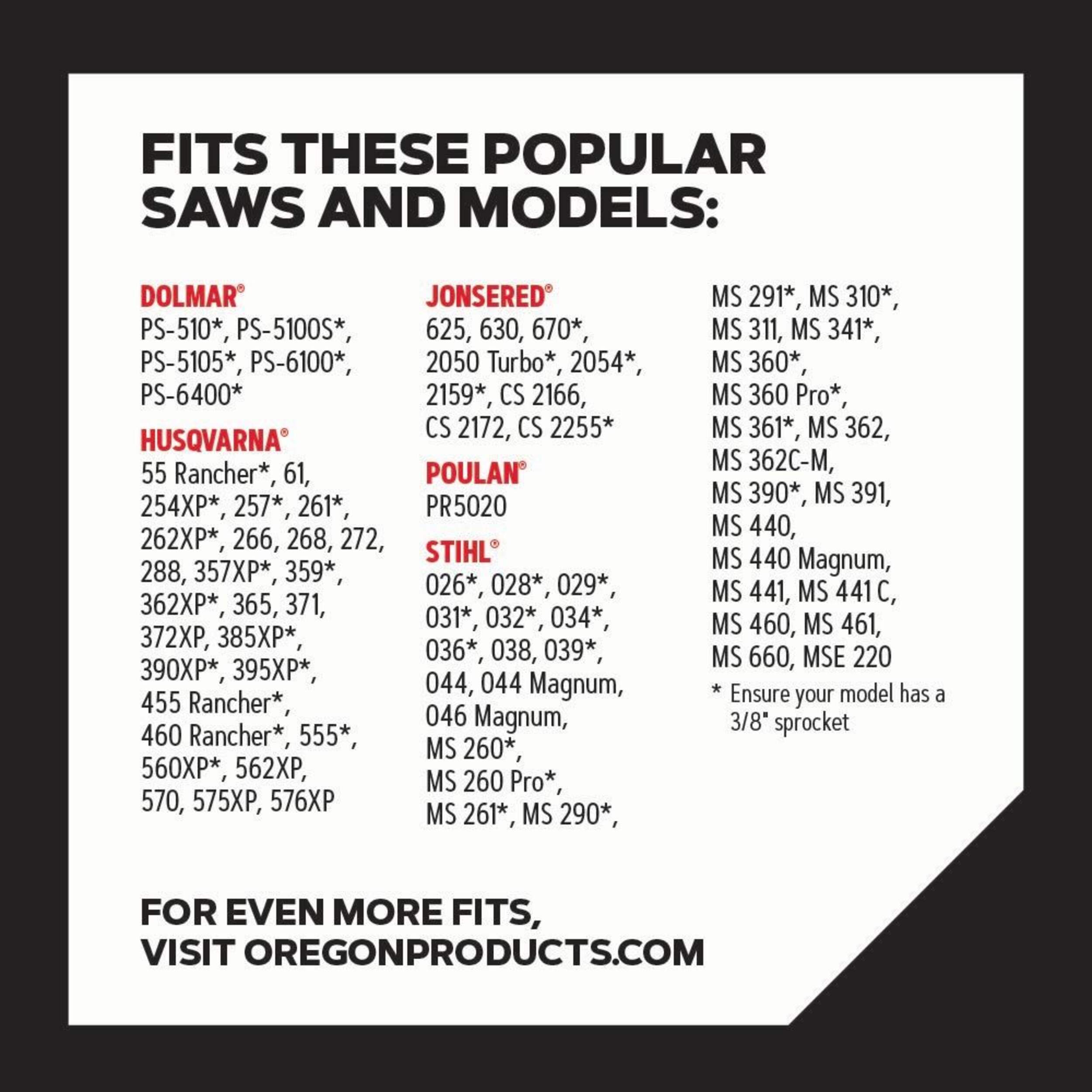 | Fitment Brand-Models | Craftsman|316.35084, Craftsman|358.38180, Craftsman|316.35085, Craftsman|316.35022, Husqvarna|133, Husqvarna|57, Husqvarna|555, Husqvarna|550XP MARK II, Husqvarna|550XPG, Husqvarna|550XP, Husqvarna|55 RANCHER, Husqvarna|55, Husqvarna|545 MARK II, Husqvarna|545, Husqvarna|543XPG, Husqvarna|543XP, Husqvarna|51, Husqvarna|50, Husqvarna|140S, Husqvarna|49, Husqvarna|460, Husqvarna|455 RANCHER, Husqvarna|450E, Husqvarna|450, Husqvarna|45, Husqvarna|154, Husqvarna|445E, Husqvarna|445, Husqvarna|444, Husqvarna|440E, Husqvarna|440, Husqvarna|44, Husqvarna|435E, Husqvarna|38, Husqvarna|435, Husqvarna|234, Husqvarna|42, Husqvarna|40, Husqvarna|362 XP, Husqvarna|360, Husqvarna|359, Husqvarna|359E-TECH, Husqvarna|357XPG, Husqvarna|235, Husqvarna|357XP, Husqvarna|353G E-TECH, Husqvarna|353E-TECH, Husqvarna|353, Husqvarna|350, Husqvarna|235E, Husqvarna|351, Husqvarna|346XPG, Husqvarna|346XP, Husqvarna|346, Husqvarna|345, Husqvarna|340, Husqvarna|339XP, Husqvarna|338XPT, Husqvarna|238, Husqvarna|336, Husqvarna|33, Husqvarna|262, Husqvarna|261, Husqvarna|257, Husqvarna|254, Husqvarna|246, Husqvarna|240, Husqvarna|242XP, Husqvarna|242, Husqvarna|240E, Makita|DCS3500, Troy-Bilt|TB5020, Troy-Bilt|TB4920, Troy-Bilt|TB5018, McCulloch|CS 450, Troy-Bilt|TB4620, McCulloch|CS 410, Makita|EA5600F, Makita|EA4300F40B, Makita|DCS431, Makita|DCS4301, Makita|DCS4300, Makita|DCS430, Makita|DCS3501 |