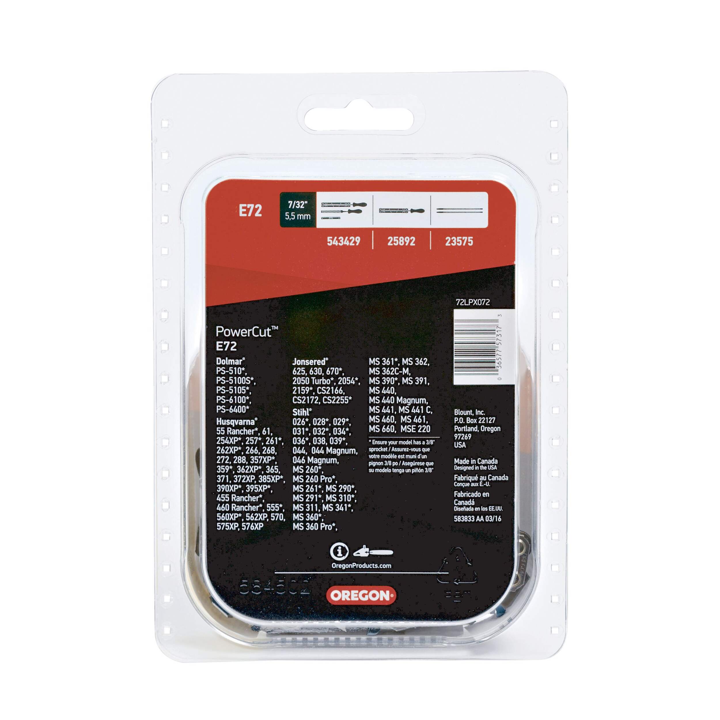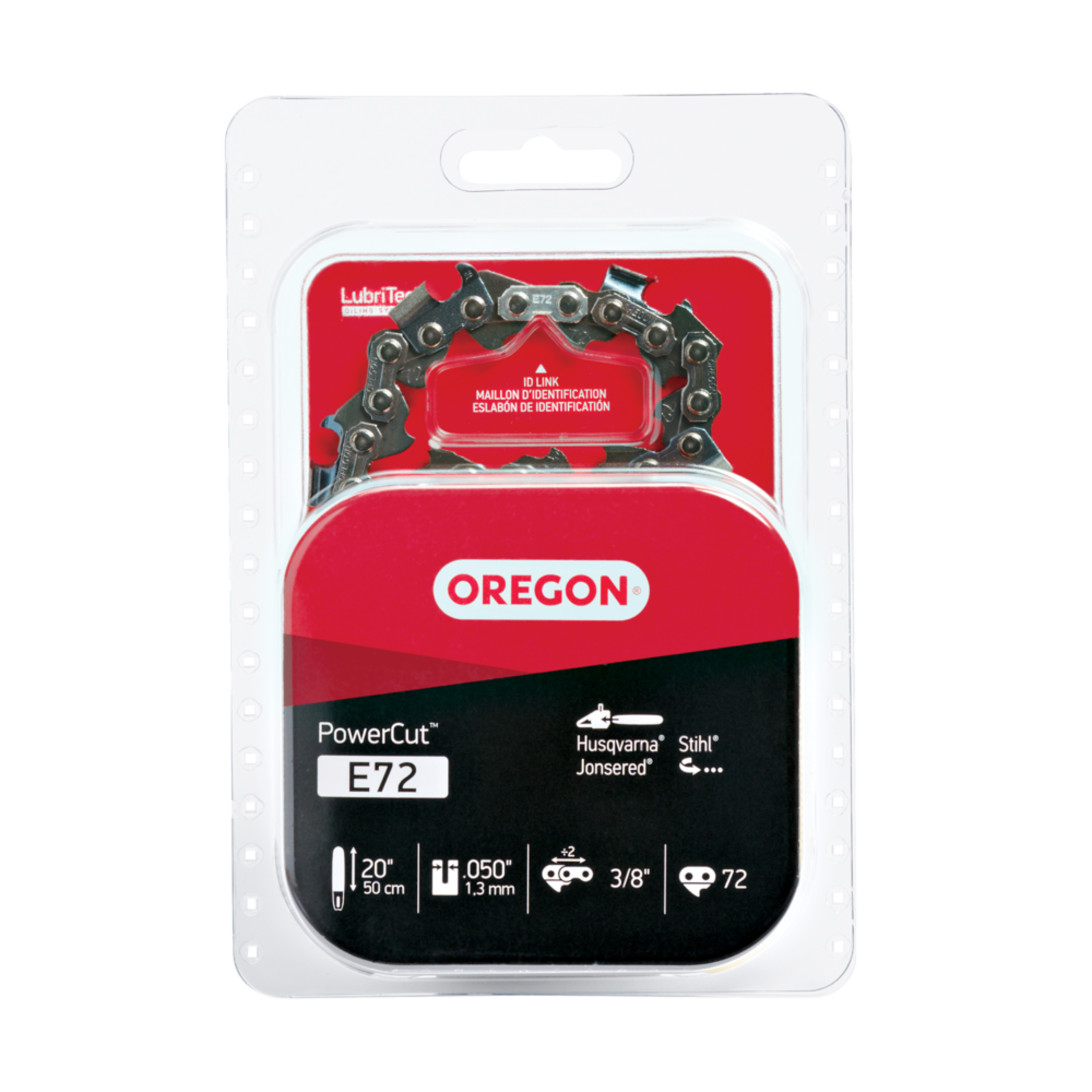 The Oregon E72 PowerCut™ Saw Chain is built for professional and occasional woodcutters who demand high performance and durability. Designed with low-vibration, full chisel cutters, this chain delivers exceptional cutting power and speed, making it ideal for tough jobs. The advanced LubriTec™ system ensures optimal lubrication for reduced friction and extended chain and guide bar life. Perfect for professionals and DIYers who need precision and reliability on every cut.