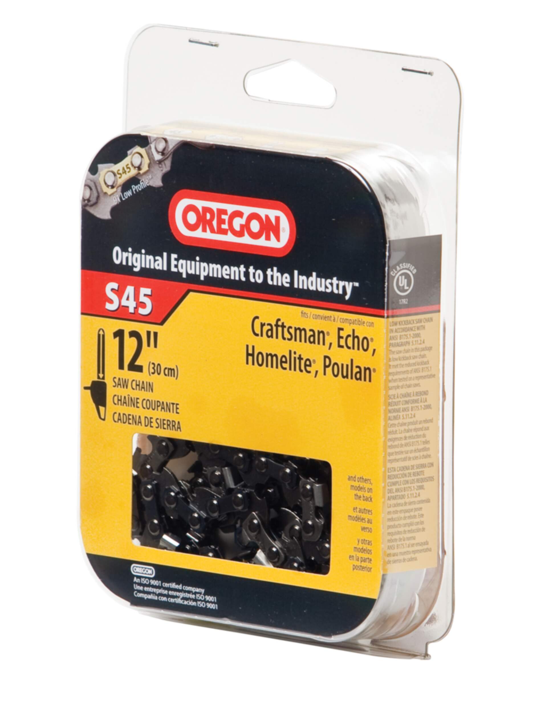 • Oregon® 12" (30.4 cm) Cutting Chain provides smooth cutting