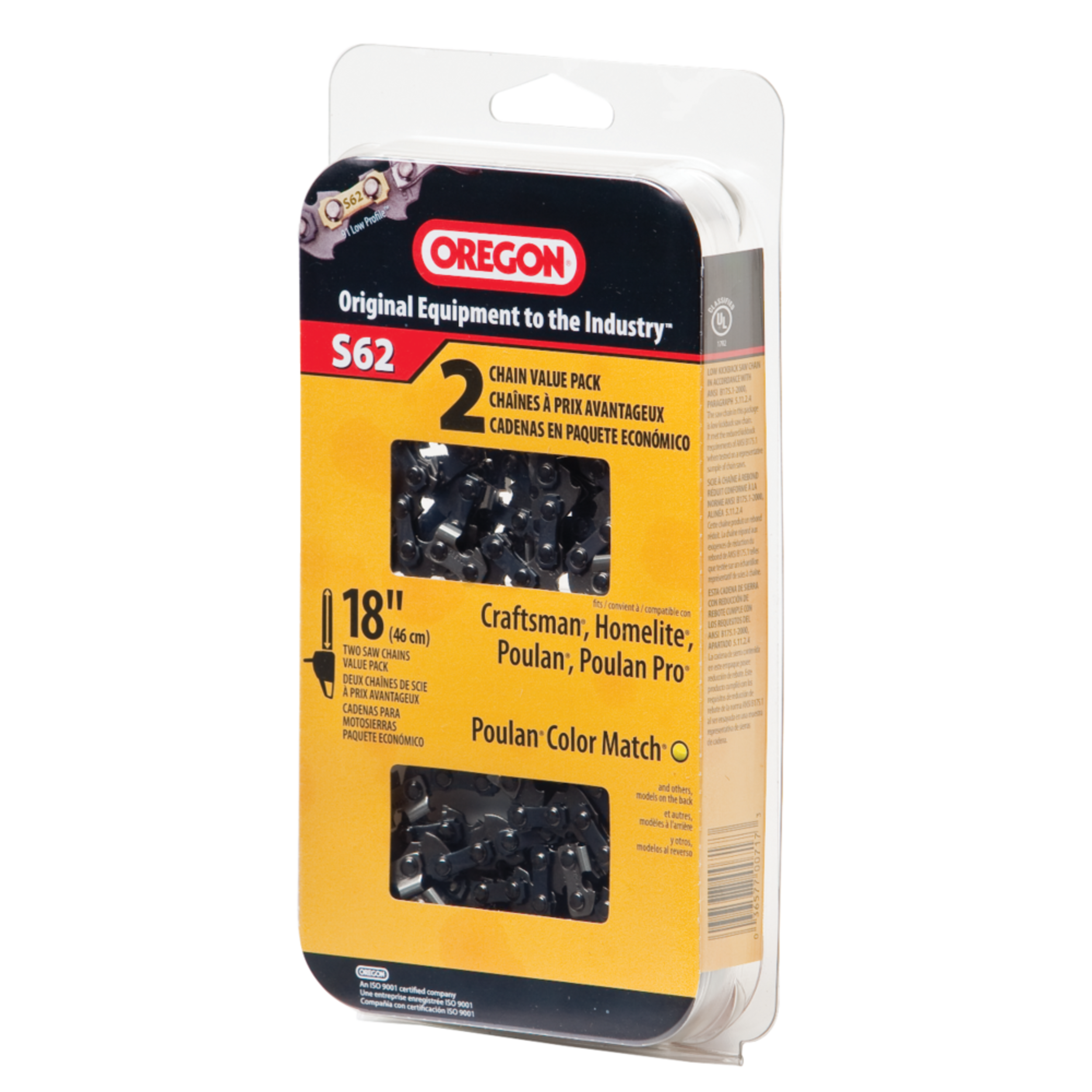 The Oregon S62 AdvanceCut Replacement Chainsaw Chain is a reliable choice for your chainsaw needs. This 2-pack features 3/8-in pitch chains that deliver smooth, low-vibration cuts with reduced kickback. Perfect for tackling tough jobs, these chains are built for durability and easy maintenance. Ideal for professionals and occasional users, the Oregon S62 ensures consistent, efficient cutting with each use.