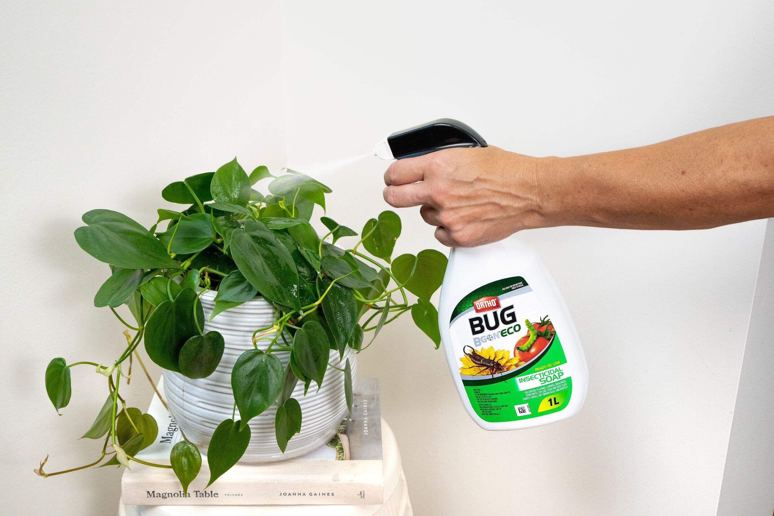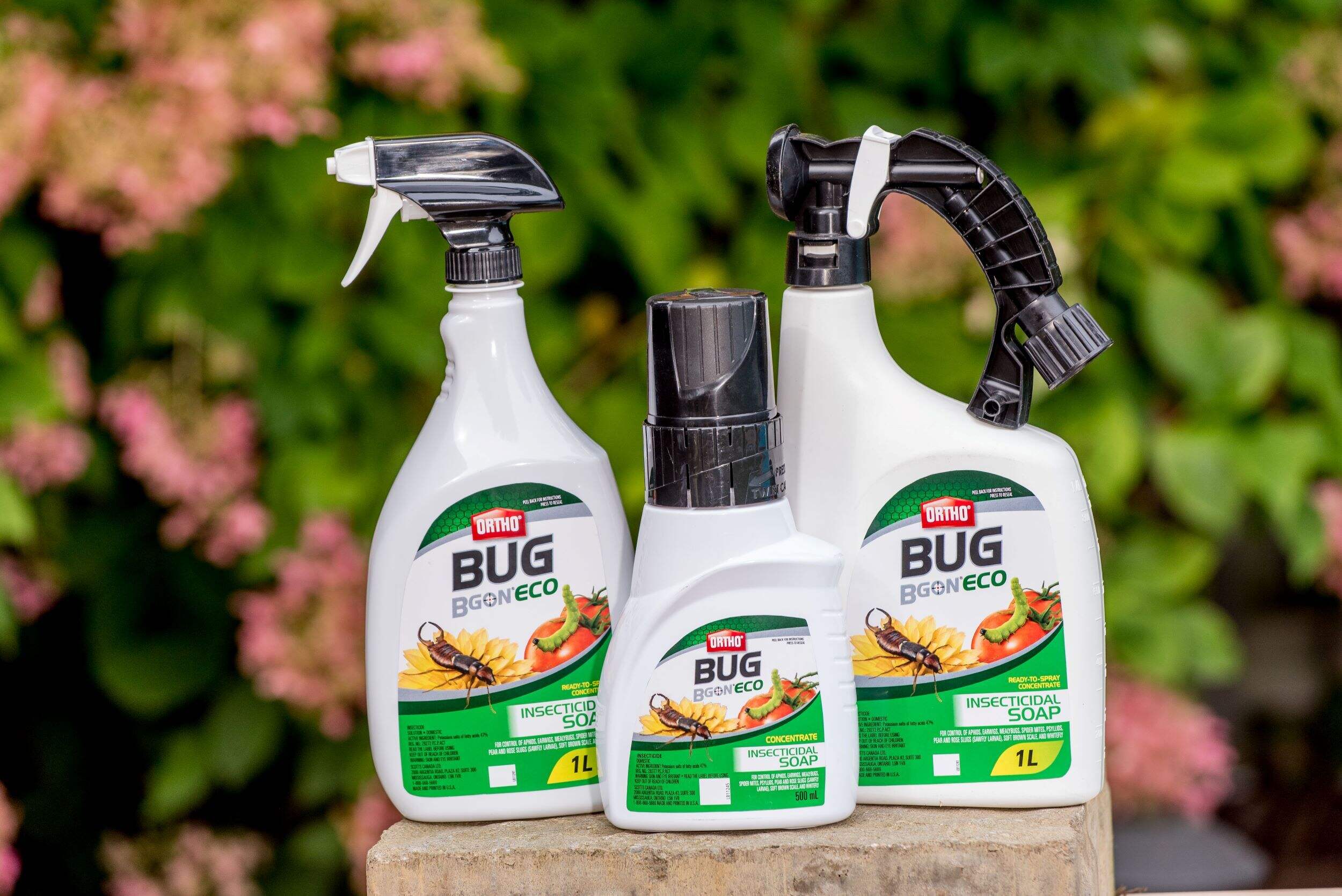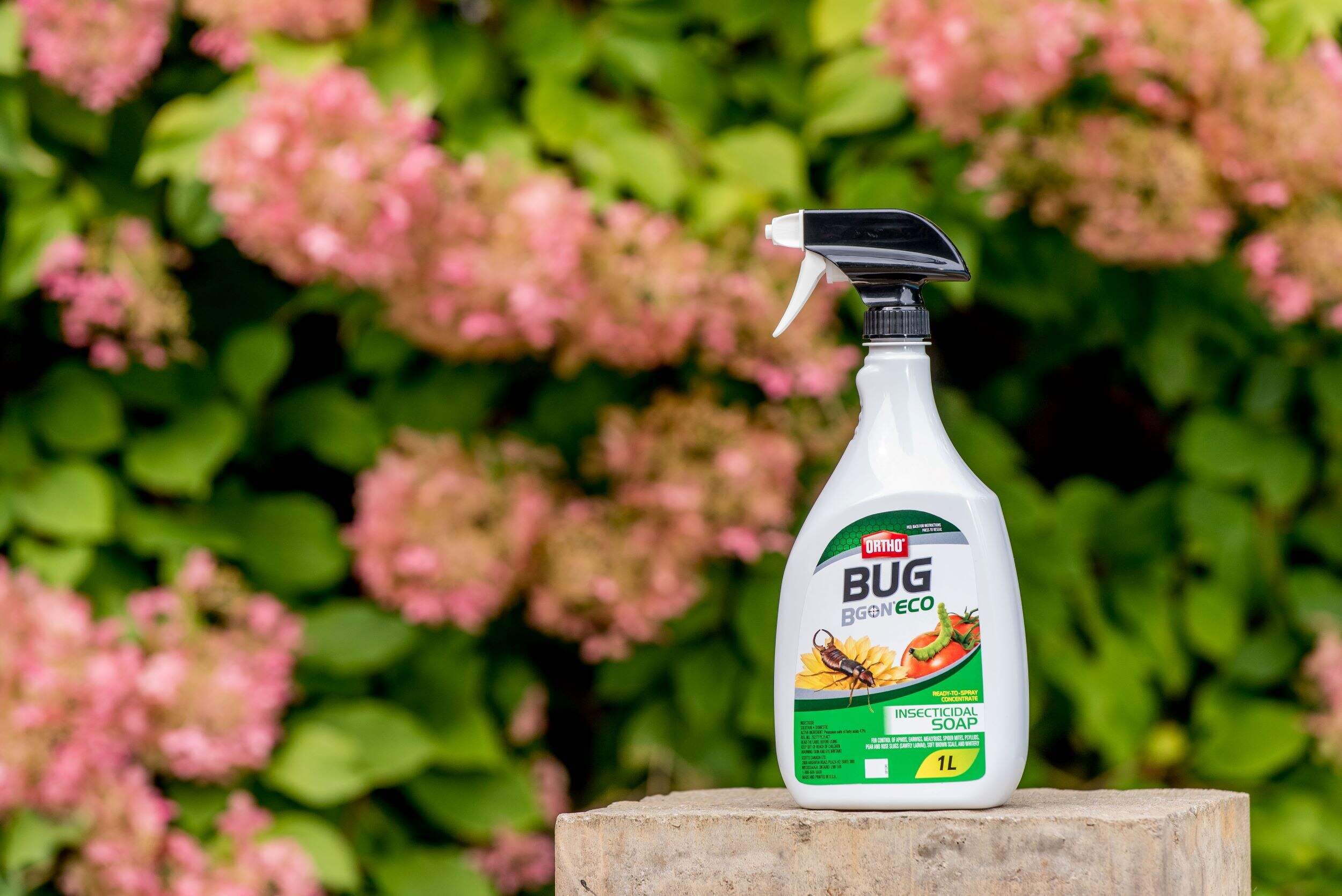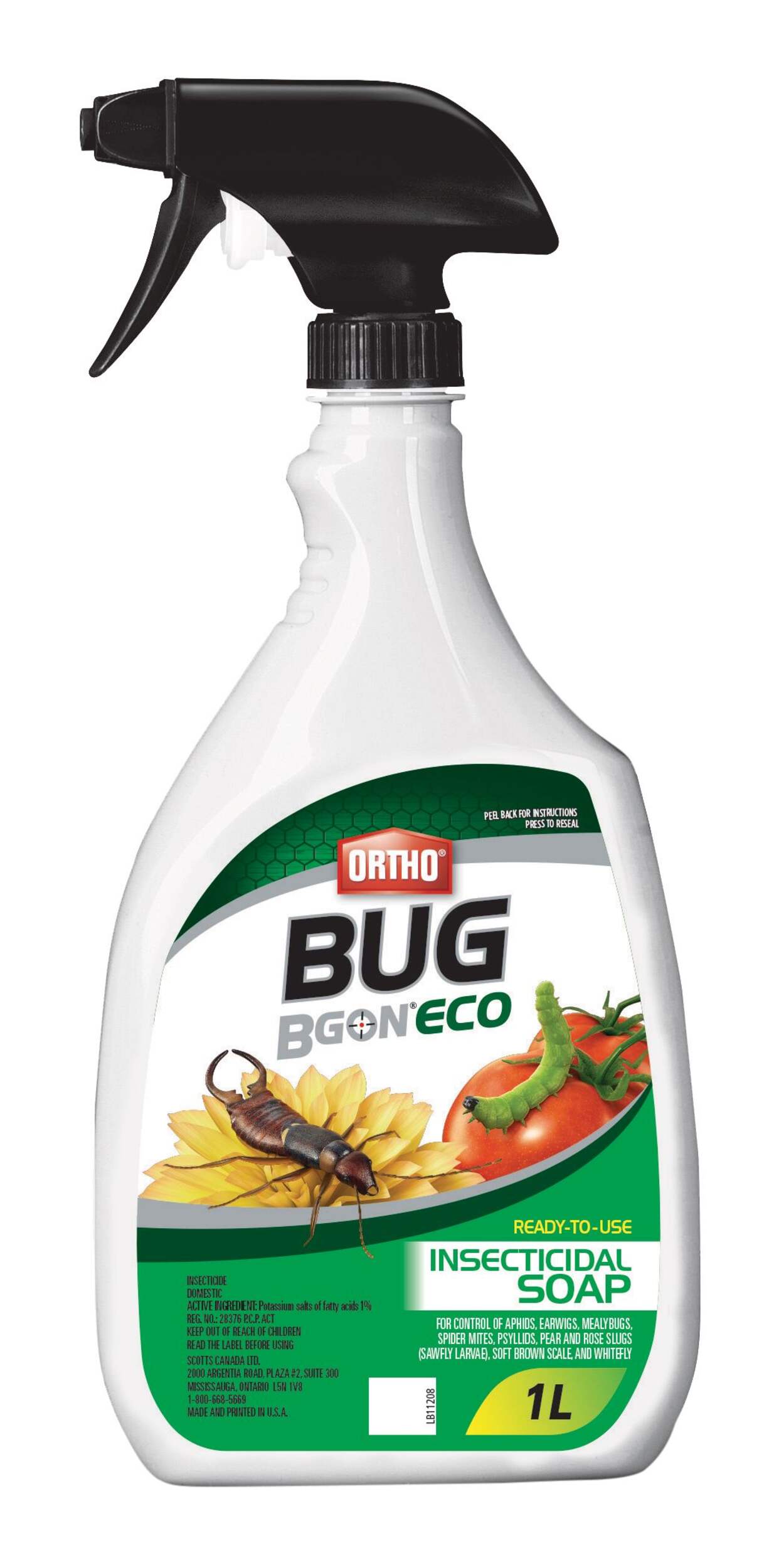 Ortho® Bug B Gon™ ECO Indoor/Outdoor Ready-to-Use Insecticide Soap controls aphids, earwigs, mealybugs, spider mites, psyllids, pear and rose slugs, soft brown scale, and whitefly