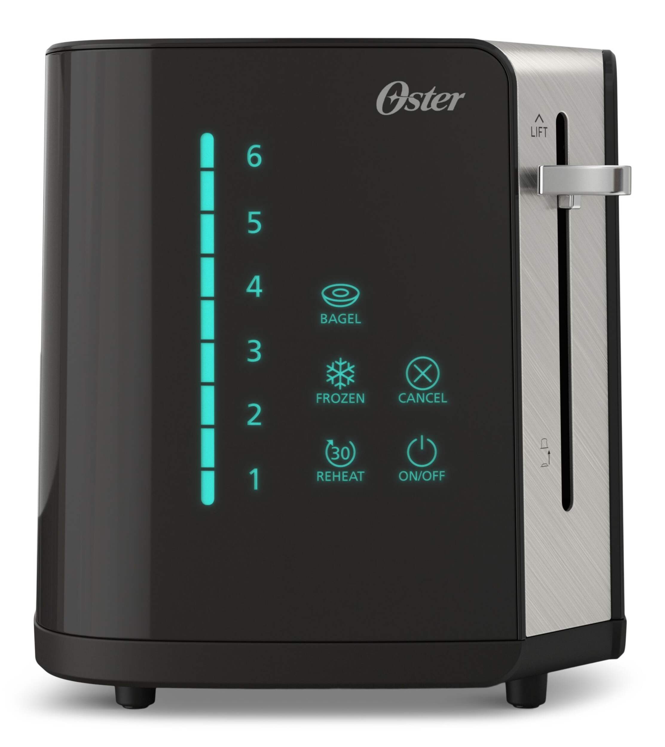 Easily toast your bread to perfection with the Oster 2-Slice Touchscreen Toaster. This toaster offers simple touch programming, 6 toast shade settings, and 3 functions to get your ideal slice of toast. It also features a digital countdown timer and a quick-check lever for monitoring, along a removable tray for easy cleaning and maintenance.