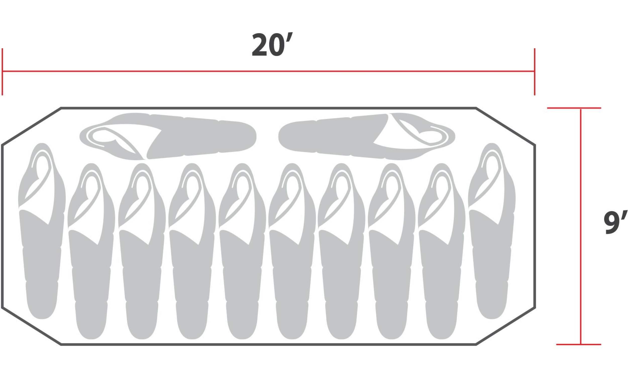 Dimensions: 20' L x 9' W x 6' 6" H (6.1 x 2.7 x 2 m)