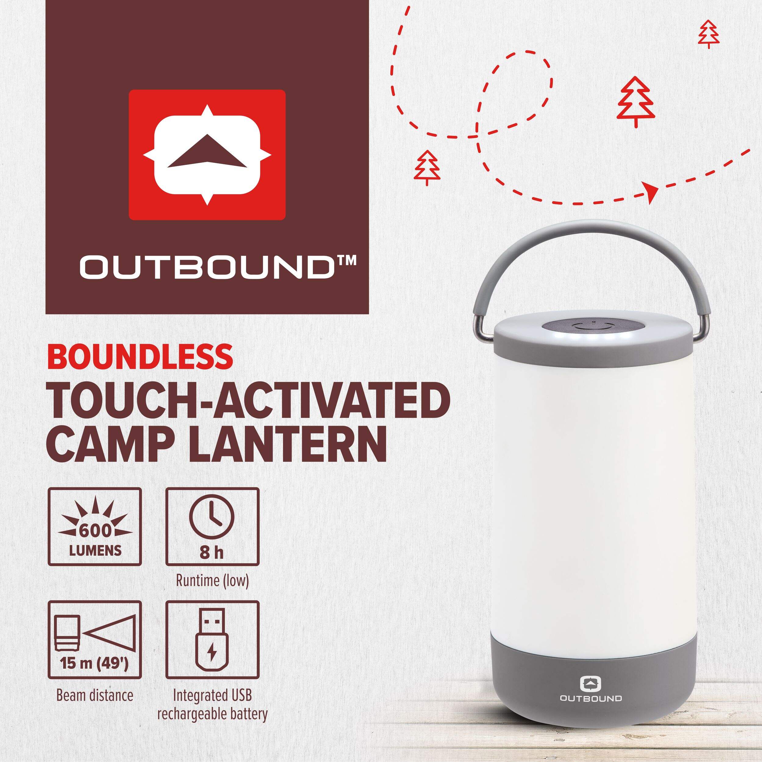 Take the power of light wherever you roam with the Outbound Rechargeable Multi-Mode Touch-Activated Rechargeable Camping Lantern. This versatile camping lantern features a compact design that makes illuminating your campsite a breeze. Thanks to this lantern's IPX5 waterproof rating, you can safely hang it almost anywhere.