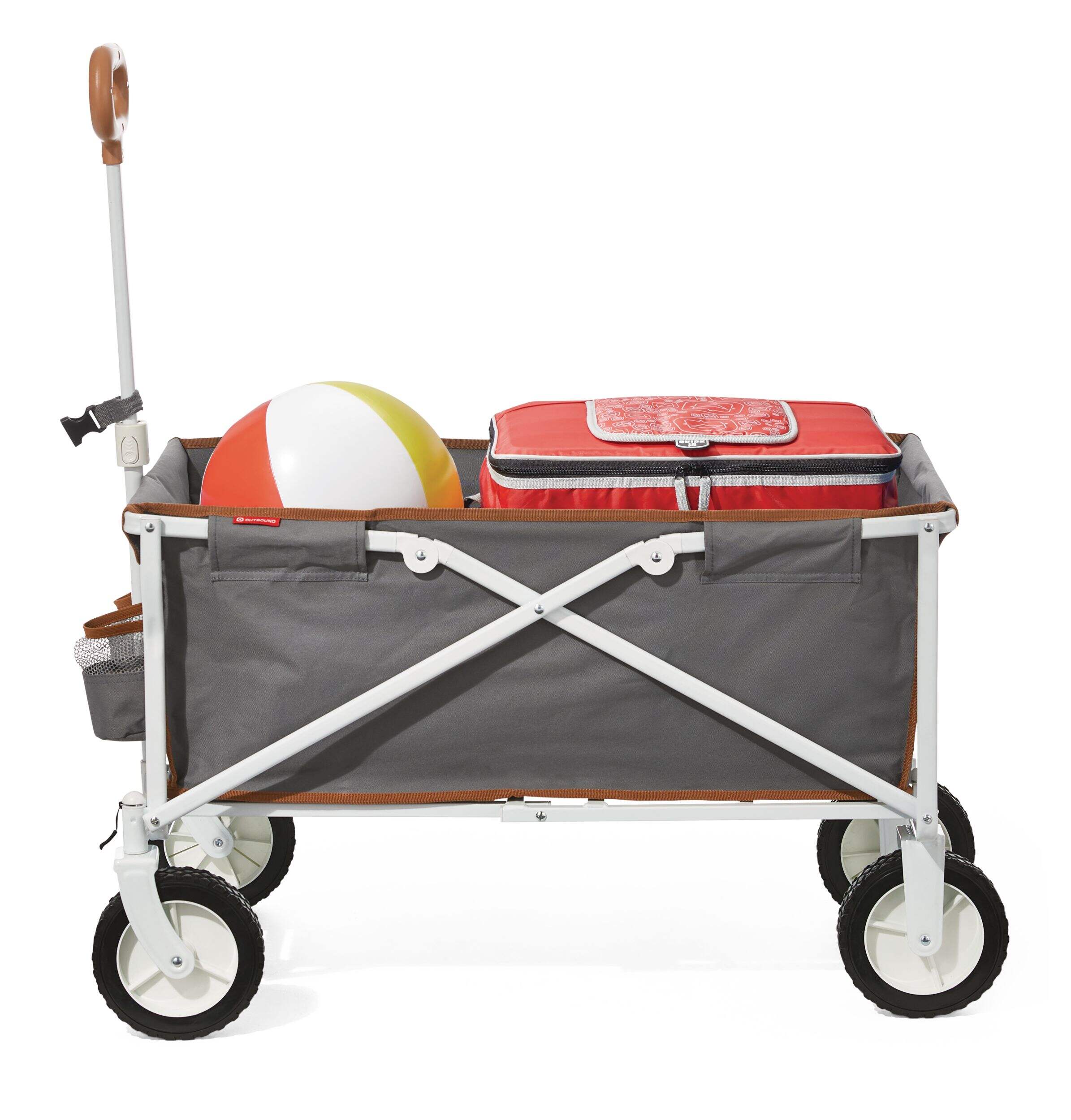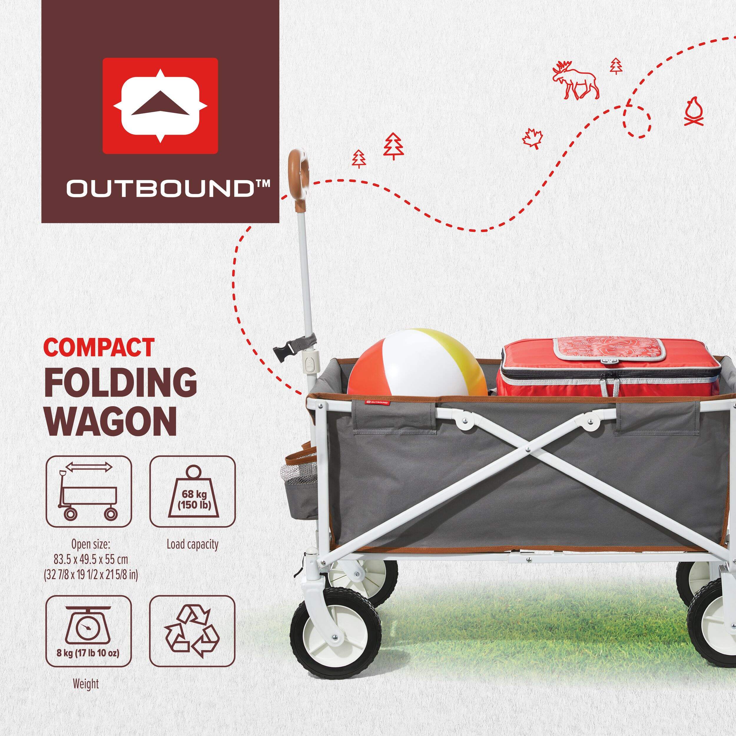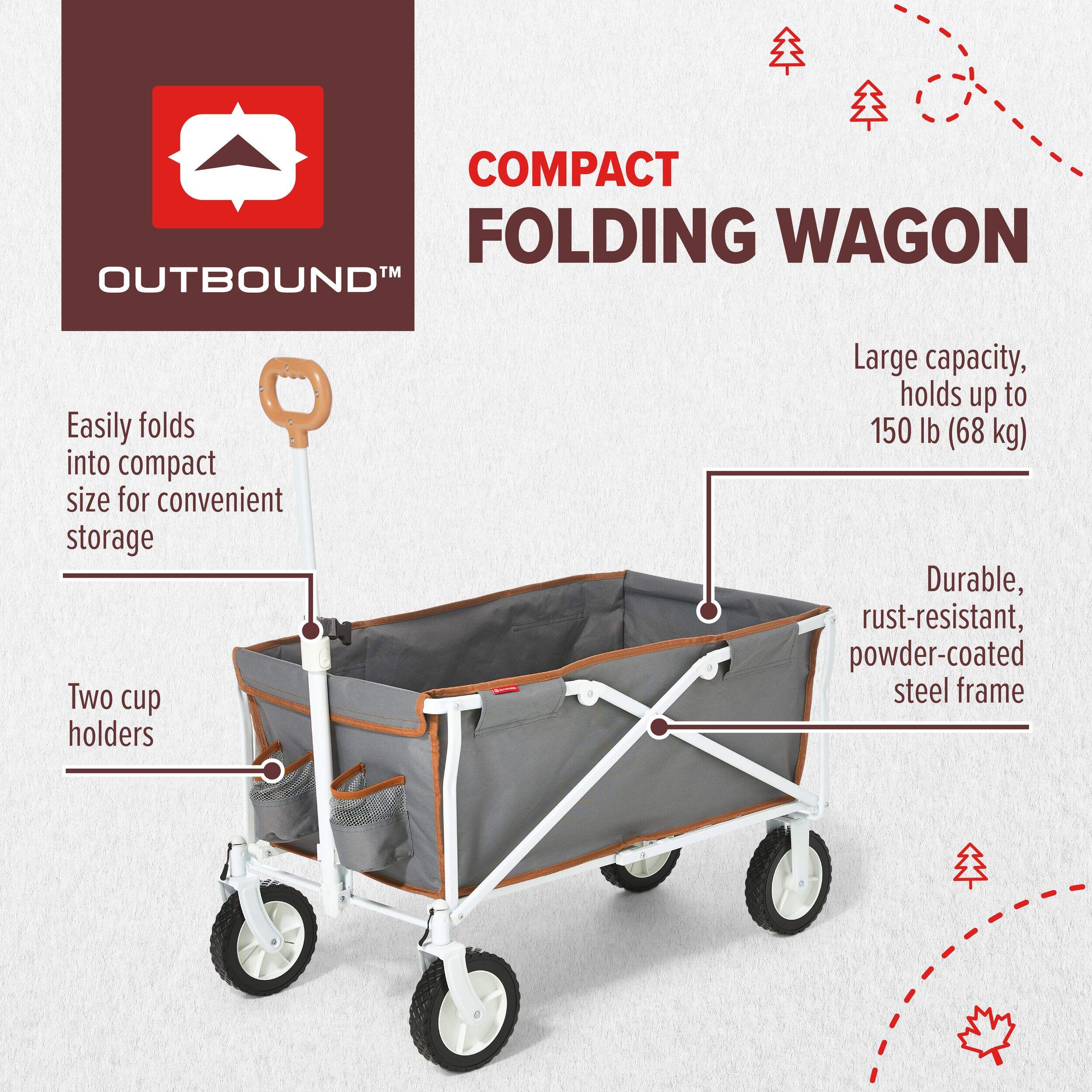 The Outbound Compact & Collapsible Folding Wagon in grey is a versatile and convenient solution for all your outdoor needs. Designed with sturdy wheels and a durable frame, it easily transports items like camping gear, groceries, or sports equipment. The collapsible design makes storage easy, while the two built-in cupholders offer added convenience on the go. This wagon provides both functionality and ease of use for your everyday adventures.