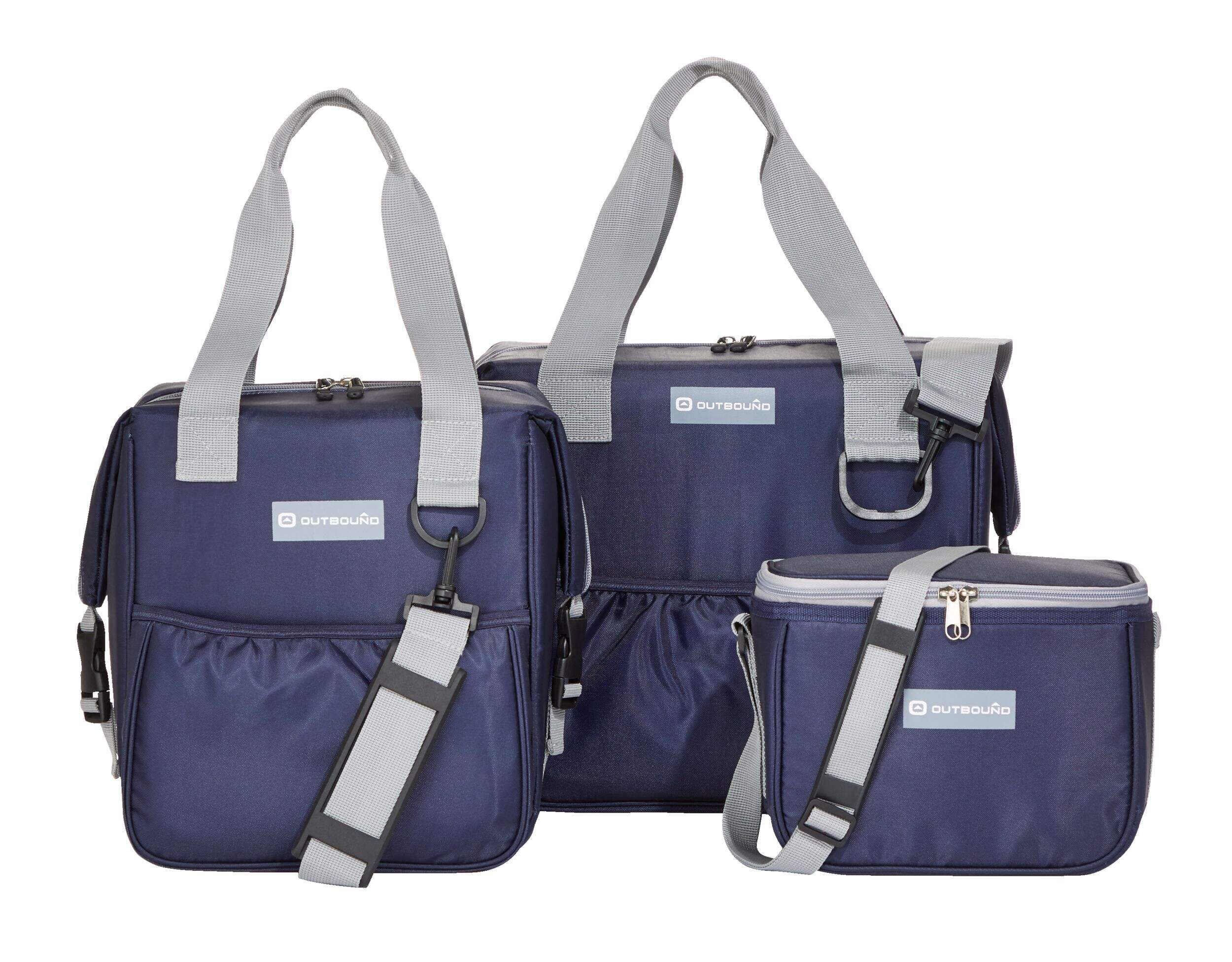 Pack all you need with this Outbound Deluxe Soft Cooler Combo Pack. This convenient 3-pack cooler includes 6, 12, and 24-can cooler bags. Ideal for beach days, picnics, BBQs, sporting events and more, these food-safe deluxe coolers are perfect for packing refreshments for on the go enjoyment. The convenient soft cooler bags have adjustable shoulder straps and a nesting design for convenient, compact storage.