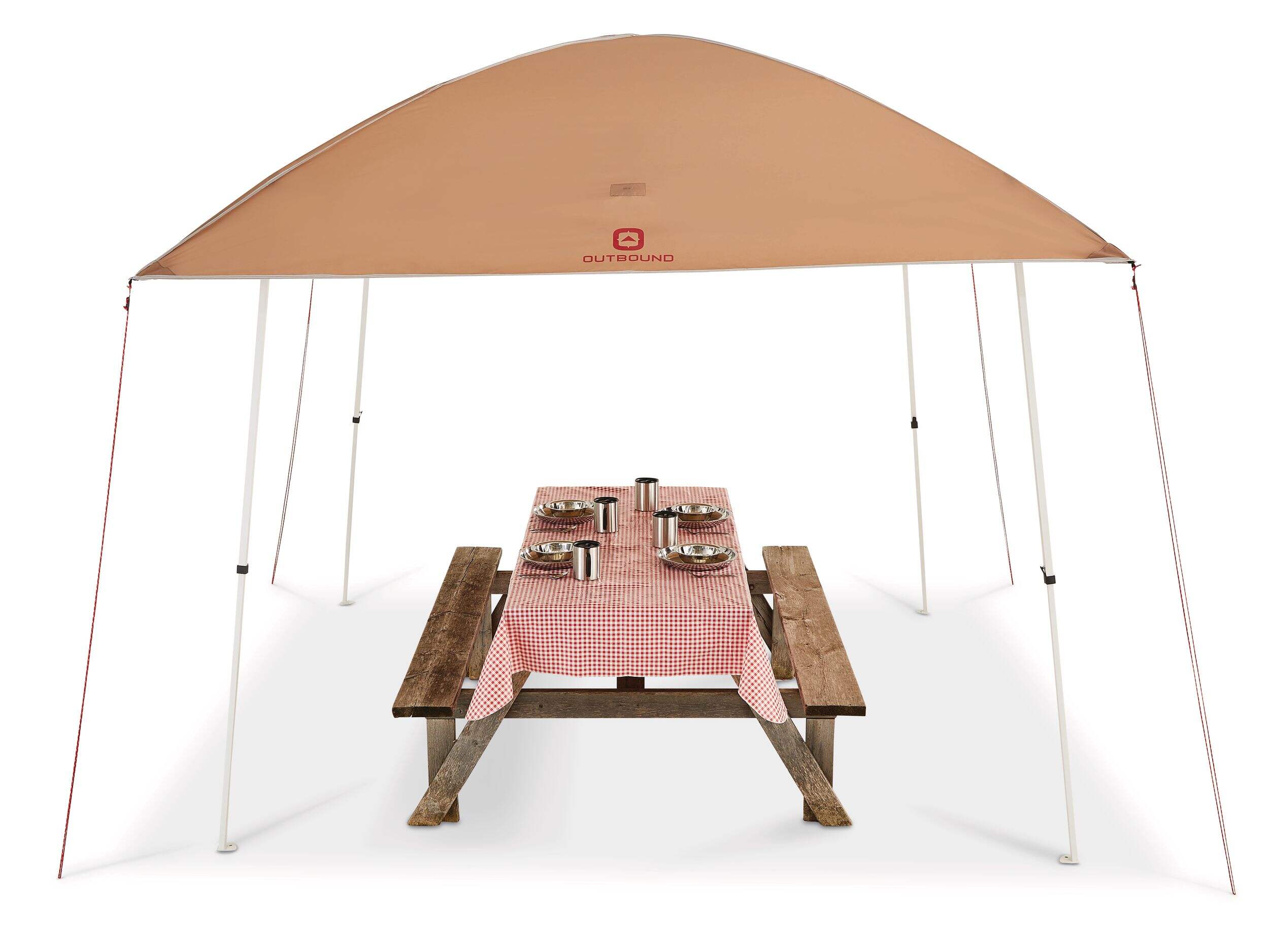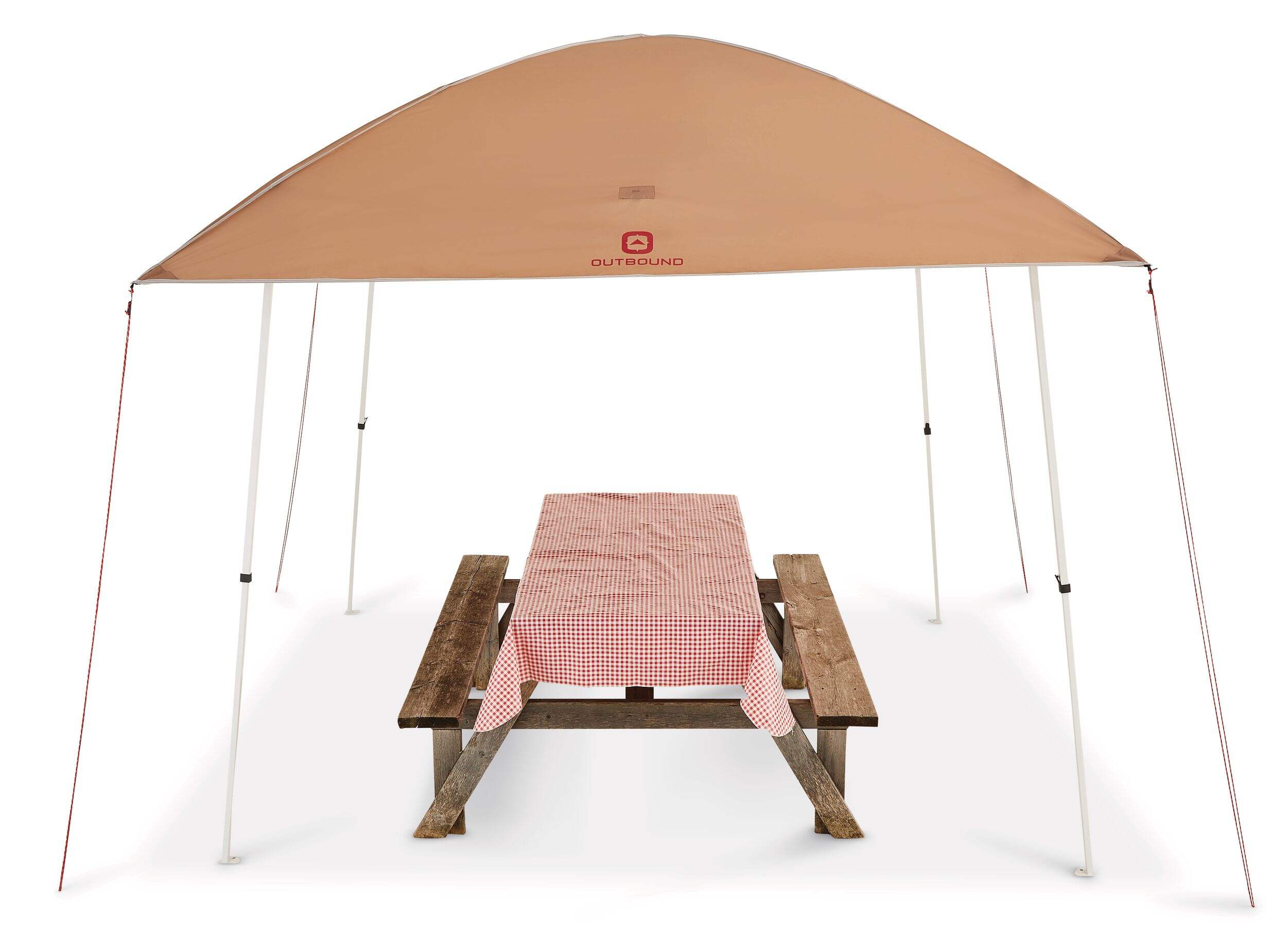The Outbound Portable Sun Shelter sets up quickly to provide sun or rain protection wherever you need it. This portable canopy provides 81 sq. ft. of shade for dining or relaxing on hot summer days. The water-resistant polyester fabric expands your outdoor seating options, rain or shine, with a sturdy steel frame that folds for convenient storage and transport. This convenient pop-up shelter comes complete with a duffle bag and accessories.