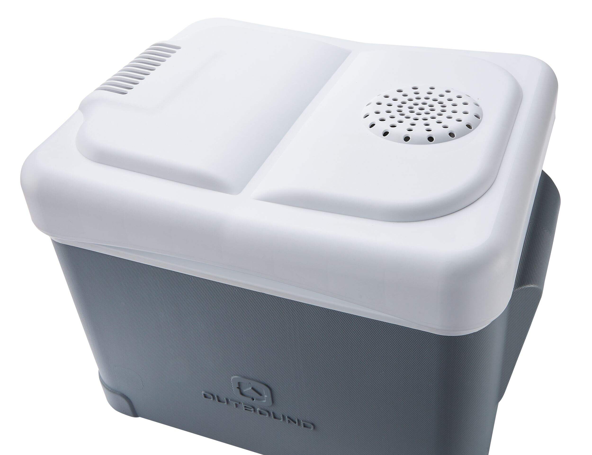 Take away the hassle of melting ice and losing valuable cooler space to ice packs with the Outbound Powered Cooler. This electric cooler provides consistent cooling power all-day long thanks to the 12V power plug, which is compatible with any 12V DC outlet, making this cooler perfect for use in cars, boats, or RV's. The cooler features a lightweight construction and an ergonomic bail handle for easy transport, while remaining incredibly durable.