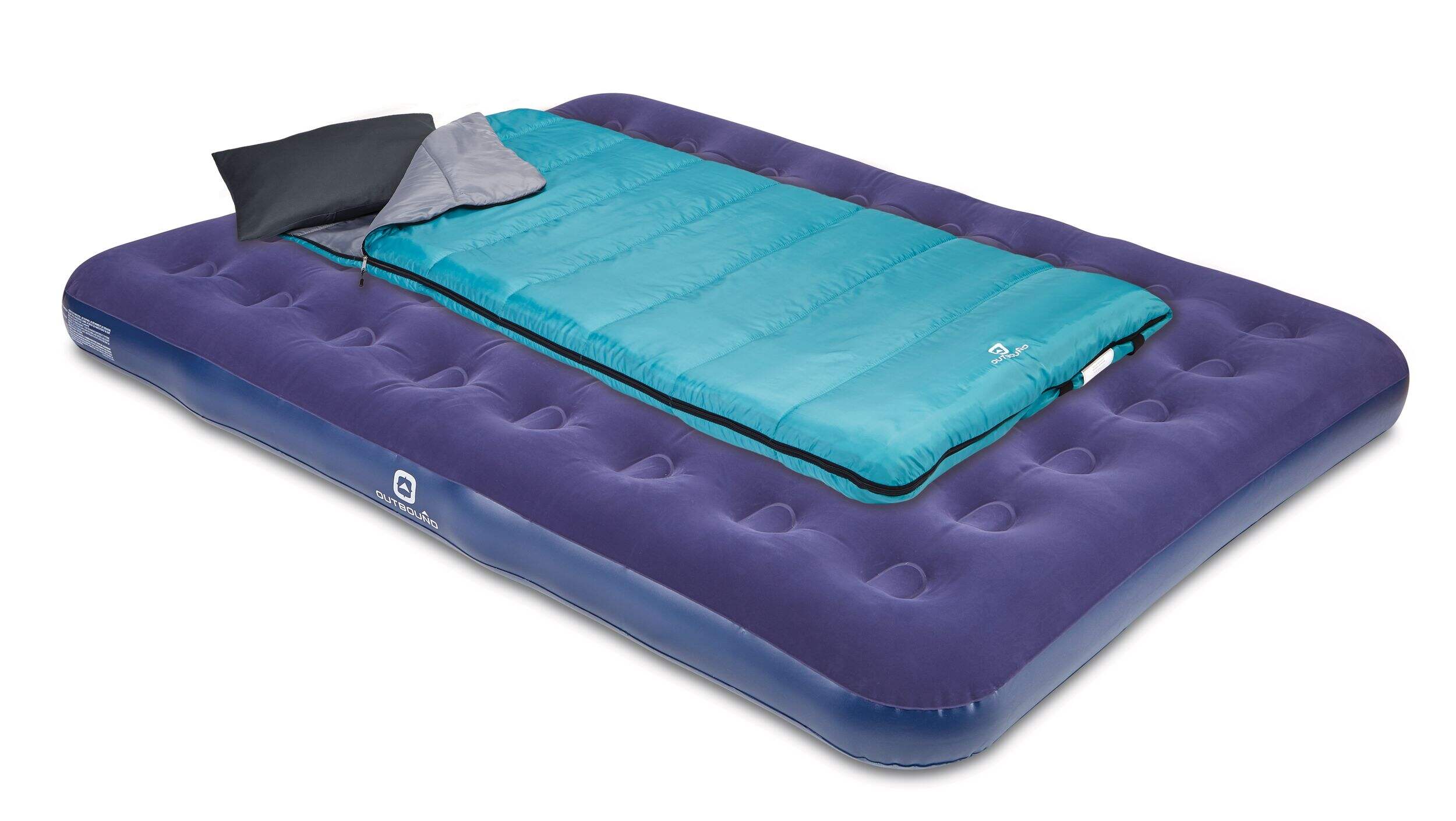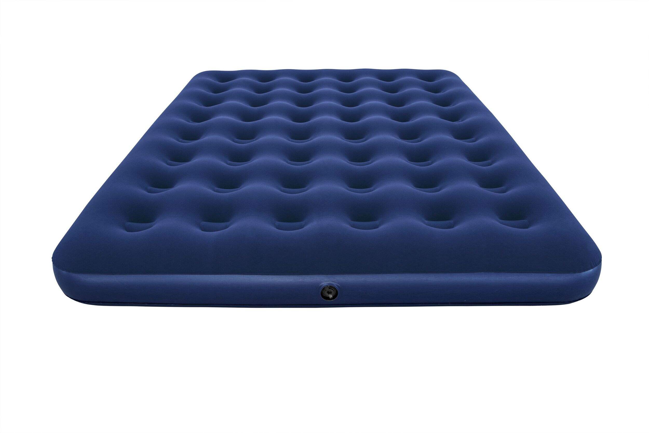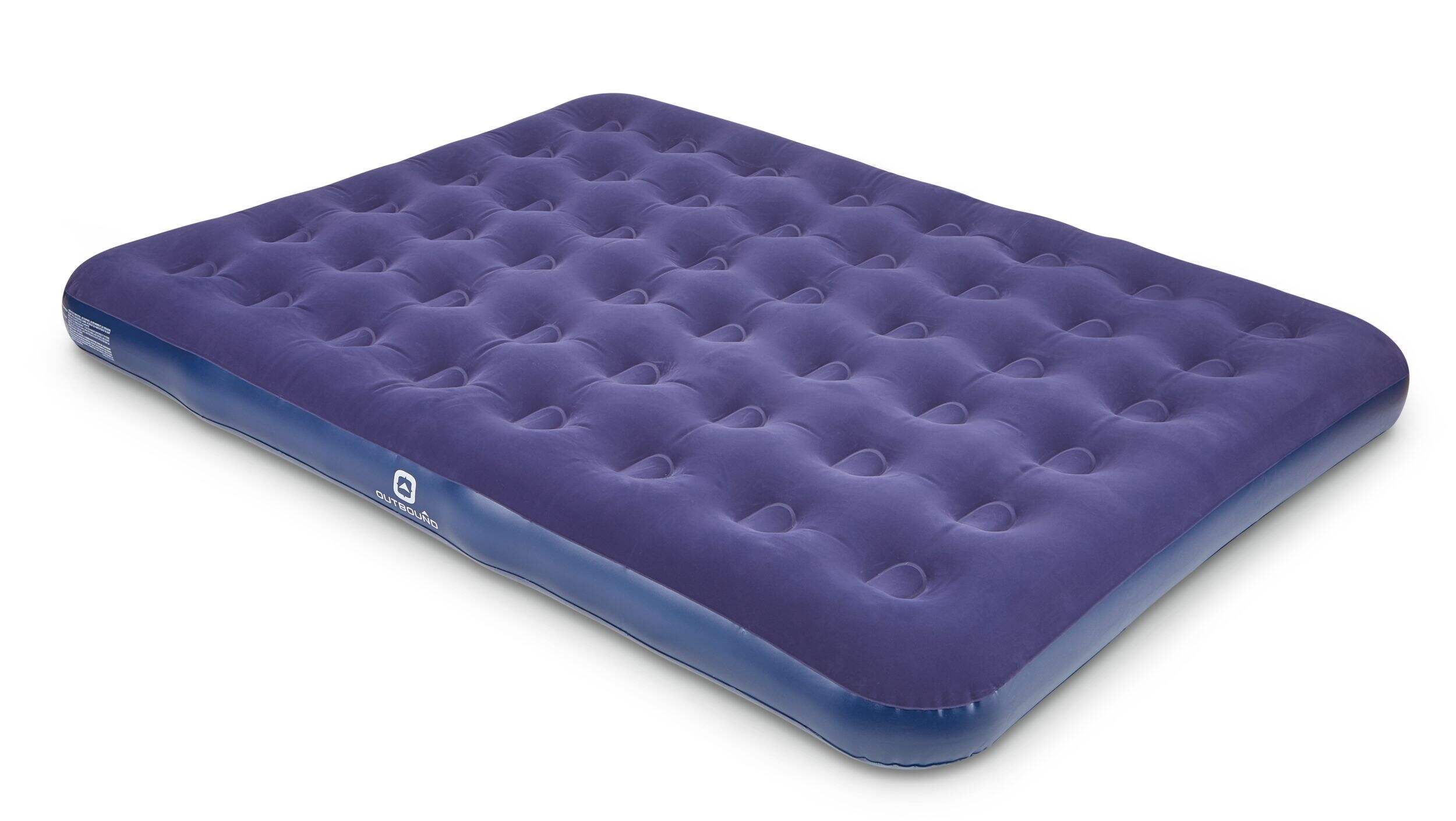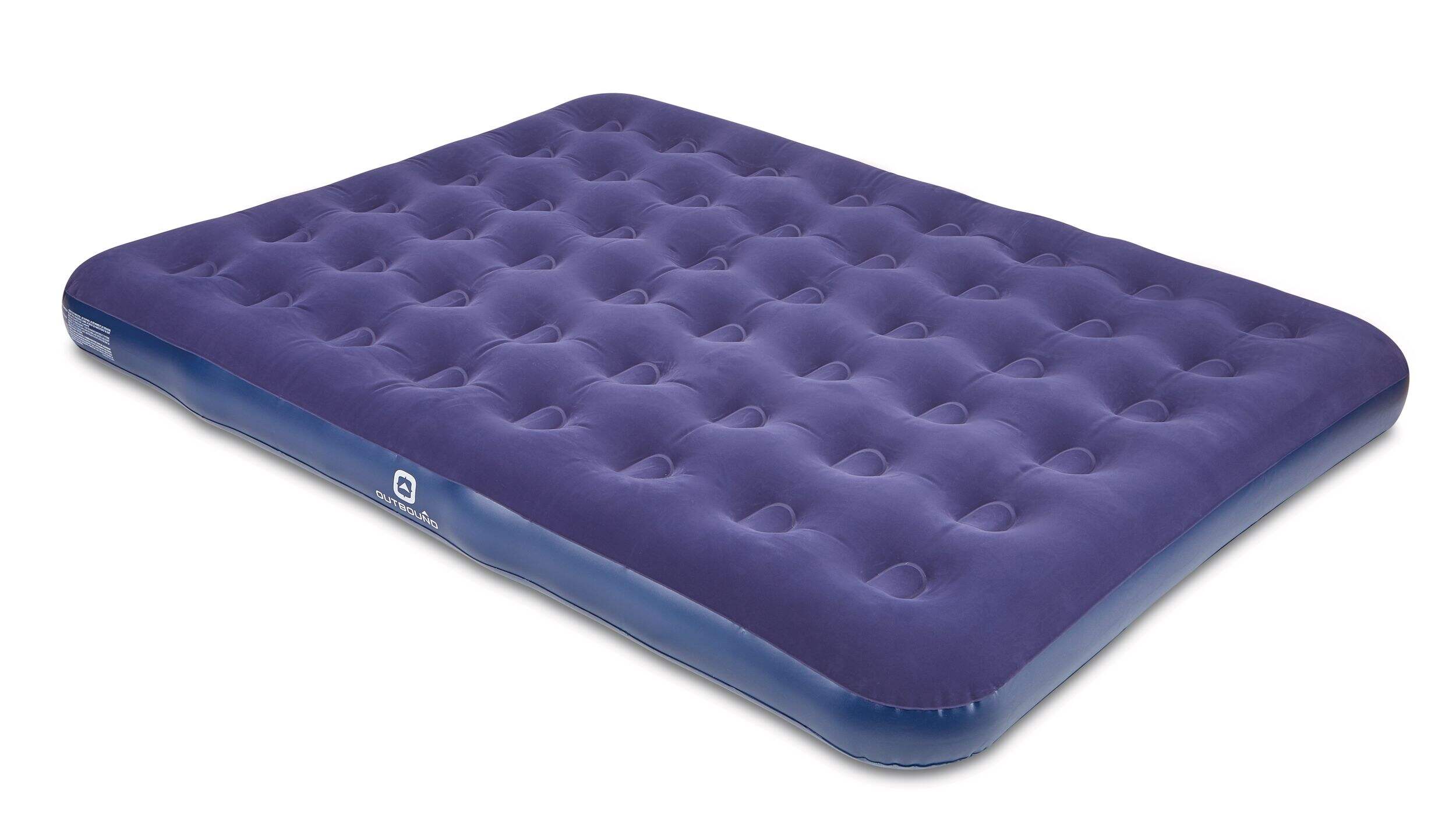 The Outbound Queen Single-High Flocked Air Bed offers comfort, stability, and support, making it ideal for camping trips, sleepovers, and more. Its durable coil beam construction ensures even weight distribution and prevents sagging. Made from water-resistant vinyl, it features a screw valve for quick inflation and deflation and easily rolls up for convenient storage. With a weight capacity of 650 lb (295 kg), it's a reliable choice for any occasion.