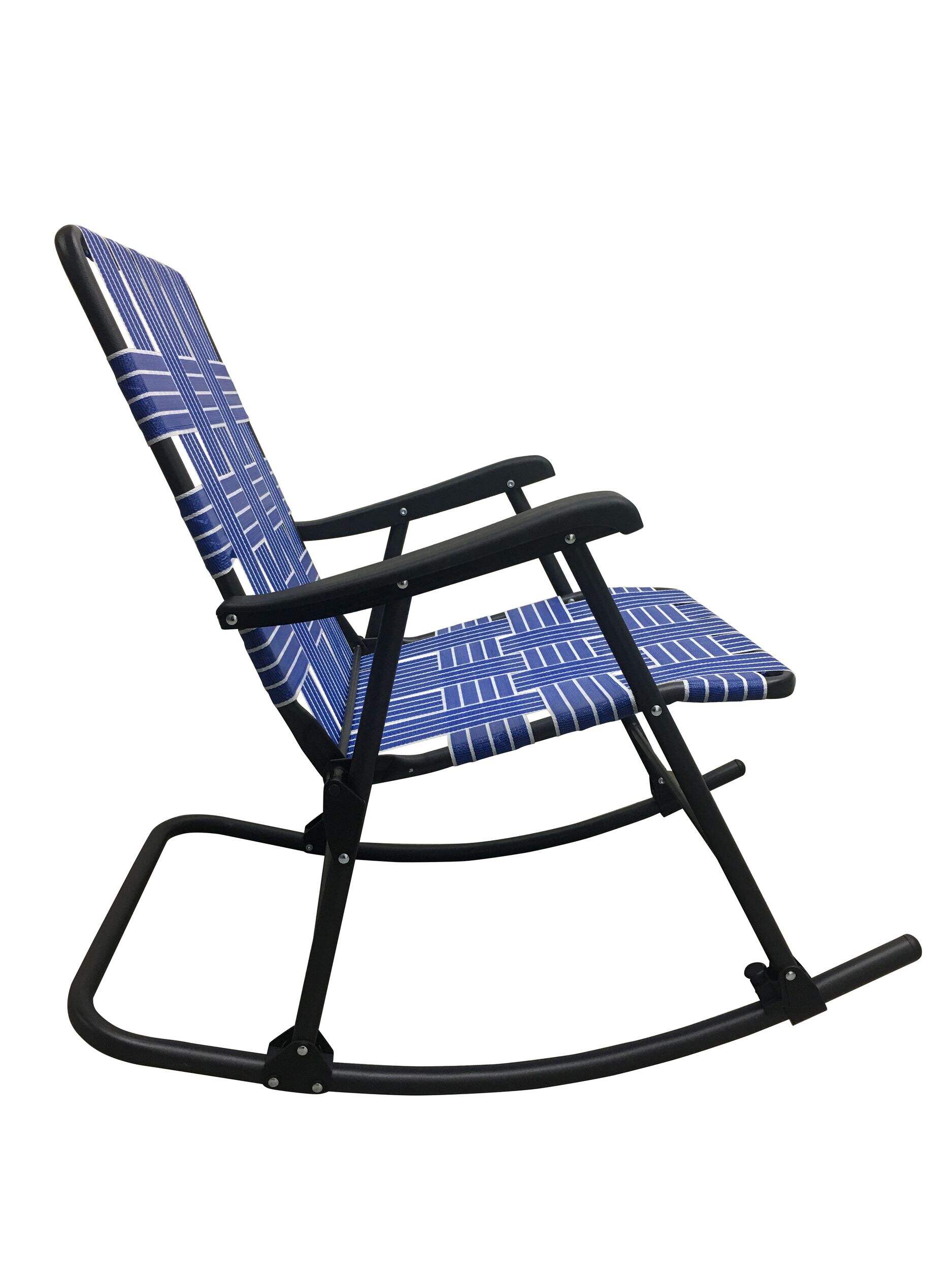 Unwind at the beach, by the lake, or wherever life takes you in the Outbound Rocking Web Chair. This outdoor chair features a classic webbed design for ultimate comfort and support, on a durable steel frame designed to hold up in adverse weather conditions without rusting or corroding. Built for convenience, this rocking chair folds flat so you can easily tuck it under your arm and carry it along, or slide it away when not in use.