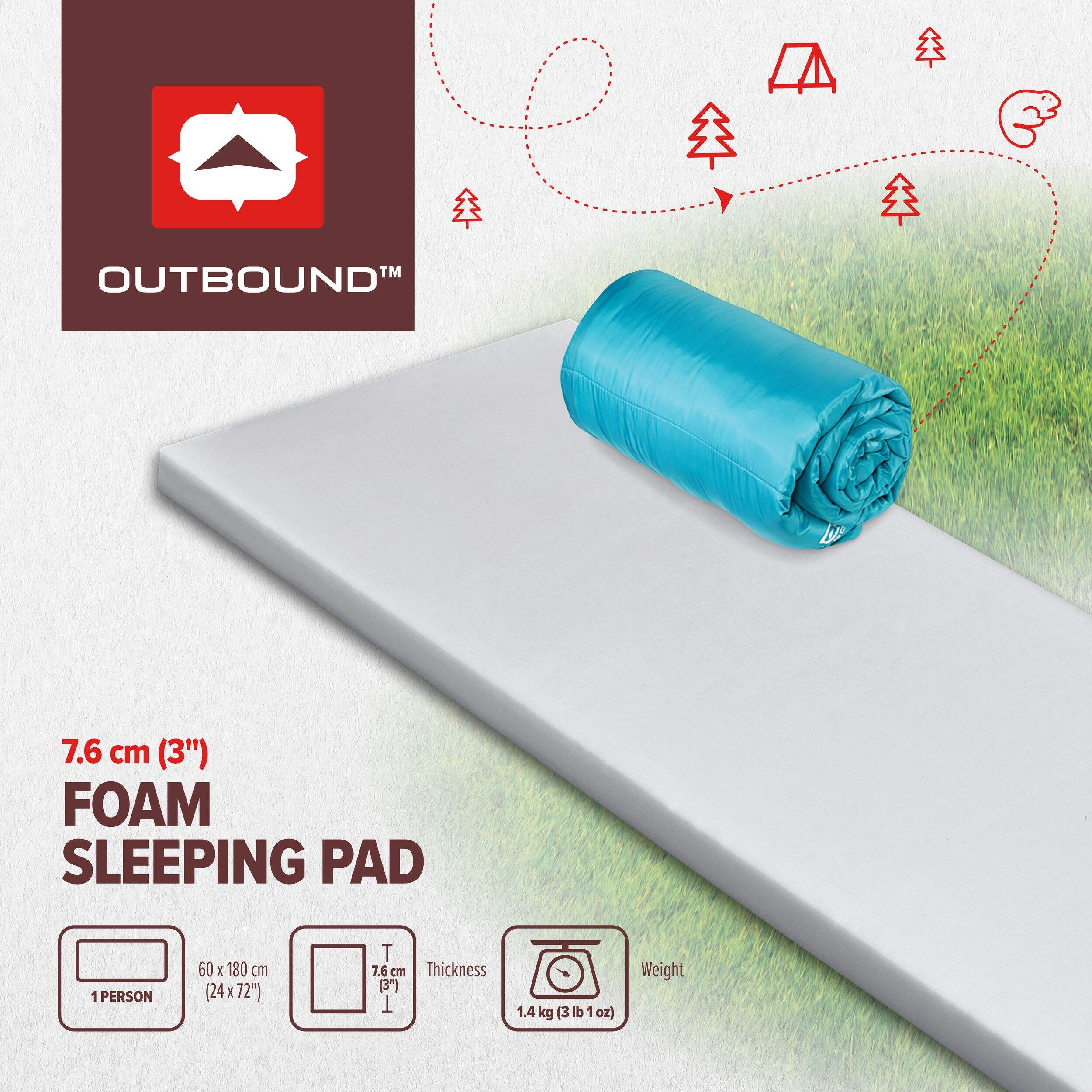Add an extra layer of comfort to your sleeping area with this versatile Outbound Single Soft Foam Pad/Mat for Camping/Sleeping. This soft and flexible single-width foam sleeping pad is ideal under a sleeping bag or on a cot for extra comfort and insulation from the ground. Suitable for use indoors or outdoors, this easy-to-clean pad is also great for using at a kids' sleepover or as a playmat during the day.