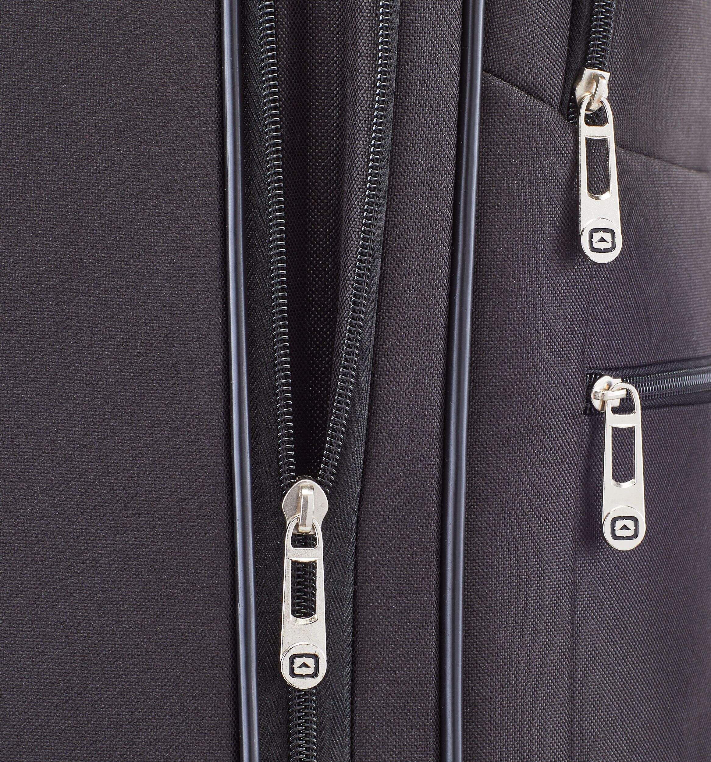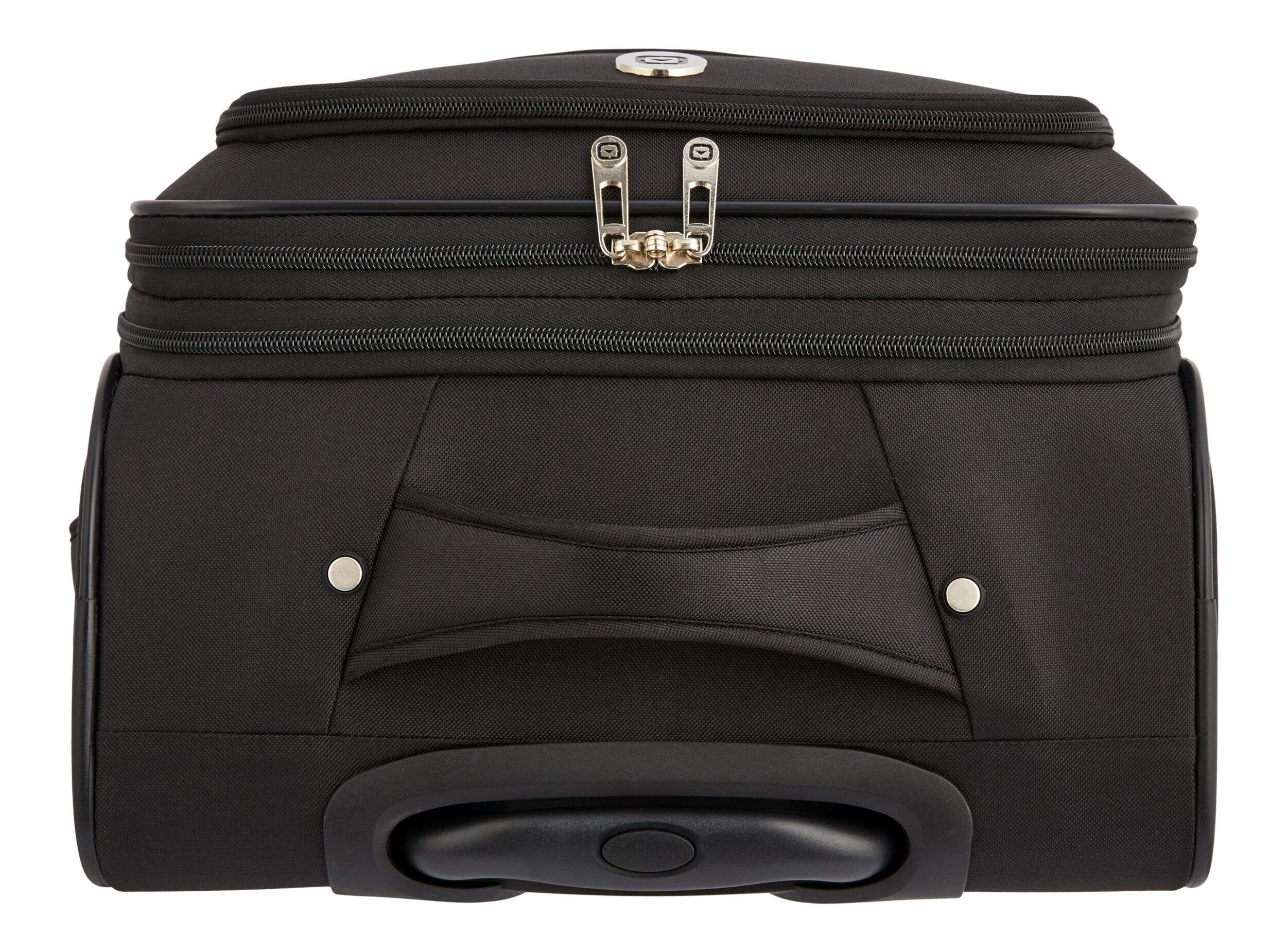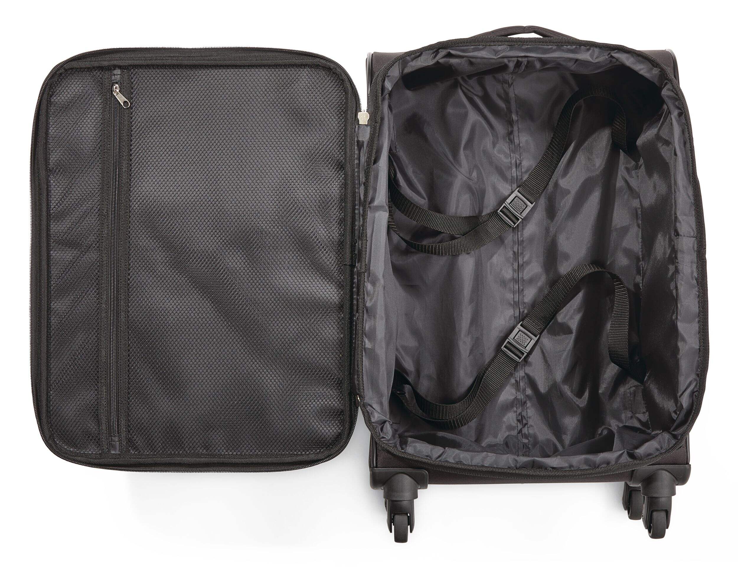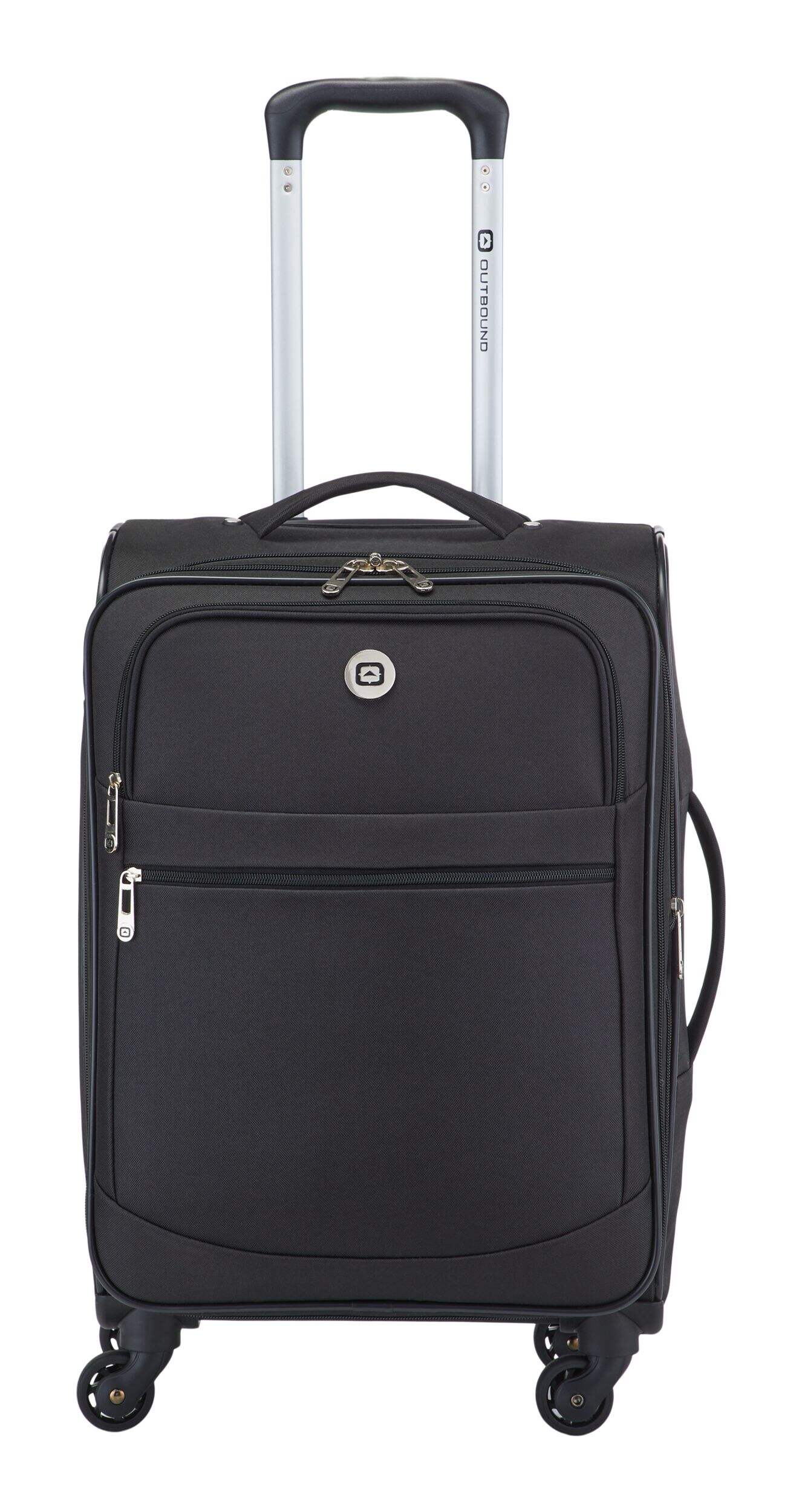 The Outbound Softside Carry-On Spinner Wheel Travel Suitcase is a compact and convenient travel companion. Featuring a lightweight soft-sided construction, this carry-on suitcase also features interlocking zippers for superior durability throughout your journey. The lined interior with bungee straps helps keep your essentials safe and secure. This suitcase is finished with an adjustable handle for easy maneuverability and spinner wheels for smooth, easy rolling through the airport and beyond.