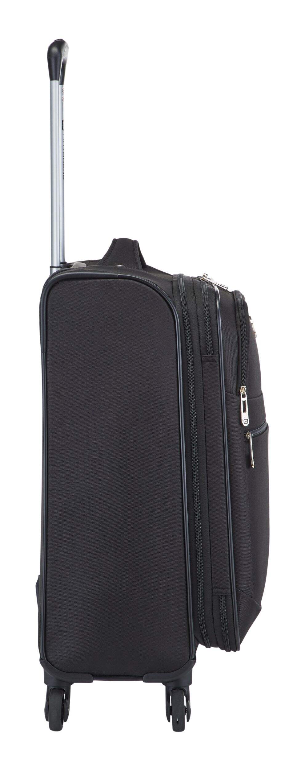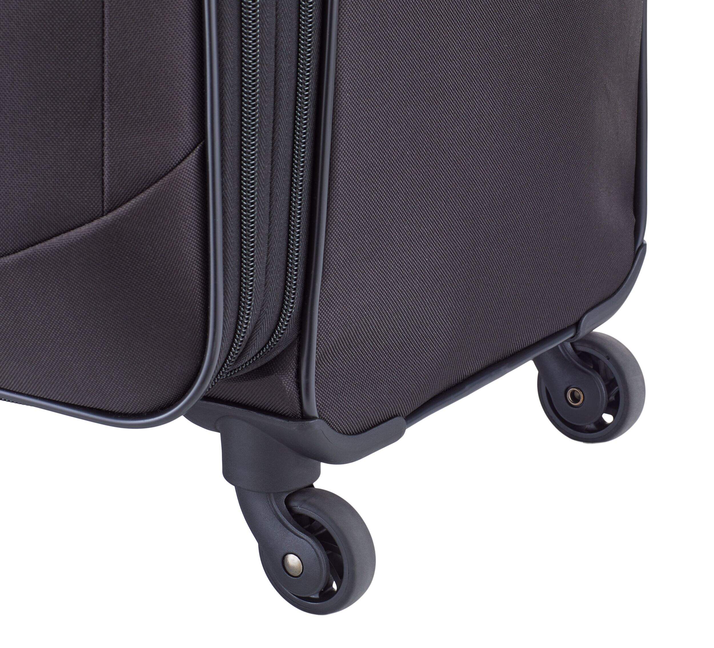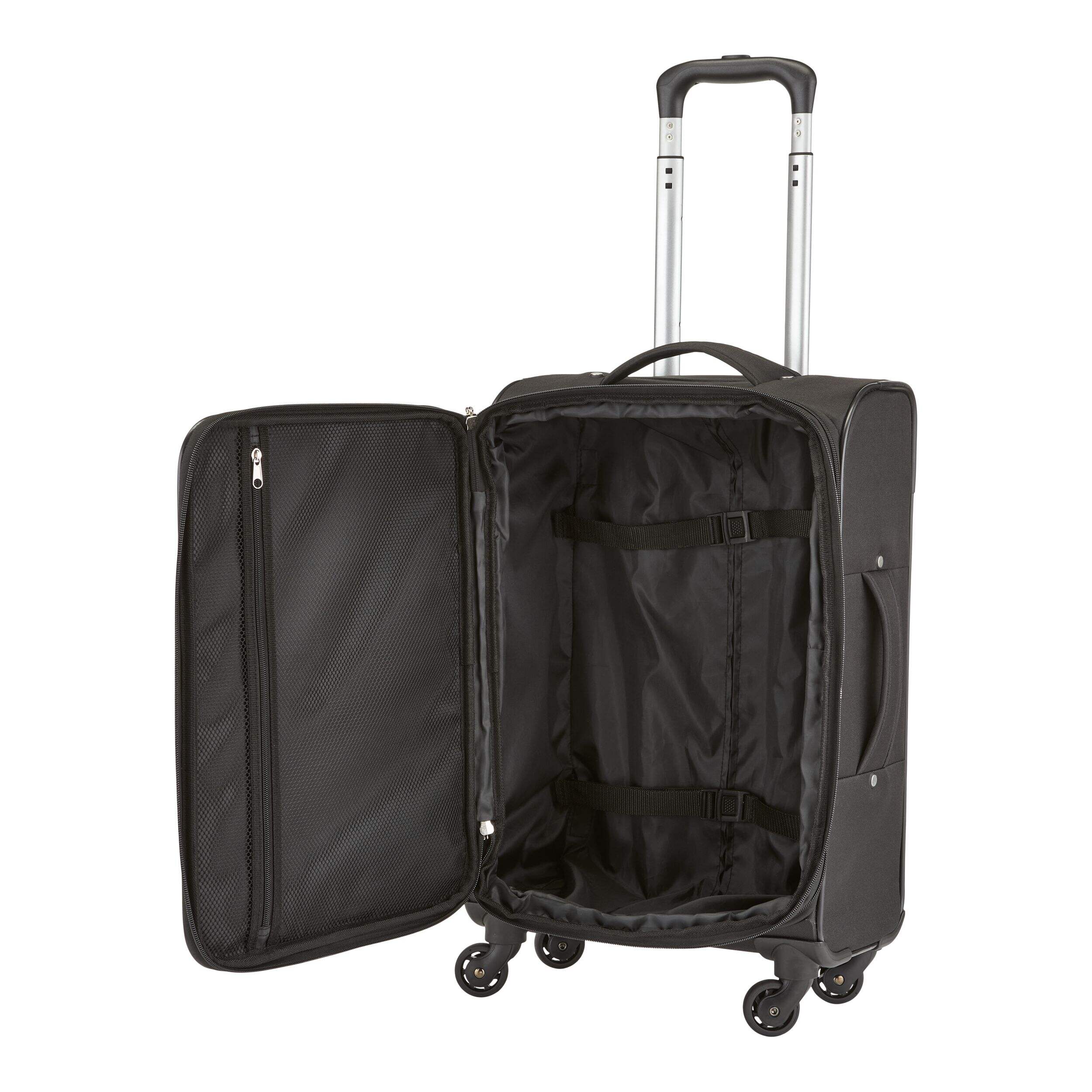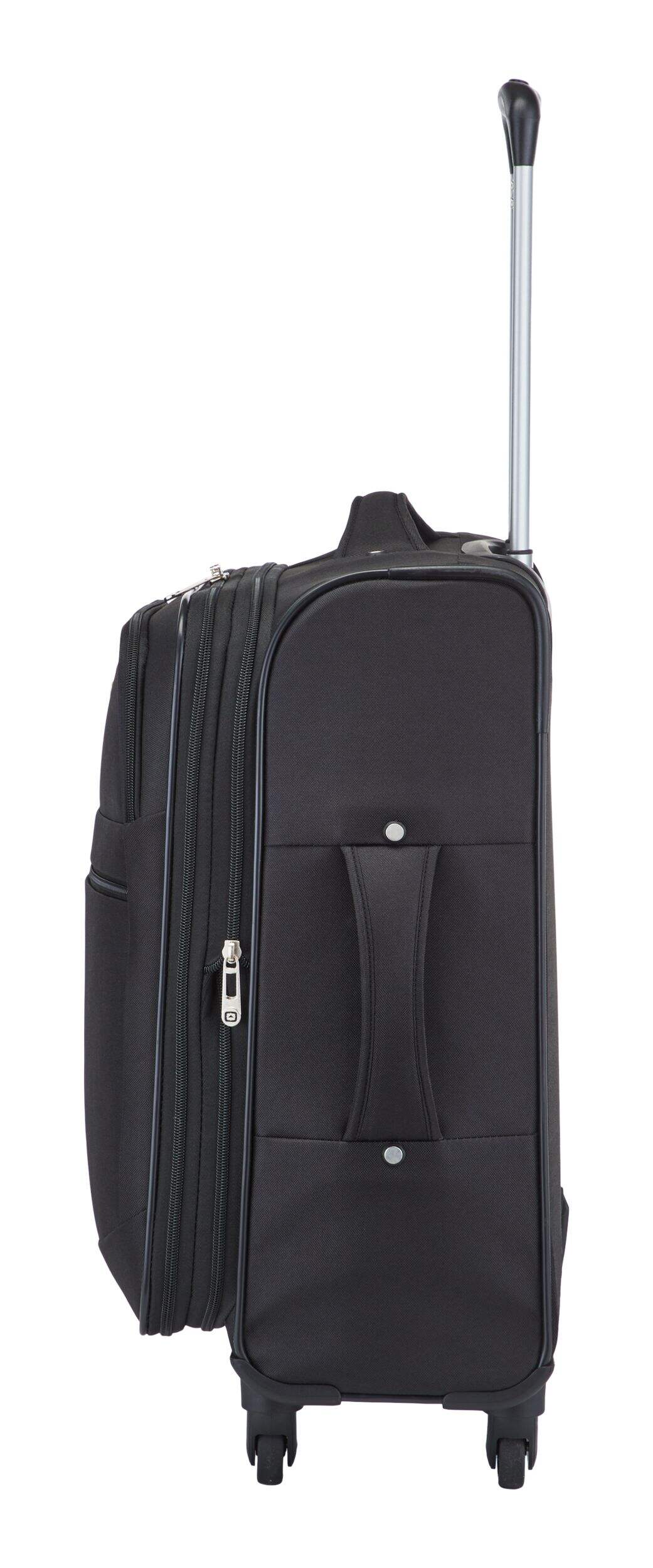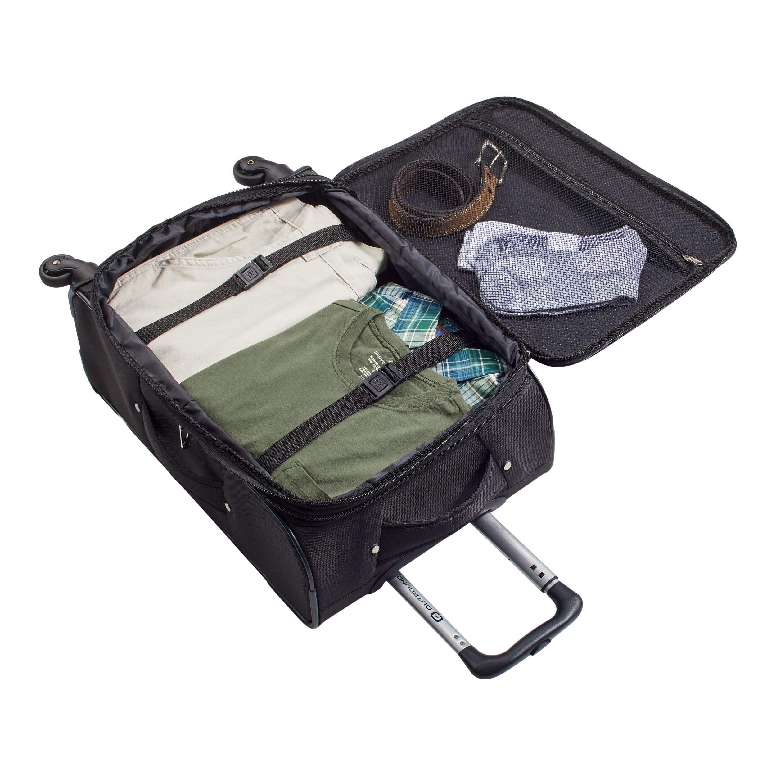 The Outbound Softside Carry-On Spinner Wheel Travel Suitcase is a compact and convenient travel companion. Featuring a lightweight soft-sided construction, this carry-on suitcase also features interlocking zippers for superior durability throughout your journey. The lined interior with bungee straps helps keep your essentials safe and secure. This suitcase is finished with an adjustable handle for easy maneuverability and spinner wheels for smooth, easy rolling through the airport and beyond.