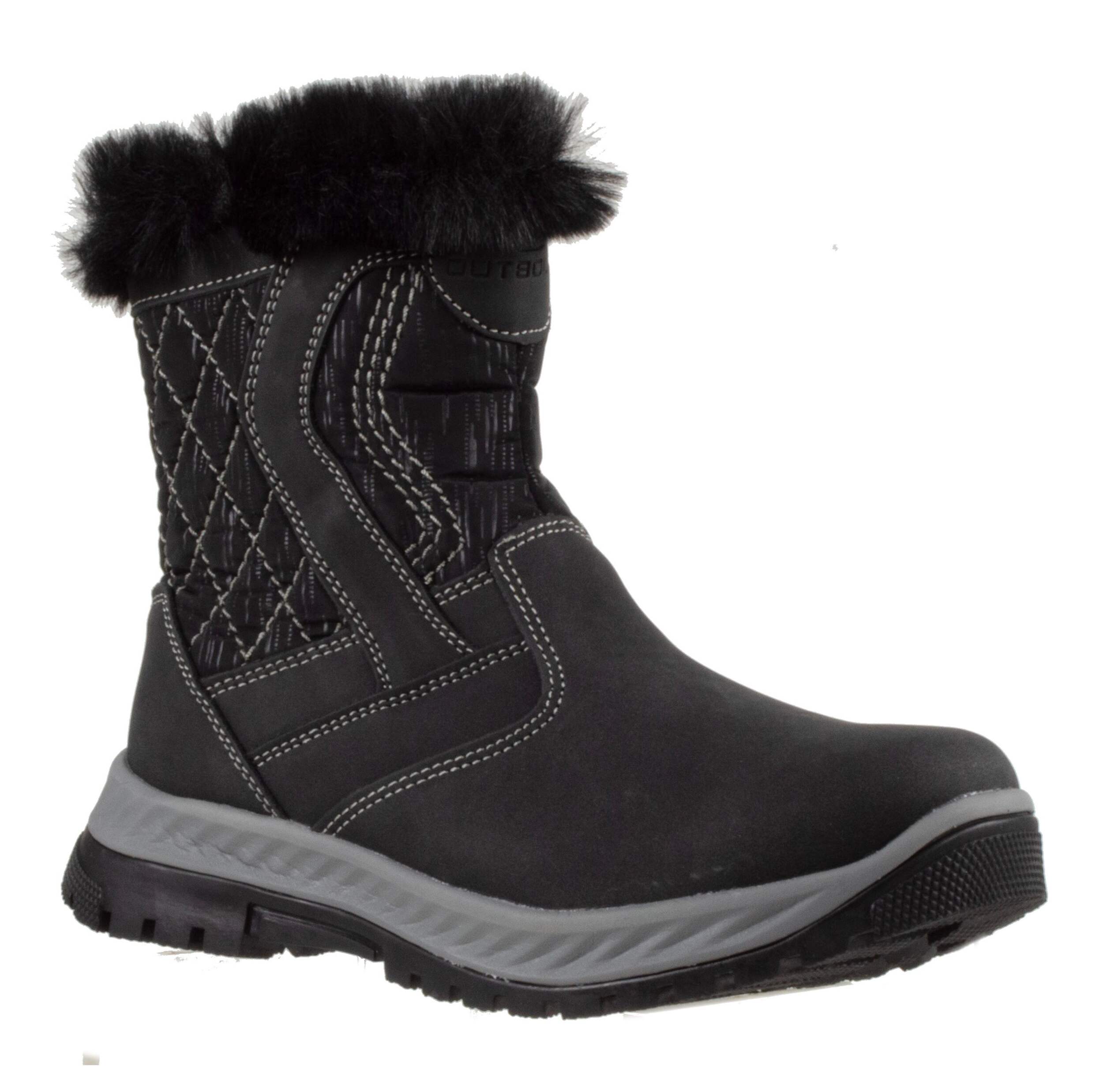 Detailed stitching and a fashionable faux-fur cuff disguise the rugged functionality of these Outbound Laila snow boots. As great as they look, they do an even better job of keeping your feet warm and comfortable during winter's coldest days. They feature the convenience of side-zip design and the luxury of a super-soft, extra-warm faux-fur inner lining. The lightweight PU Nubuck shell has a two-colour rubber outsole for superior traction.