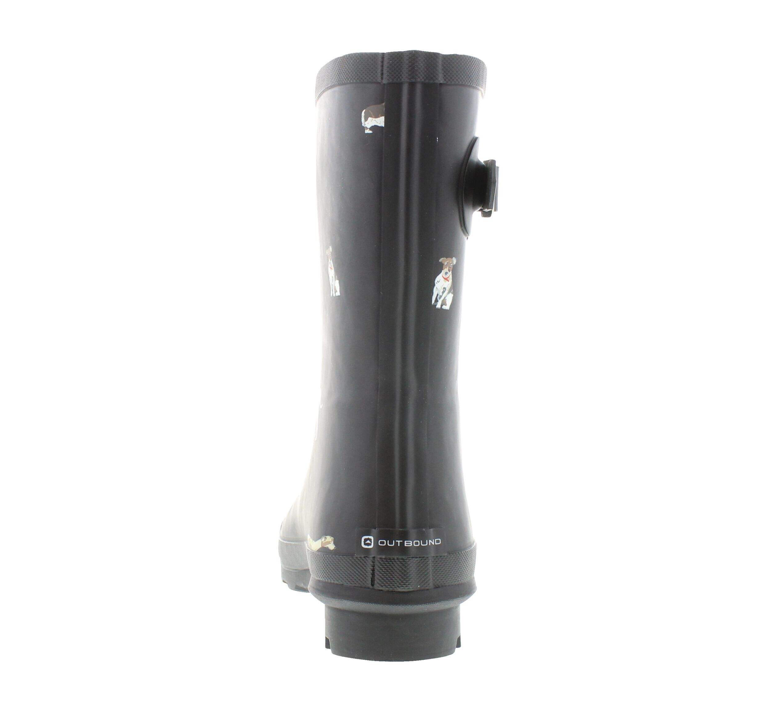 The Outbound Women's Waterproof Dog Print Rubber Boots are 100% waterproof to help keep feet dry and comfortable