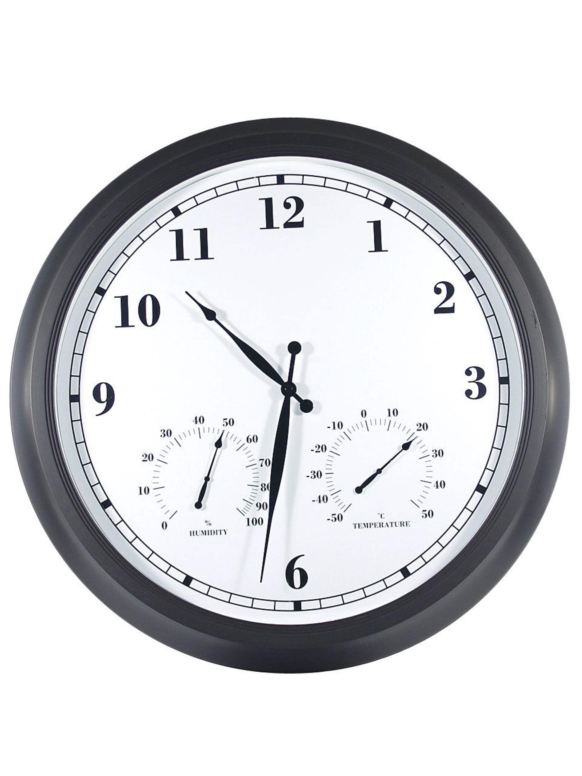 Clock face reads time, humidity and temperature