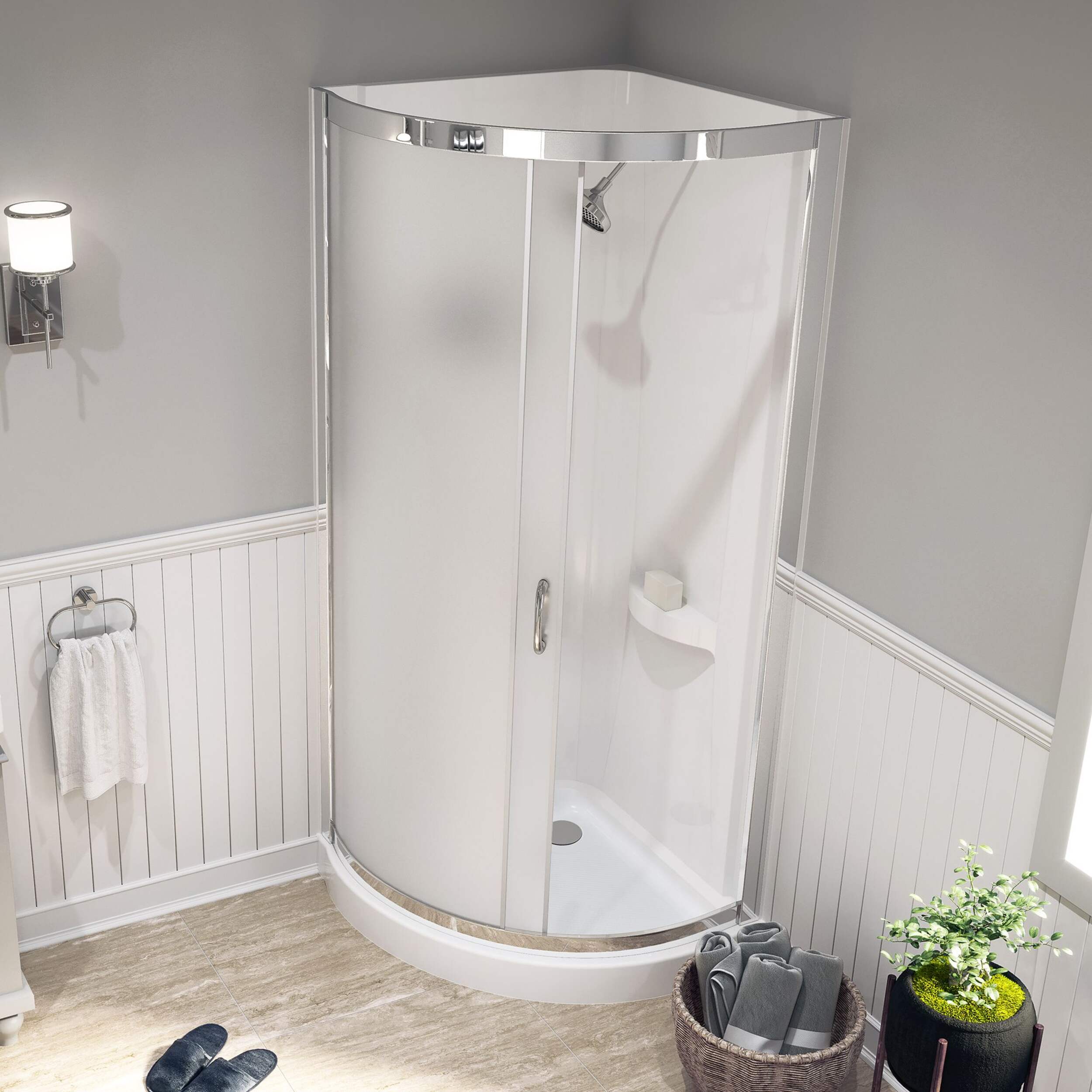 Curved design means that users of the 32-inch kit enjoy a 36 1/8" (91.7 cm) interior space between the corner of the shower and the shower door