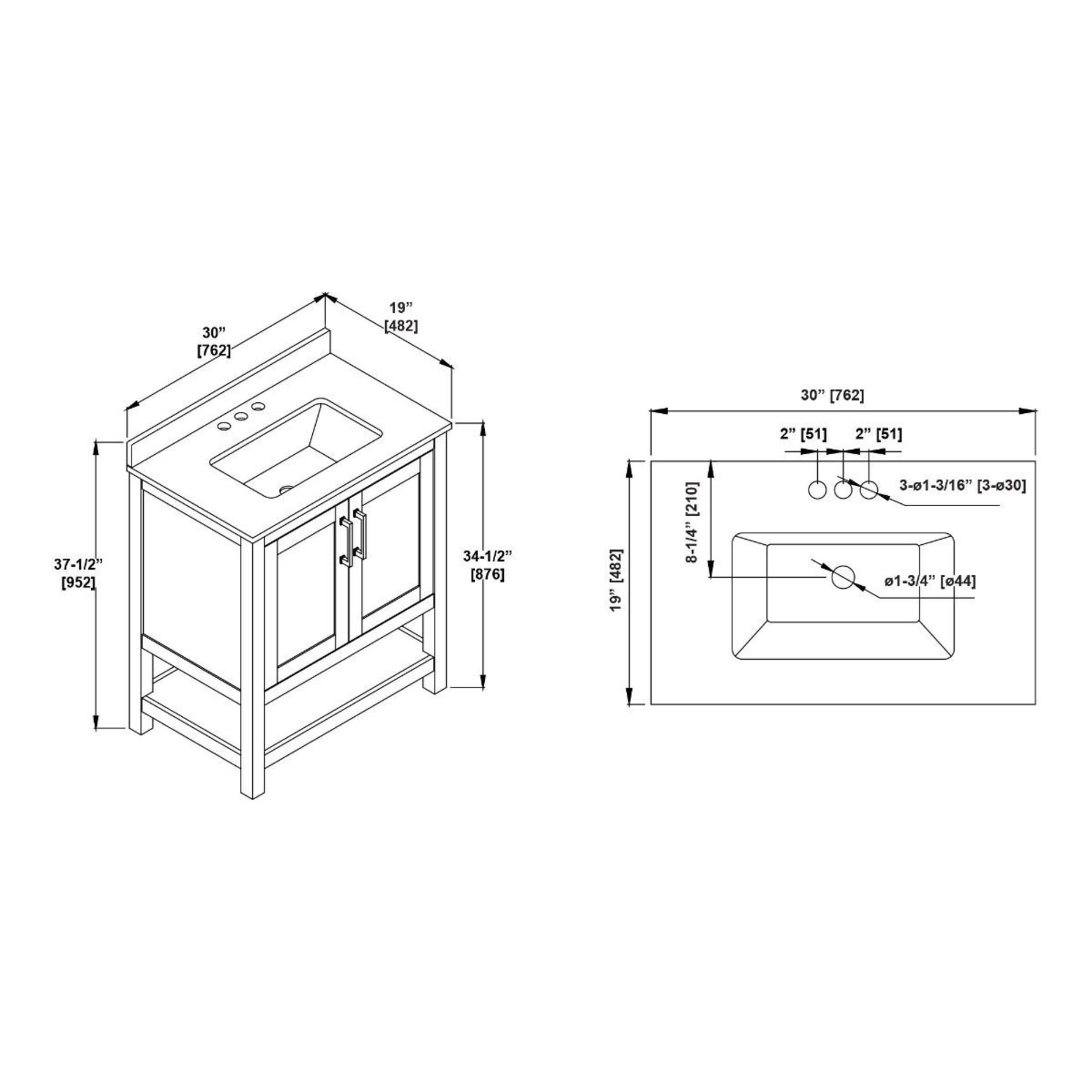 Pre-drilled holes for easy installation of 4" (10 cm) inch faucet (faucet sold separately)