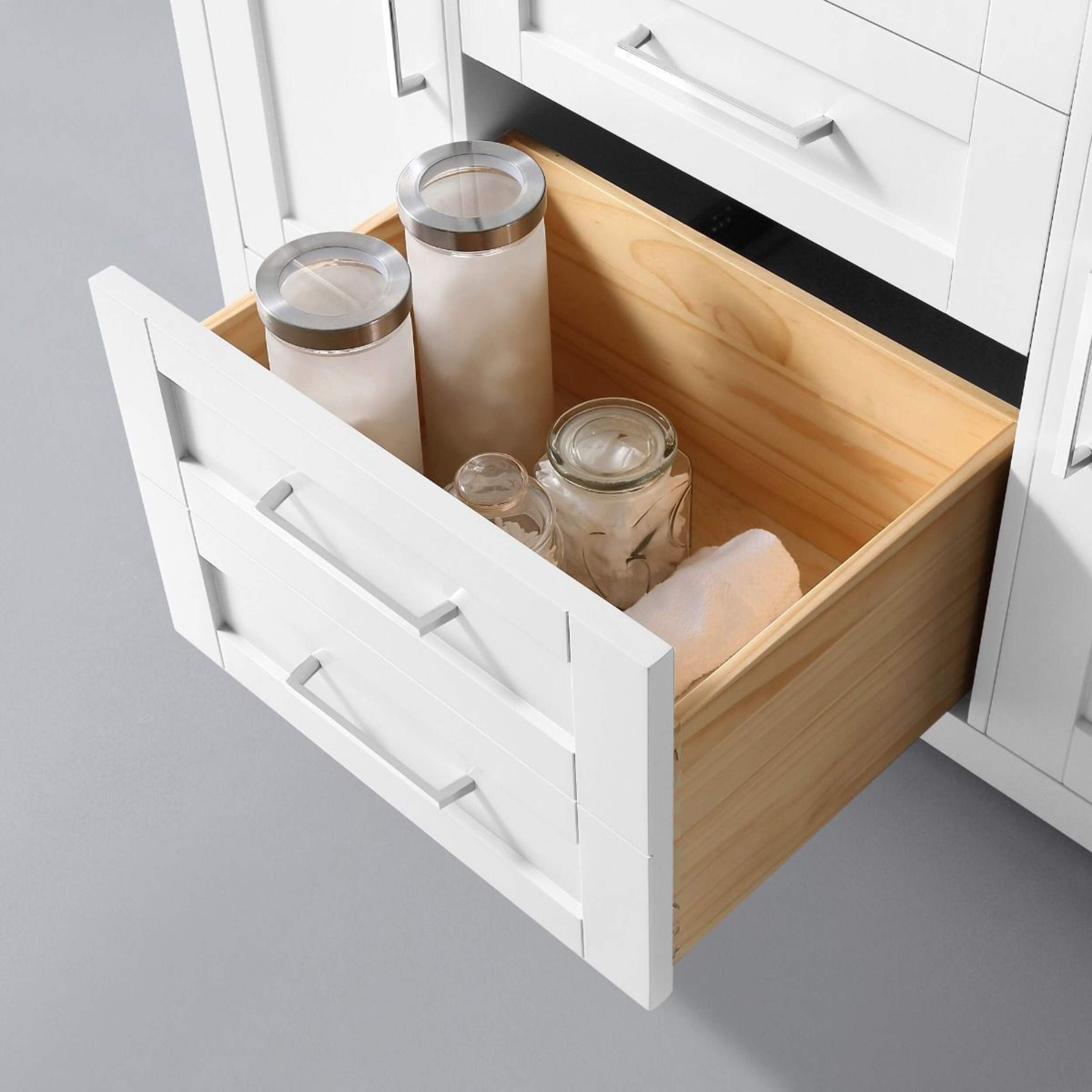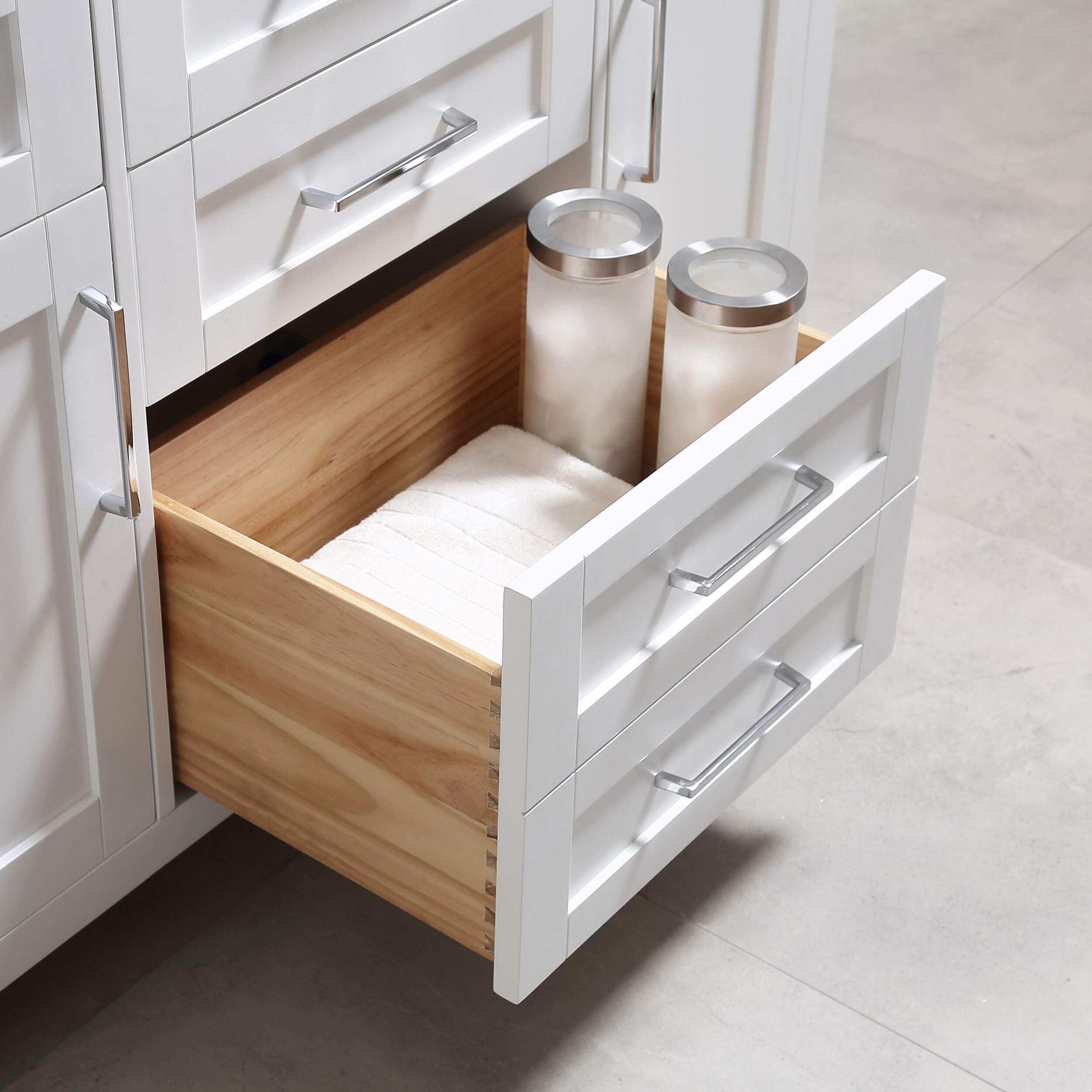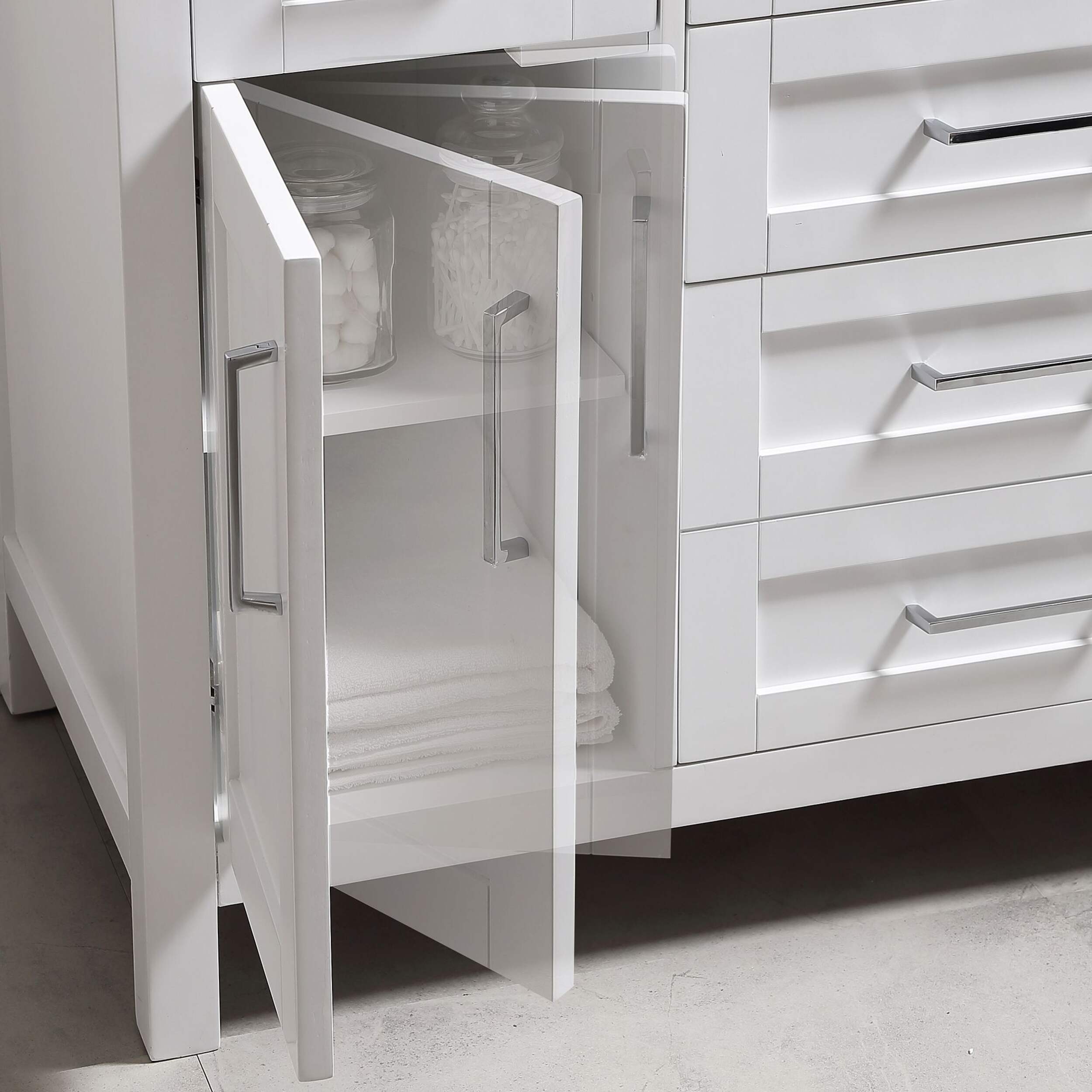 Includes soft close hinges as well as the clean chrome pulls, ensuring any size a beautiful addition to any bathroom in your home