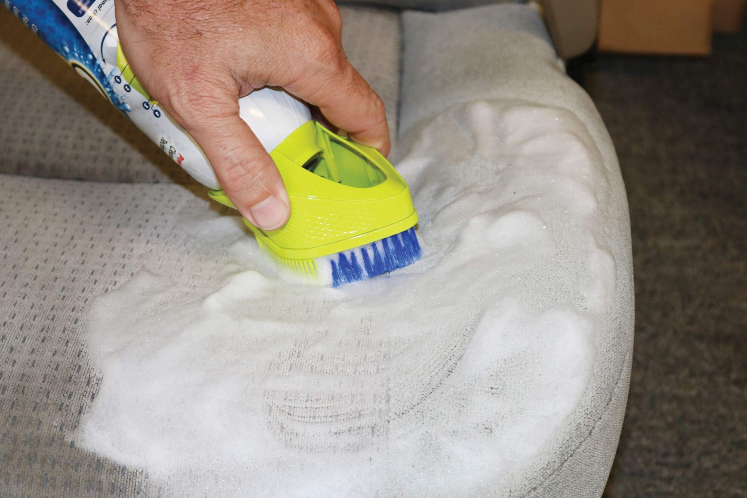 Specialized brush cap allows broad sweeping and focused spot scrubbing